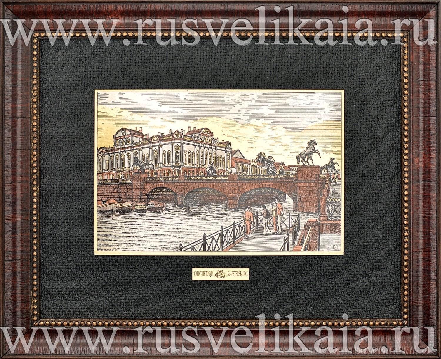 0026971/25*32см Офорт цветной "СПБ. Вид на Аничков мост" ....Извините, товар отсутствует