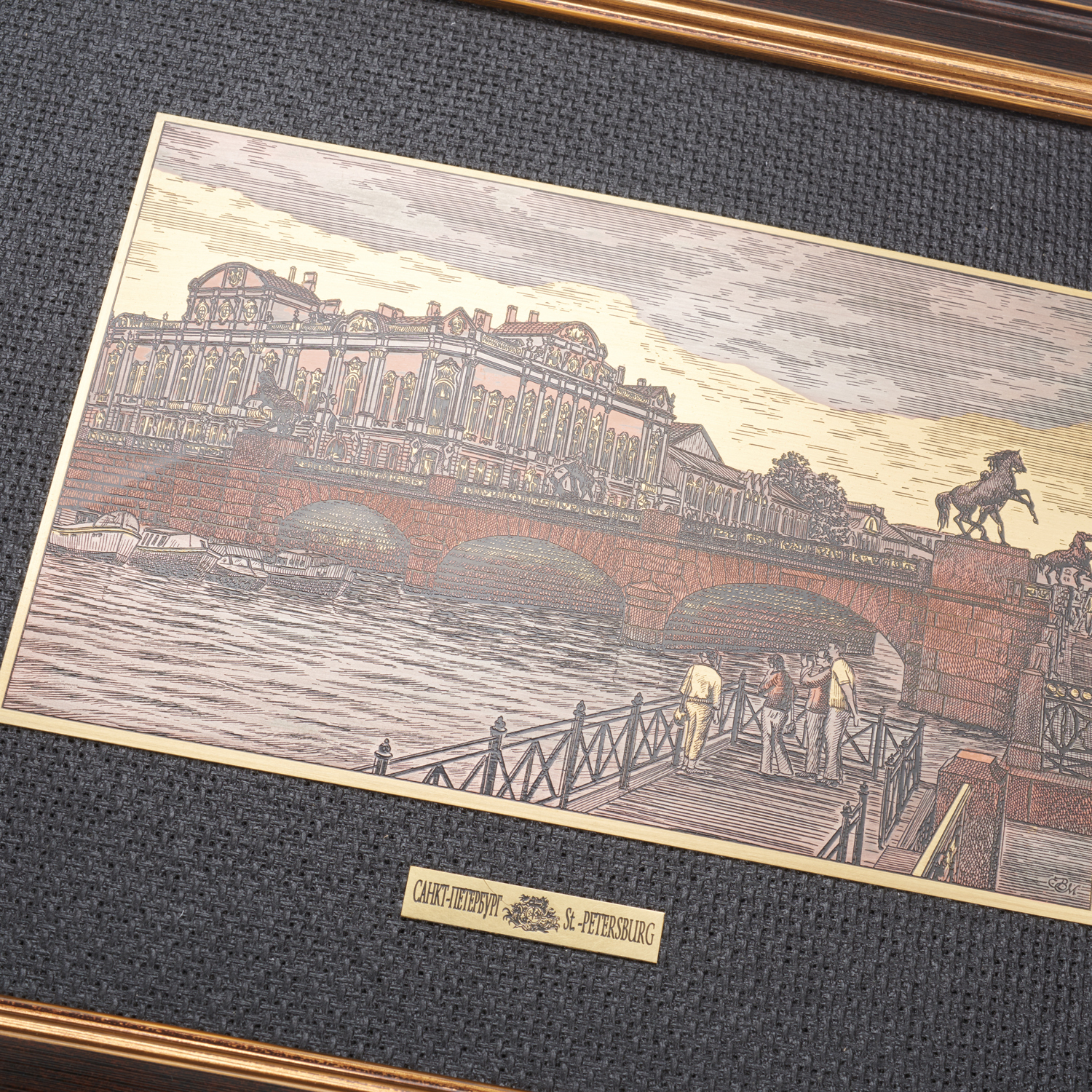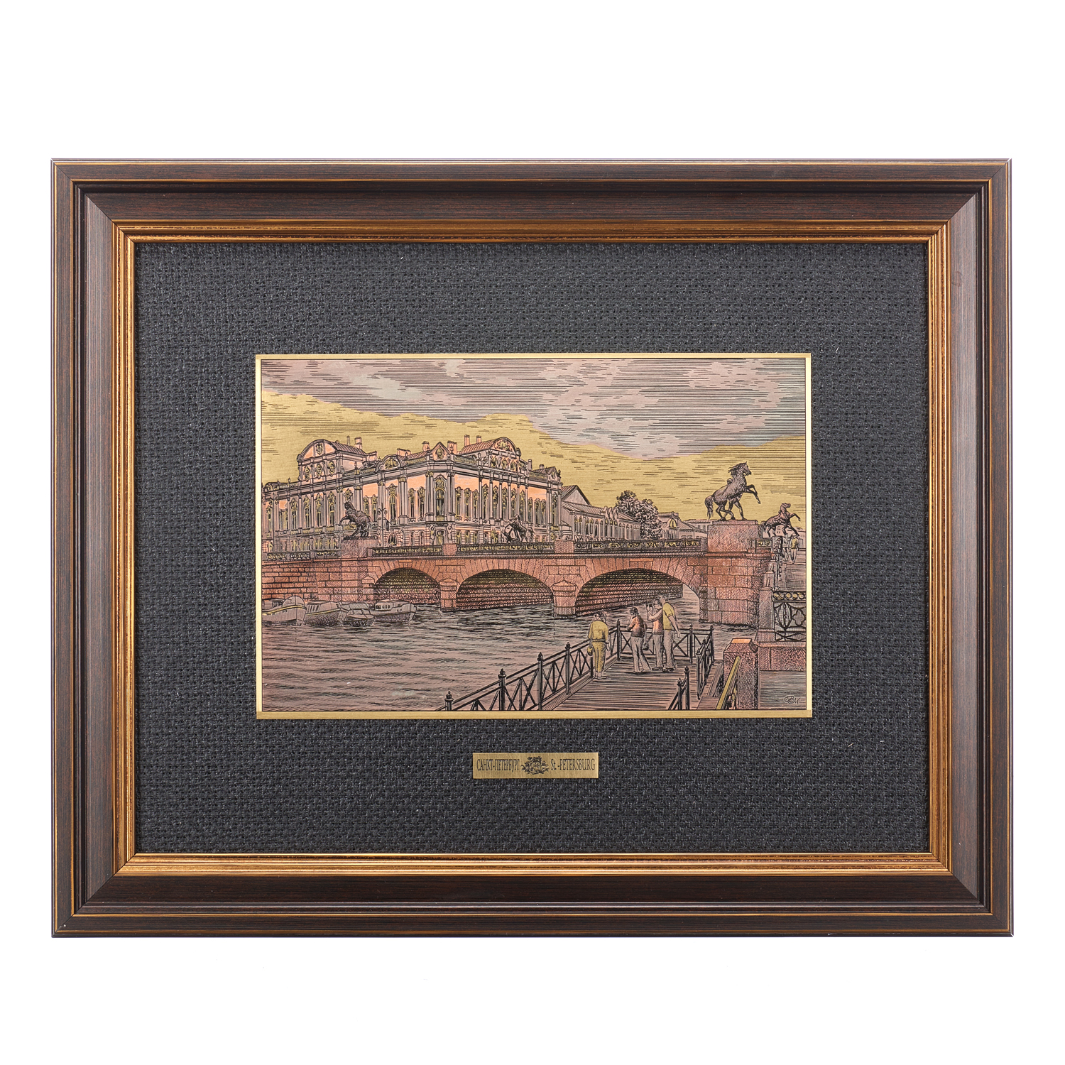 0056481/25*32см Офорт цветной "СПБ.Вид на Аничков мост" .