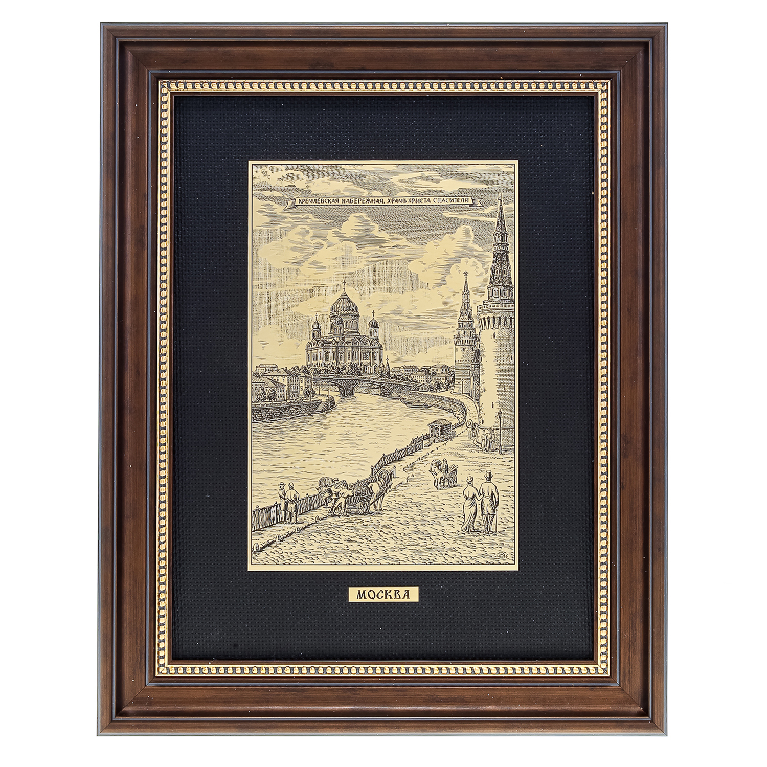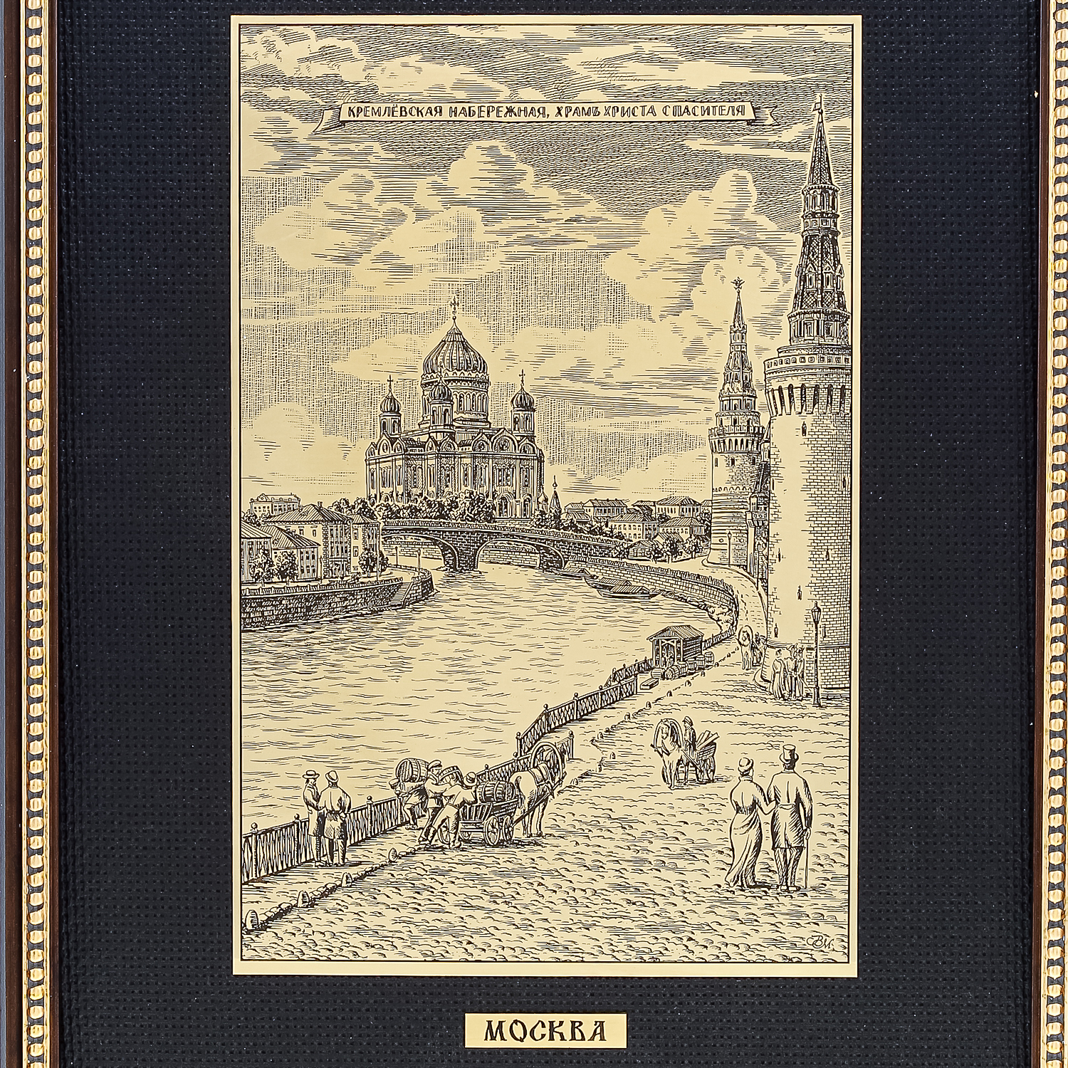 0070643/30*40см Офорт черно-белый "Старая Москва. Кремлевская набережная"