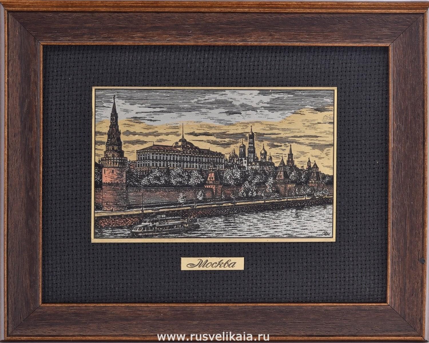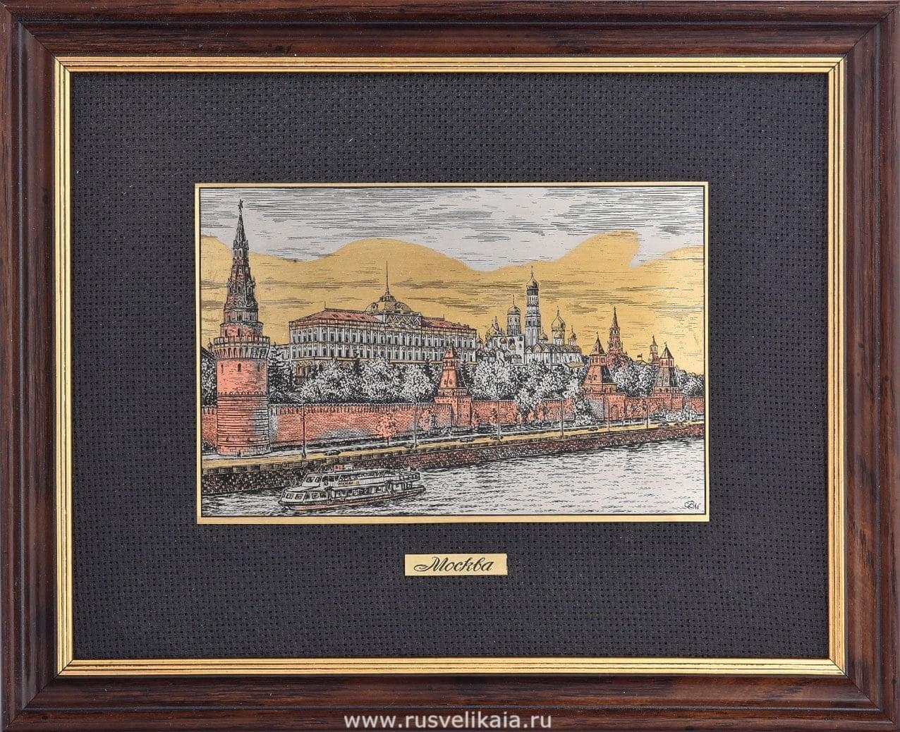 0024086/25*32см Офорт цветной "Вид на набережную Кремля" .