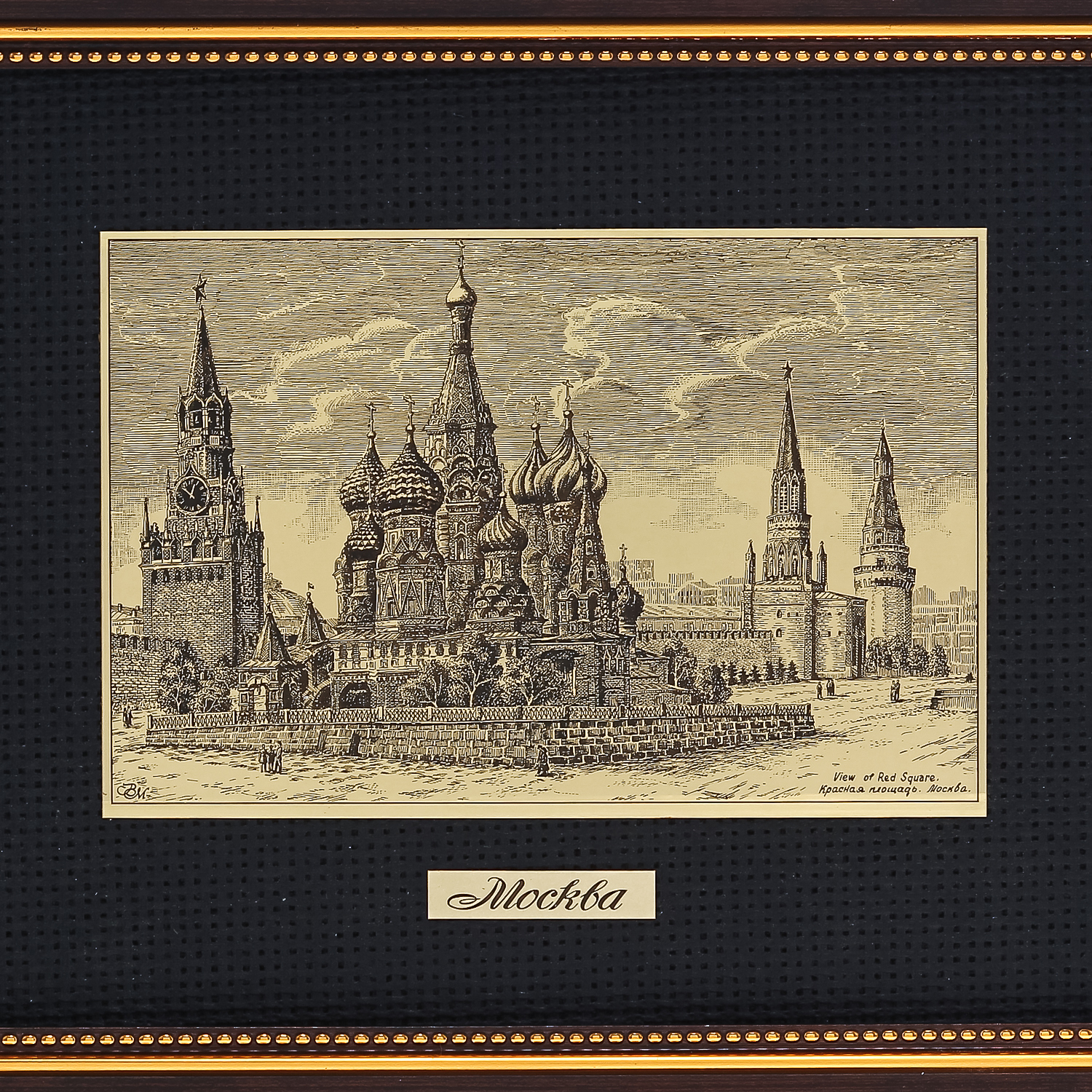 0070652 /17*22 Офорт черно-белый "Старая Москва. Храм Василия Блаженного"