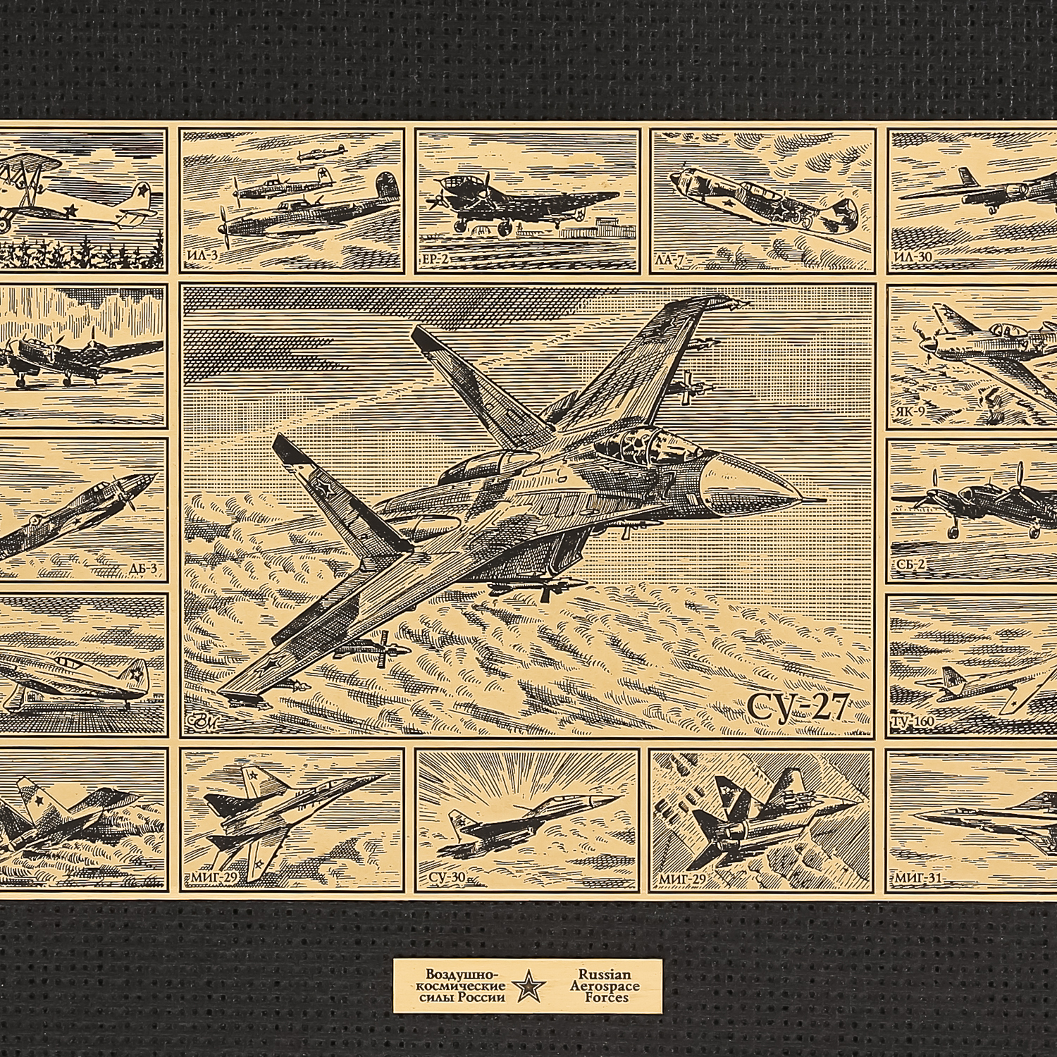 119911/25*32см Офорт черно-белый "Военная Авиация. Коллаж Су 27" ..