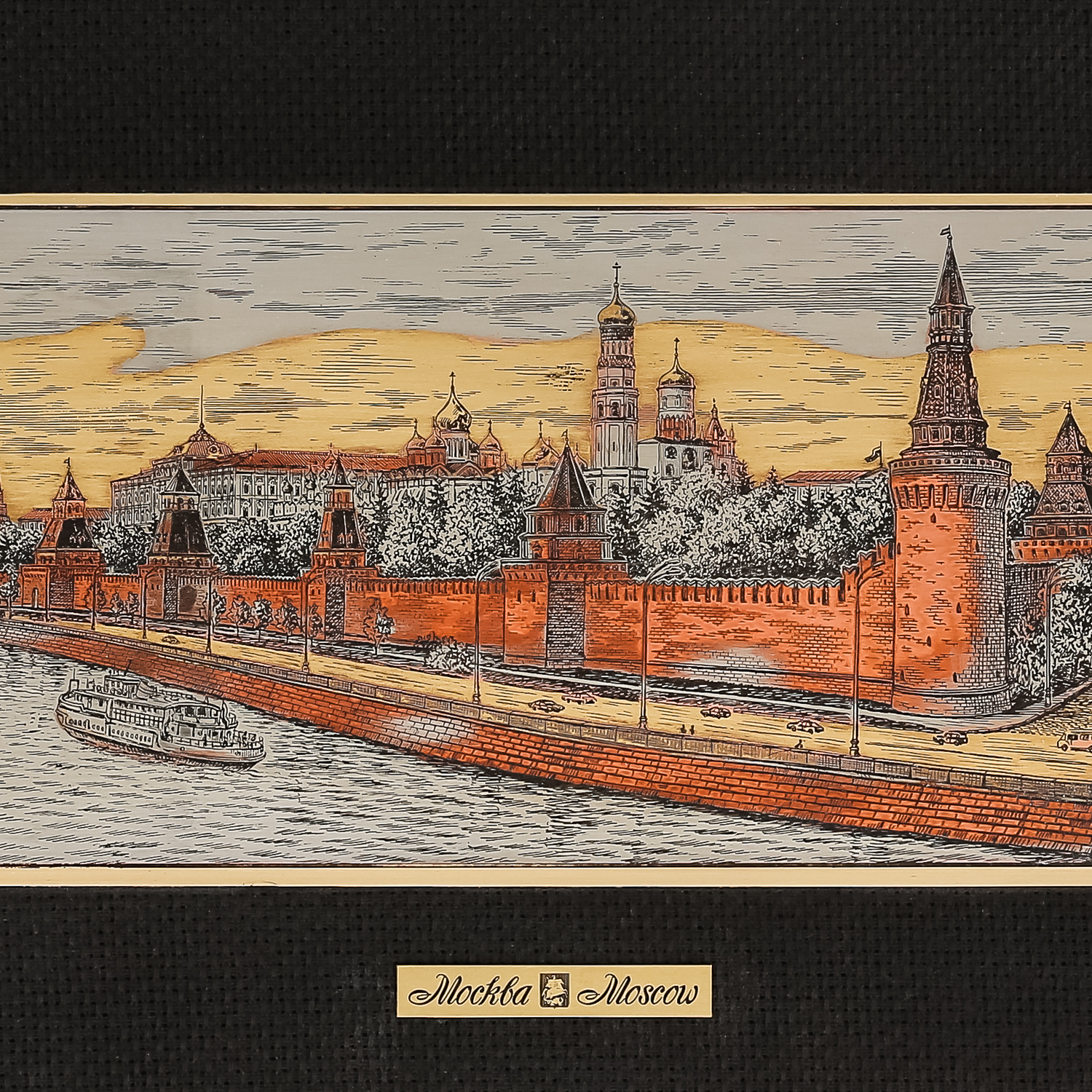 030031/27*55см Офорт цветной "Москва. Панорама Кремля" ..