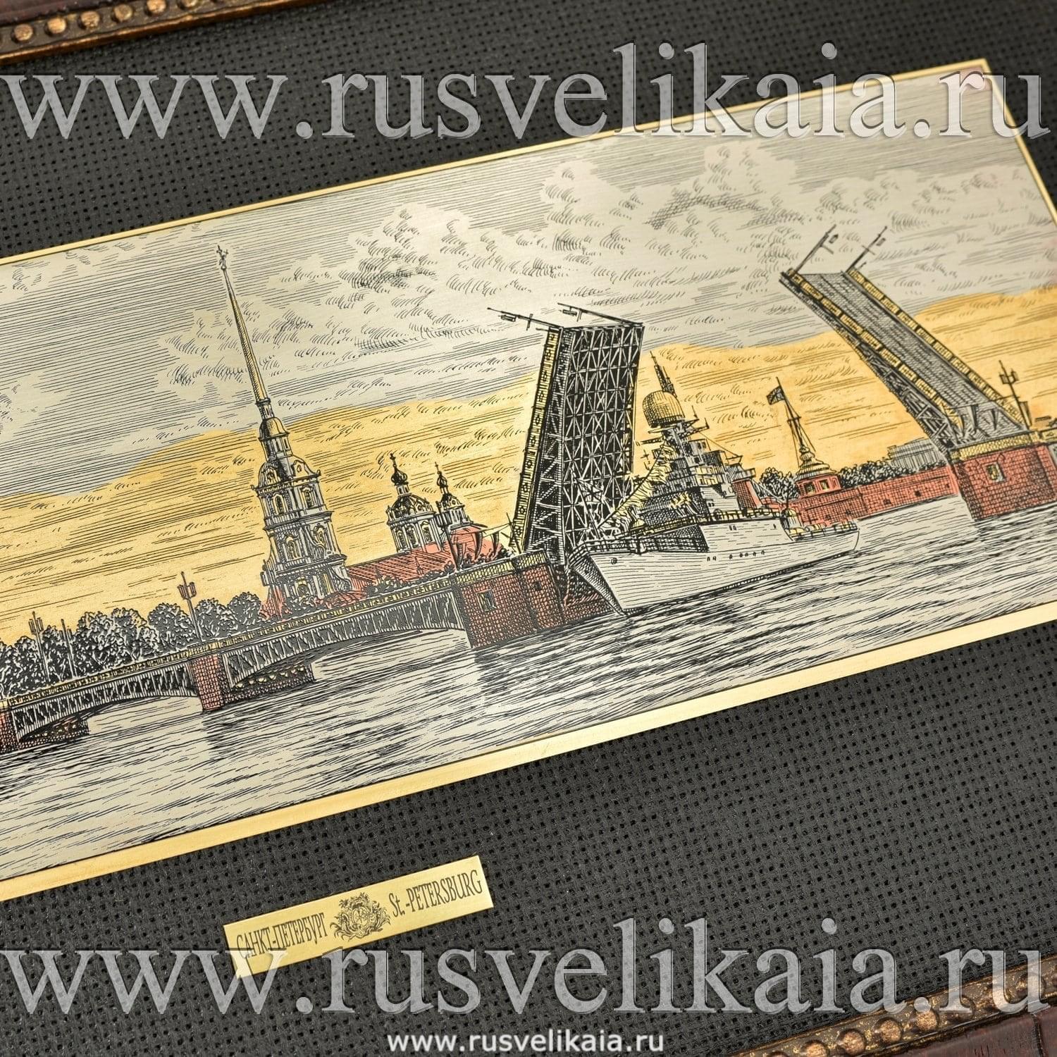 0028004/27,5*55см Офорт цветной "Панорама СПБ: вид с Невы (разводной мост)" ....Извините, товар отсутствует