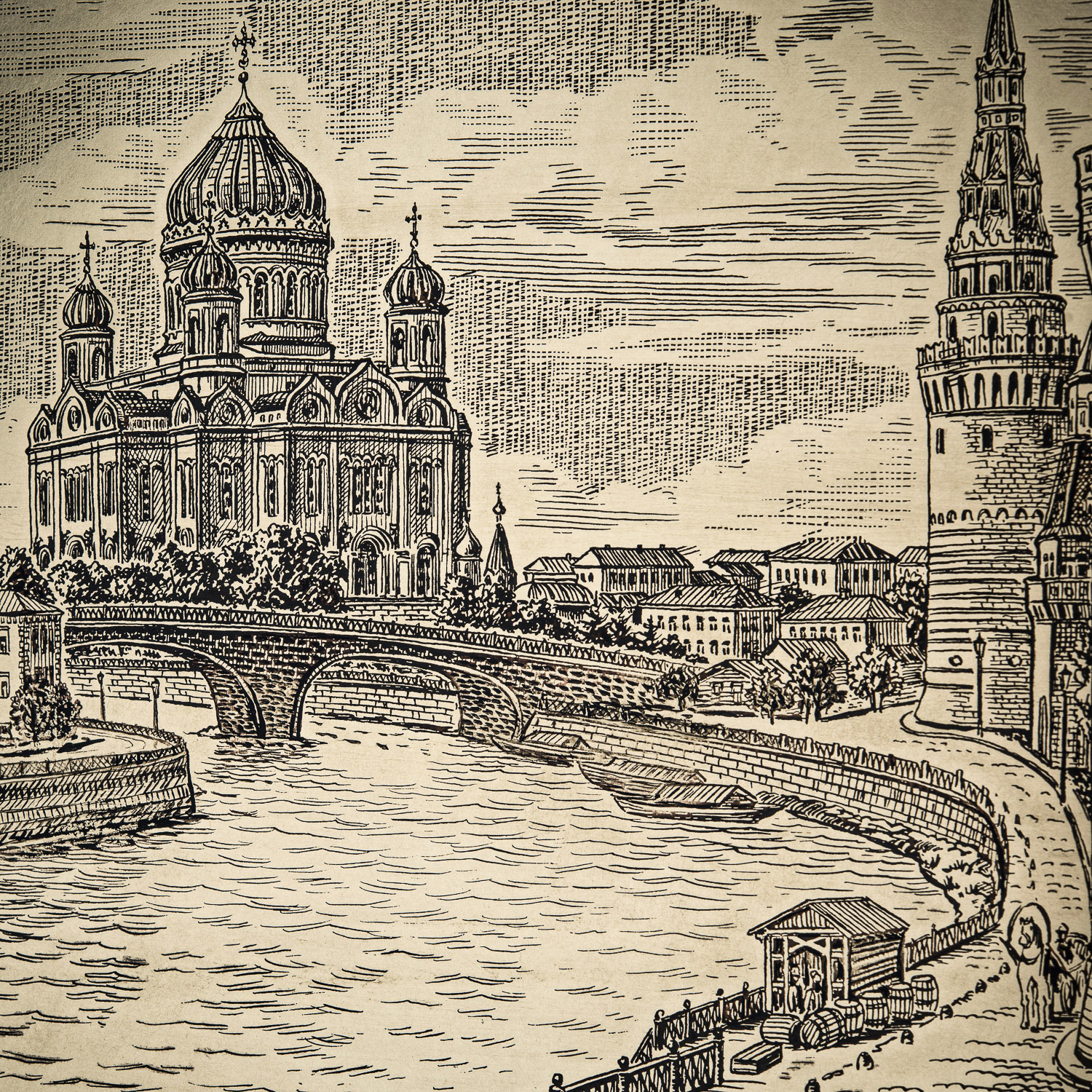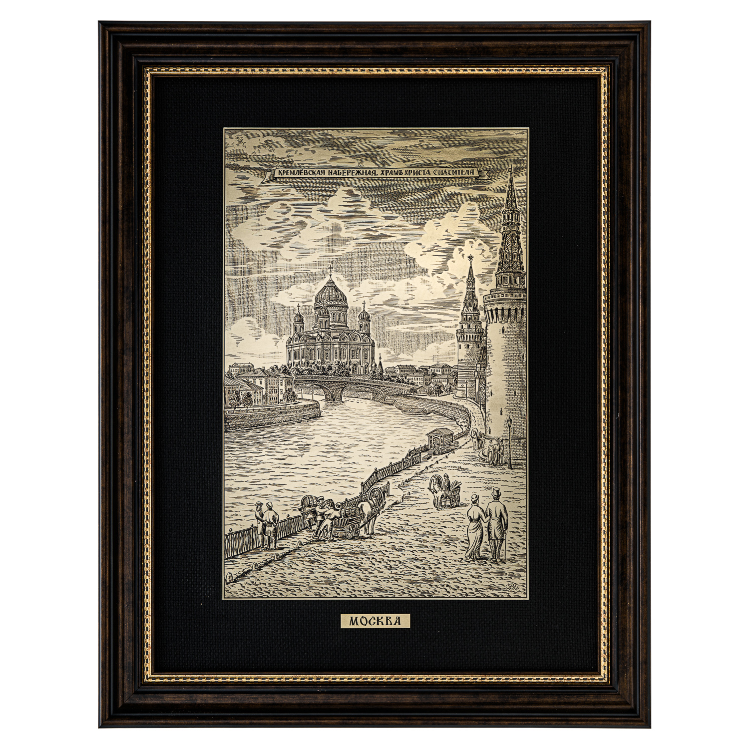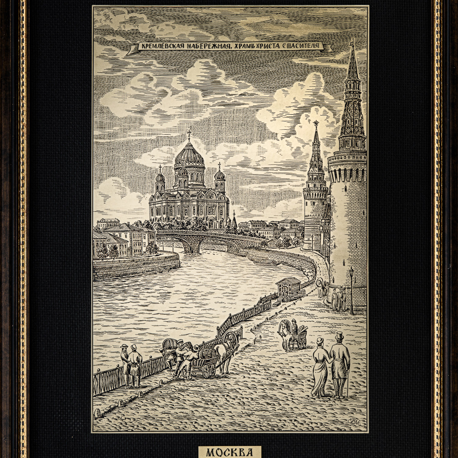 Русские подарки и сувениры → Интерьерные изделия → Офорты → Офорт черно-белый "Храм Христа Спасителя. Кремлевская набережная" 42 х 55 см