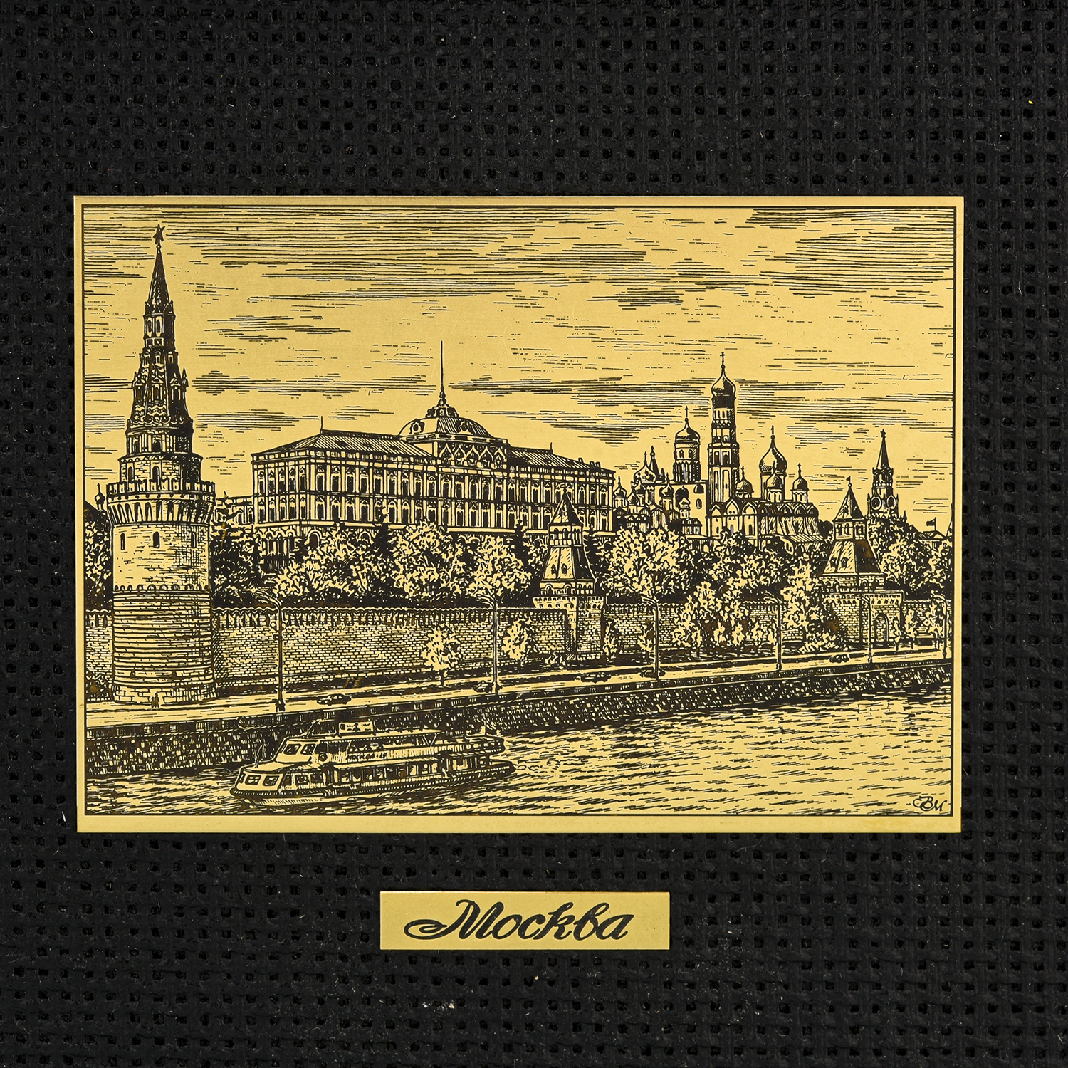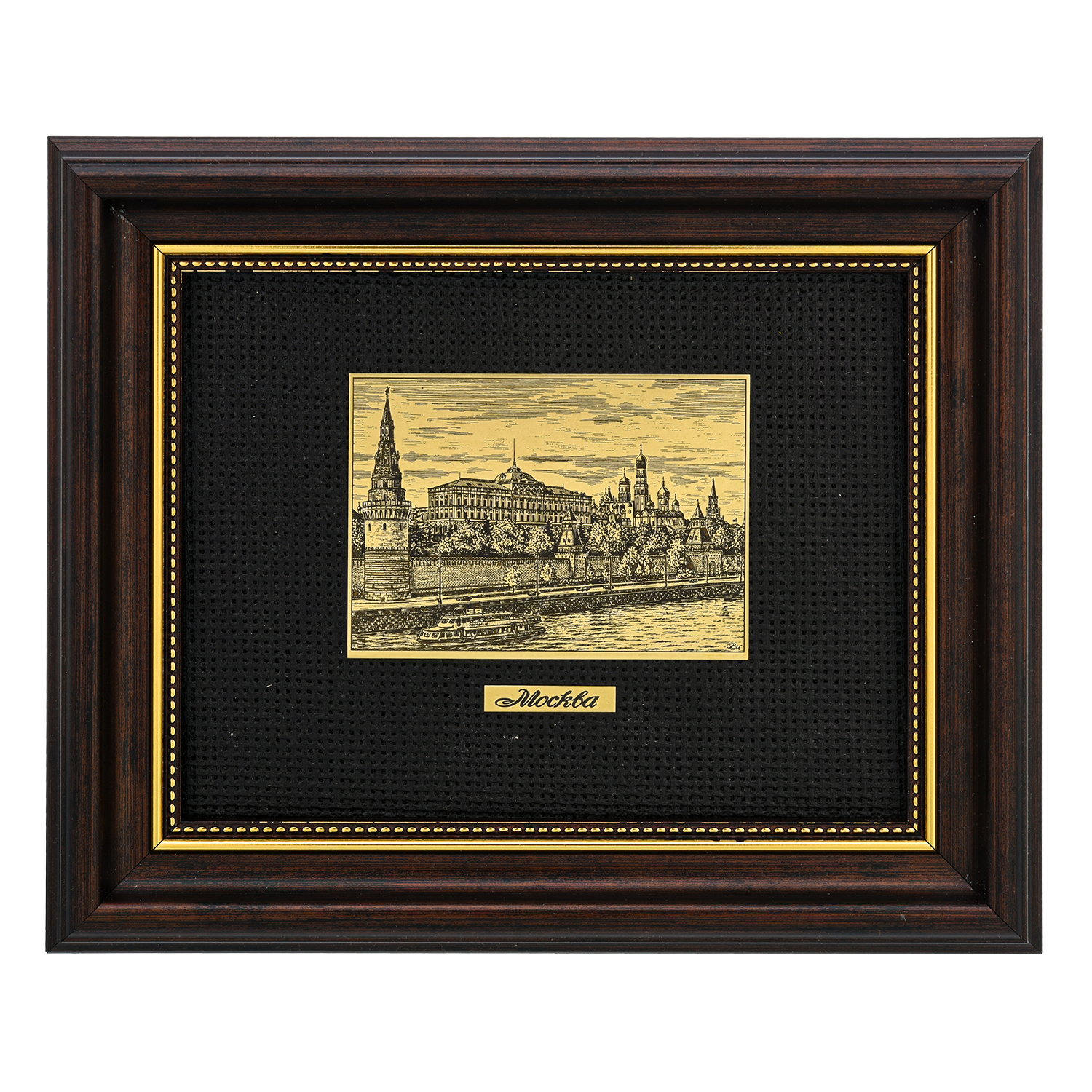 Офорт черно-белый "Кремлевская набережная".Материалы: латунь, паспарту, деревянный багет.