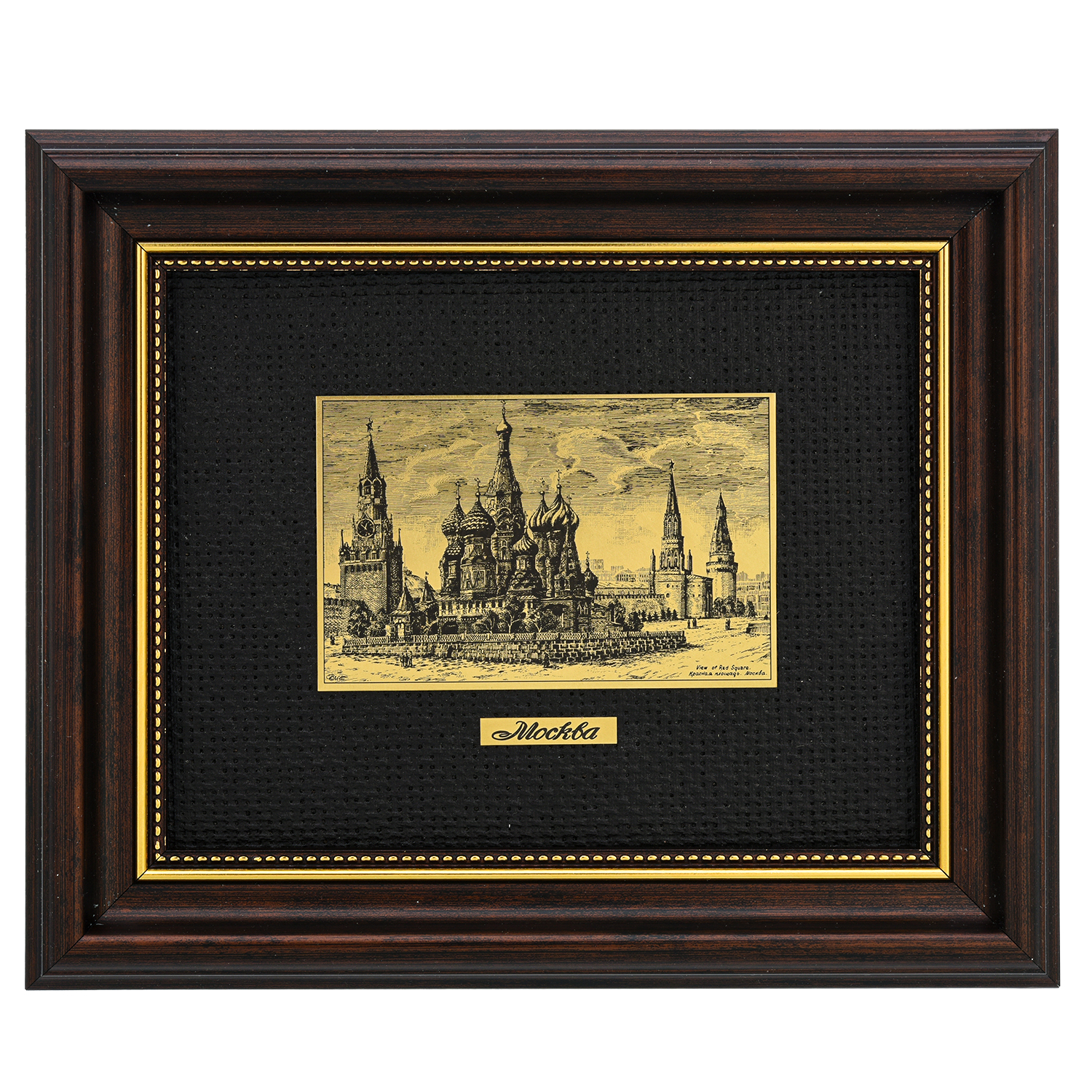 Офорт черно-белый "Москва. Красная площадь".Материалы: латунь, паспарту, деревянный багет.