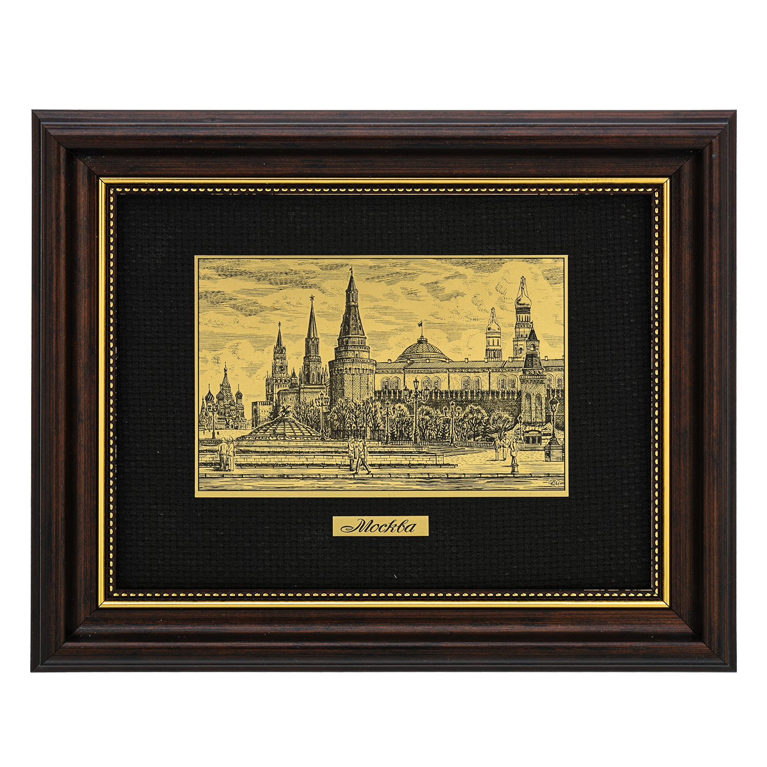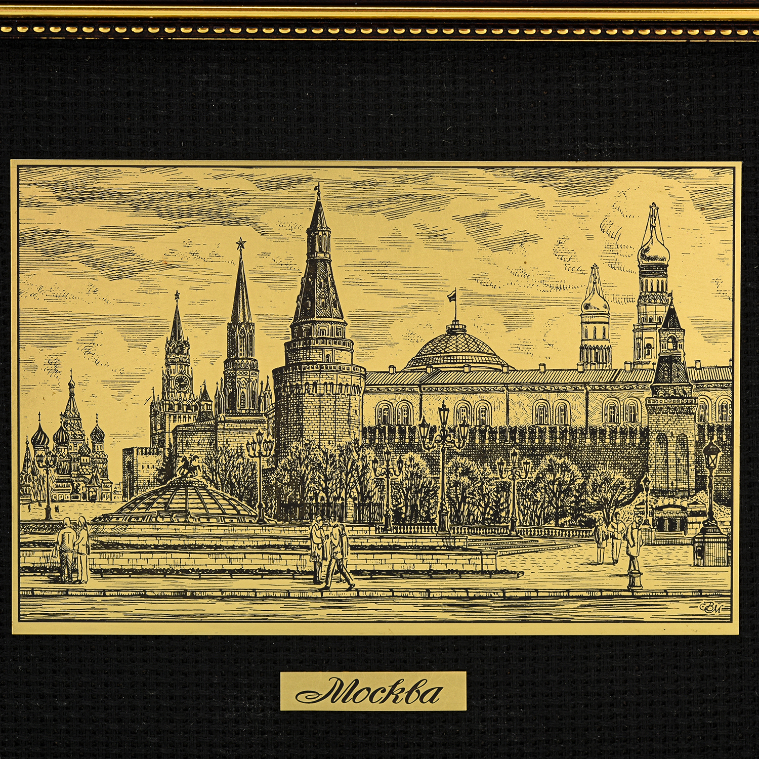 Офорт черно-белый "Манежная площадь. Кремль".Материалы: латунь, паспарту, деревянный багет.