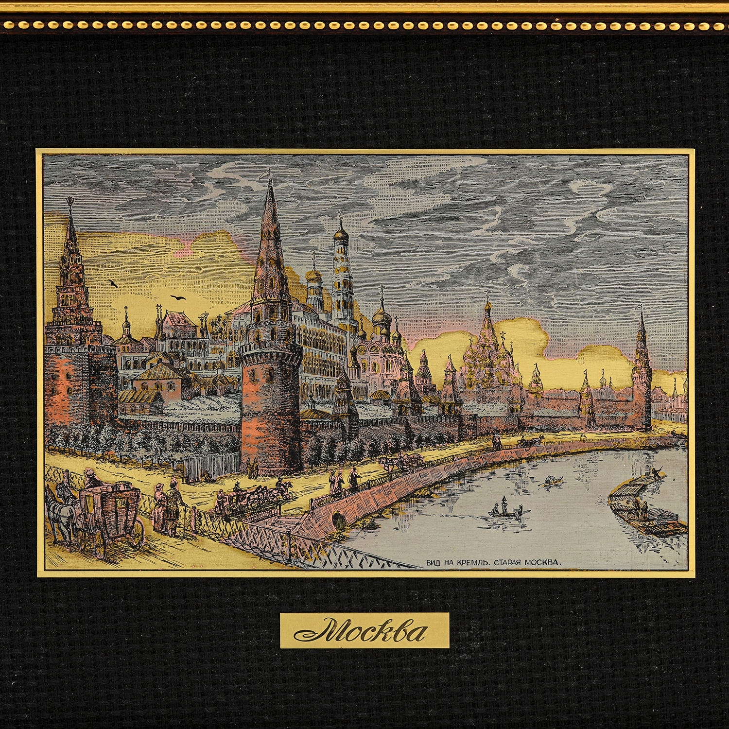 Русские подарки и сувениры → Интерьерные изделия → Офорты → Офорт цветной "Вид на Кремль. Старая Москва" 17х22 см