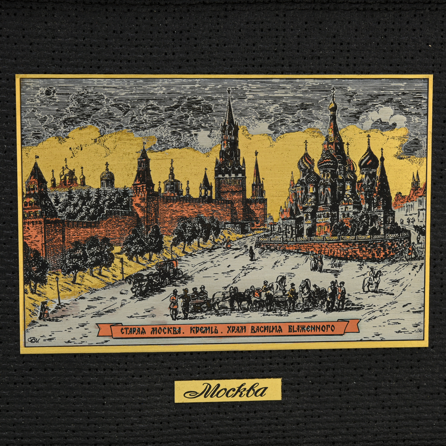 Офорт цветной "Старая Москва. Храм Василия Блаженного".Материалы: латунь, никель, медь, паспарту, багетная рама.