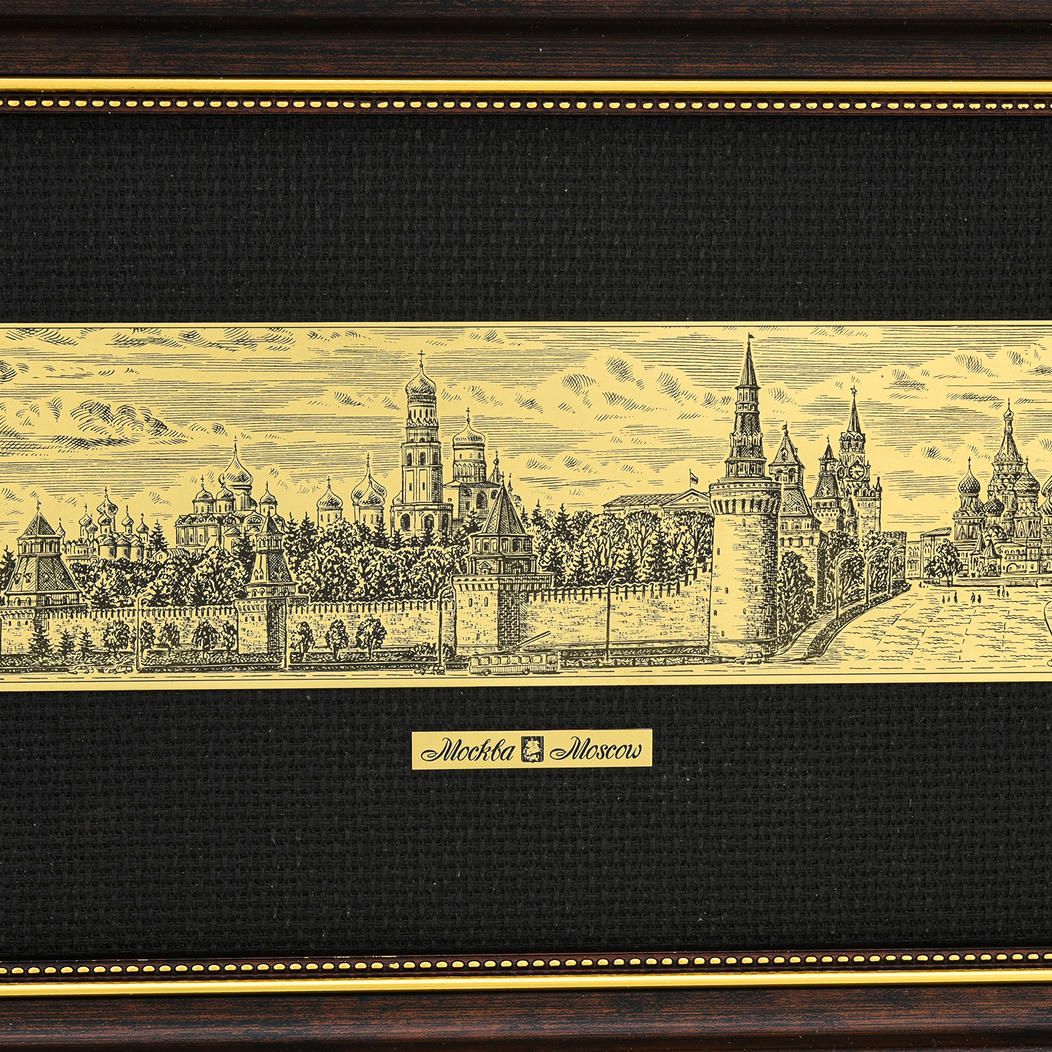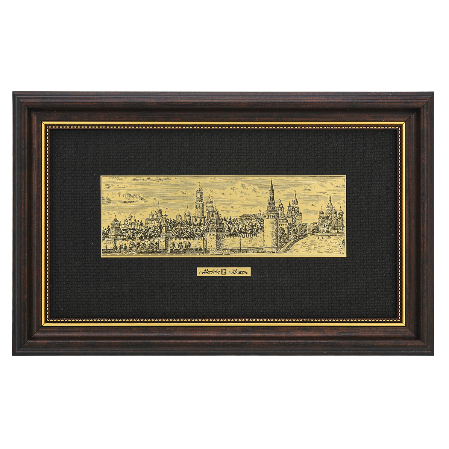 Офорт черно-белый "Васильевский спуск. Кремль".Материалы: латунь, паспарту, деревянный багет.