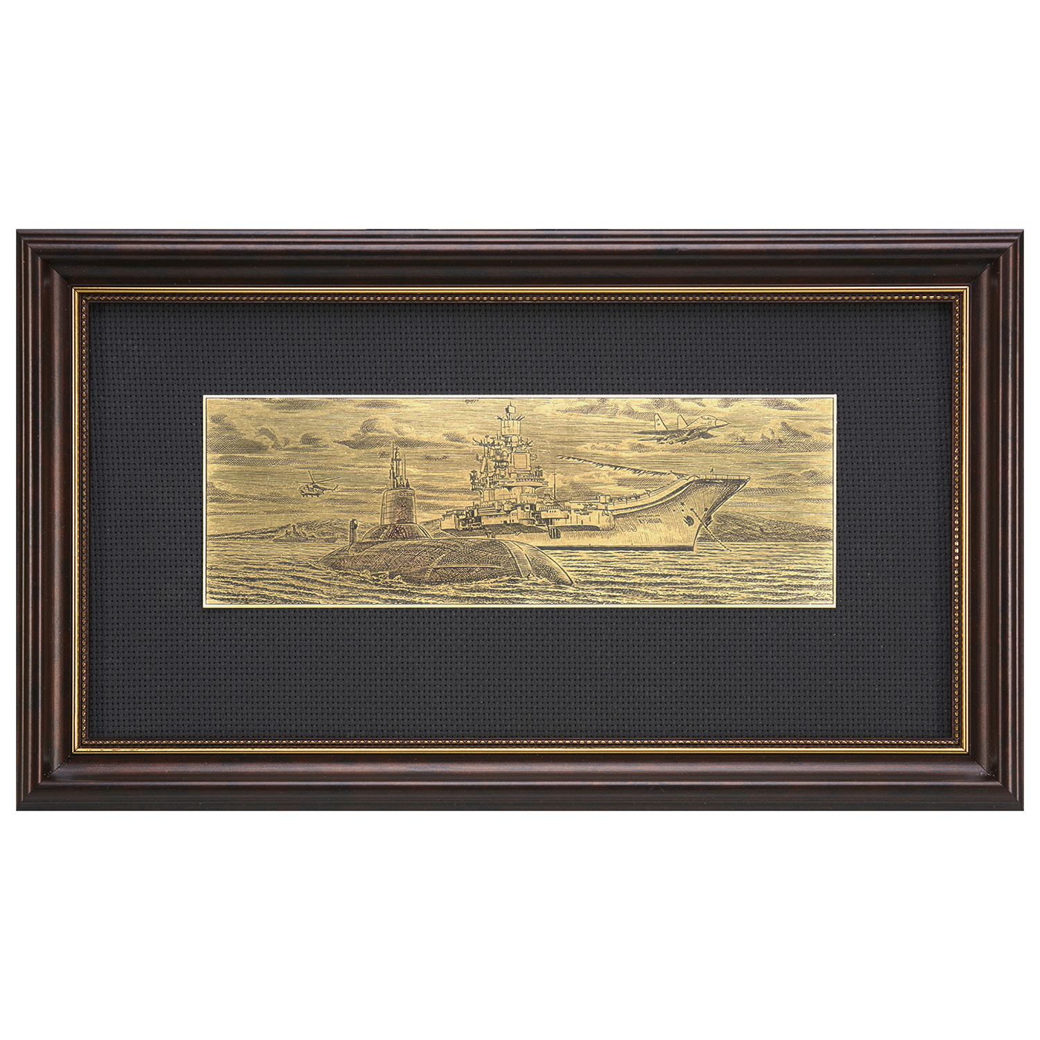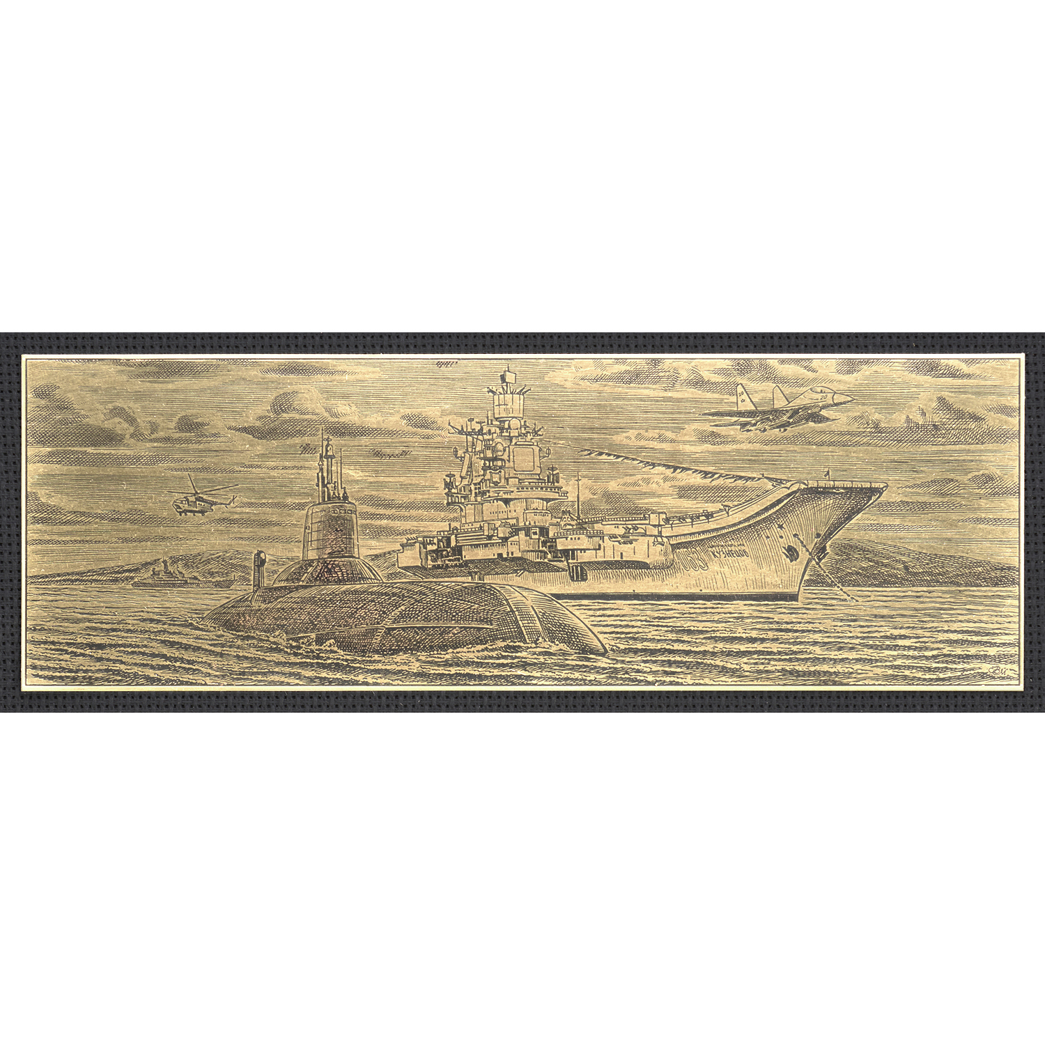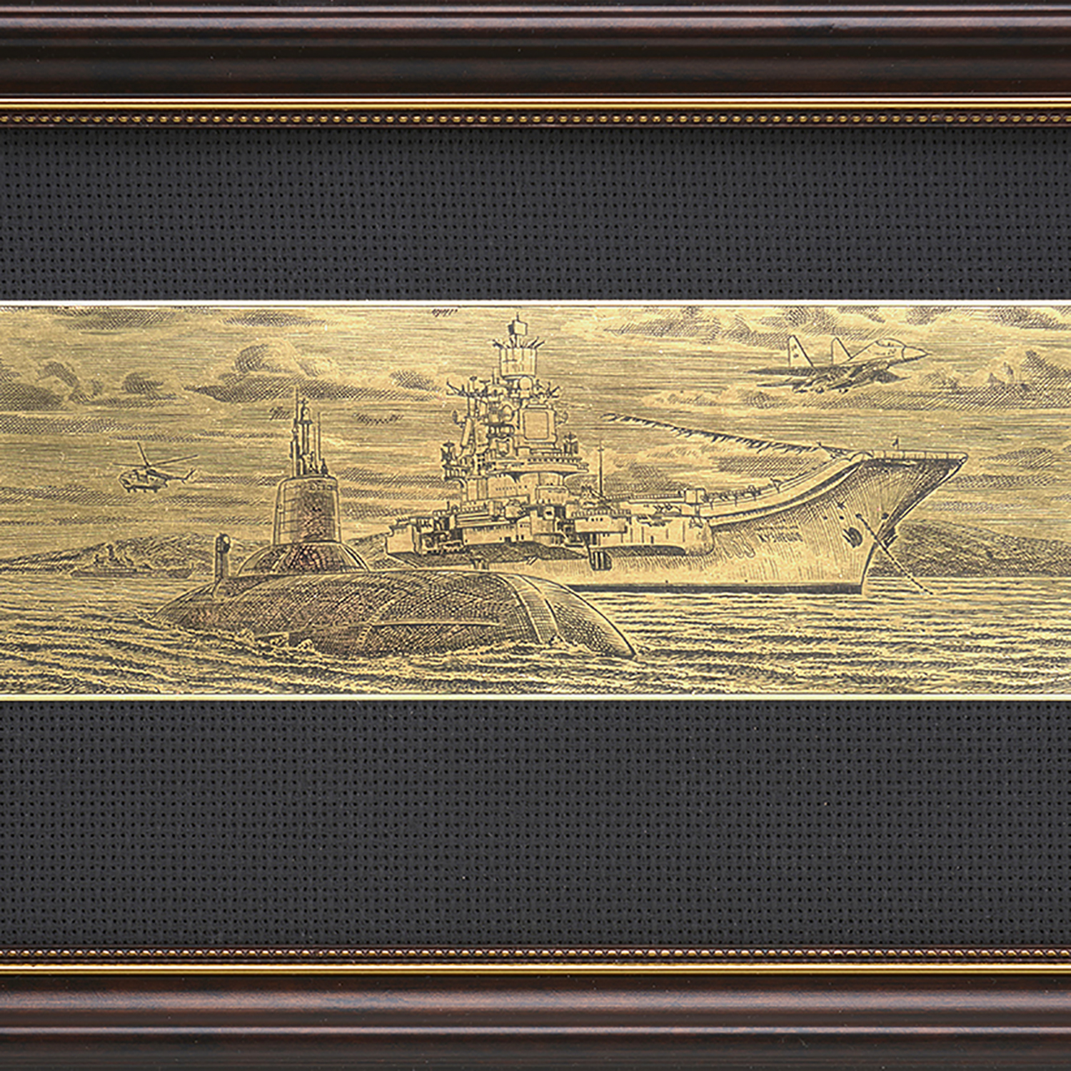 Офорт черно-белый "ВМФ России".Материалы: латунь, паспарту, деревянная рама.