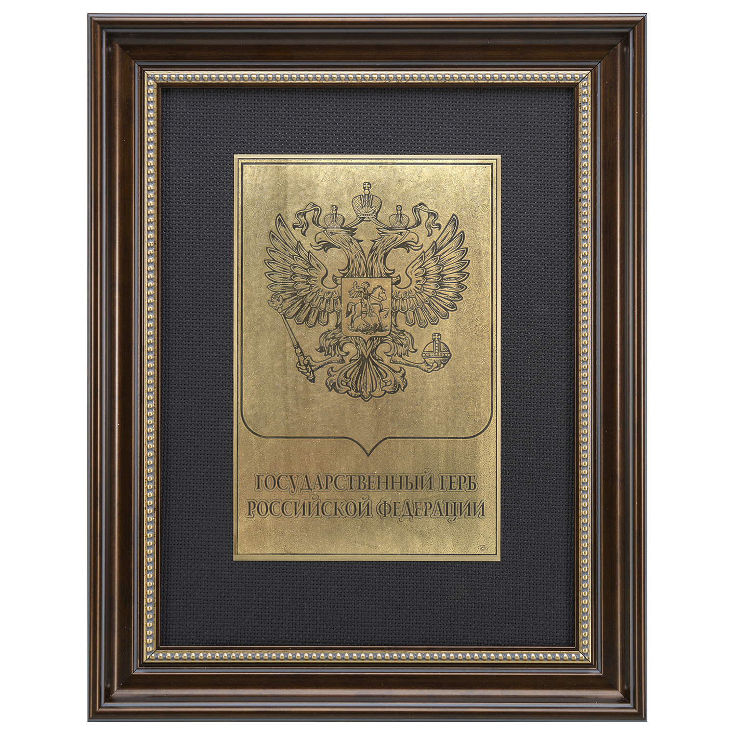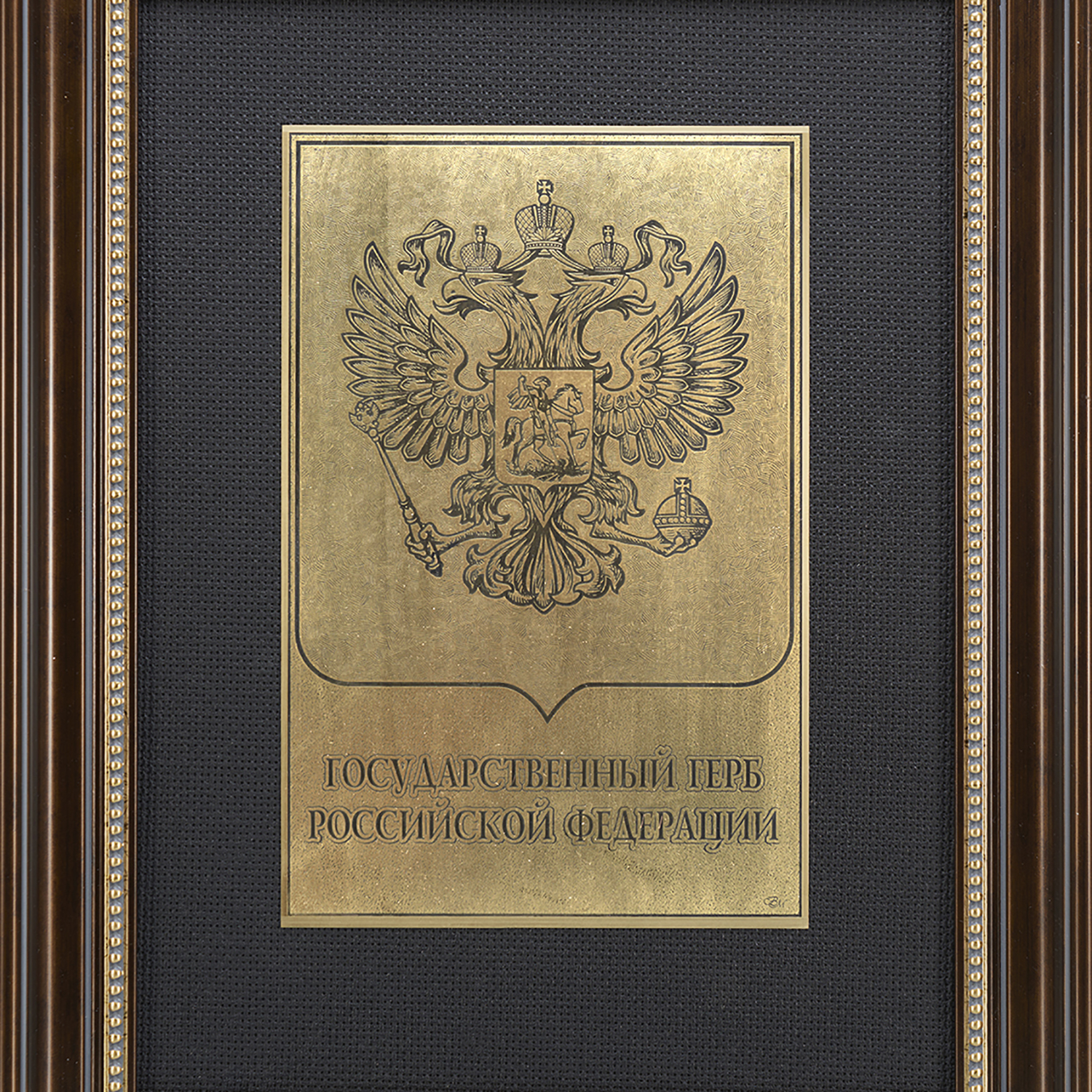 Офорт черно-белый "Герб РФ".Материалы: латунь, паспарту, багетная рама.