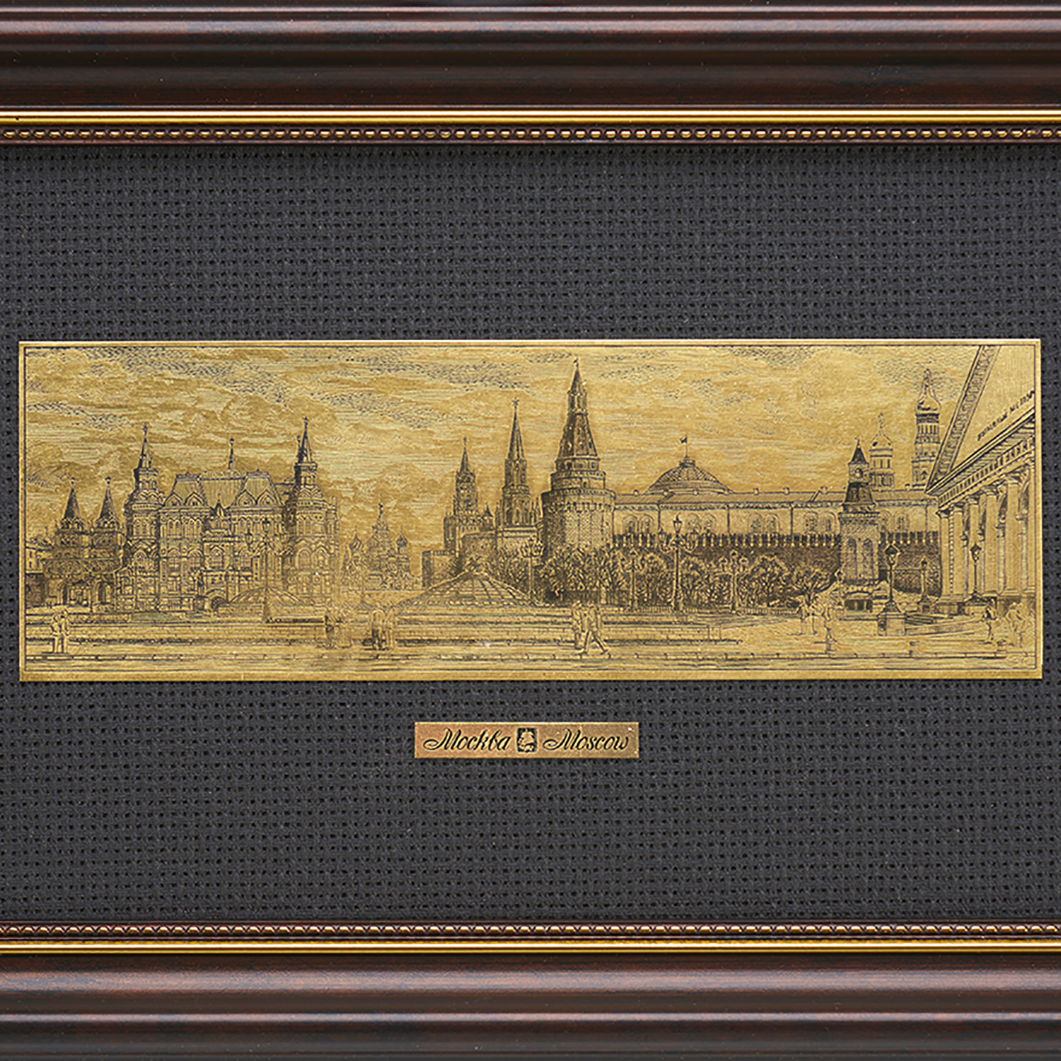 Русские подарки и сувениры → Интерьерные изделия → Офорты → Офорт черно-белый "Москва. Манежная площадь" 18х32 см