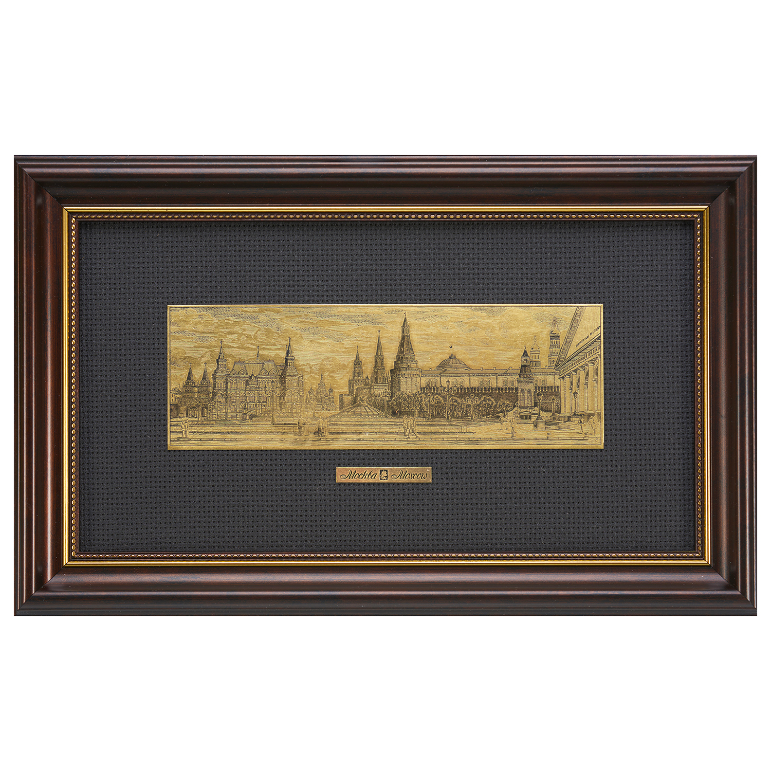 Офорт черно-белый "Москва. Манежная площадь".Материалы: латунь, паспарту, деревянная рама.