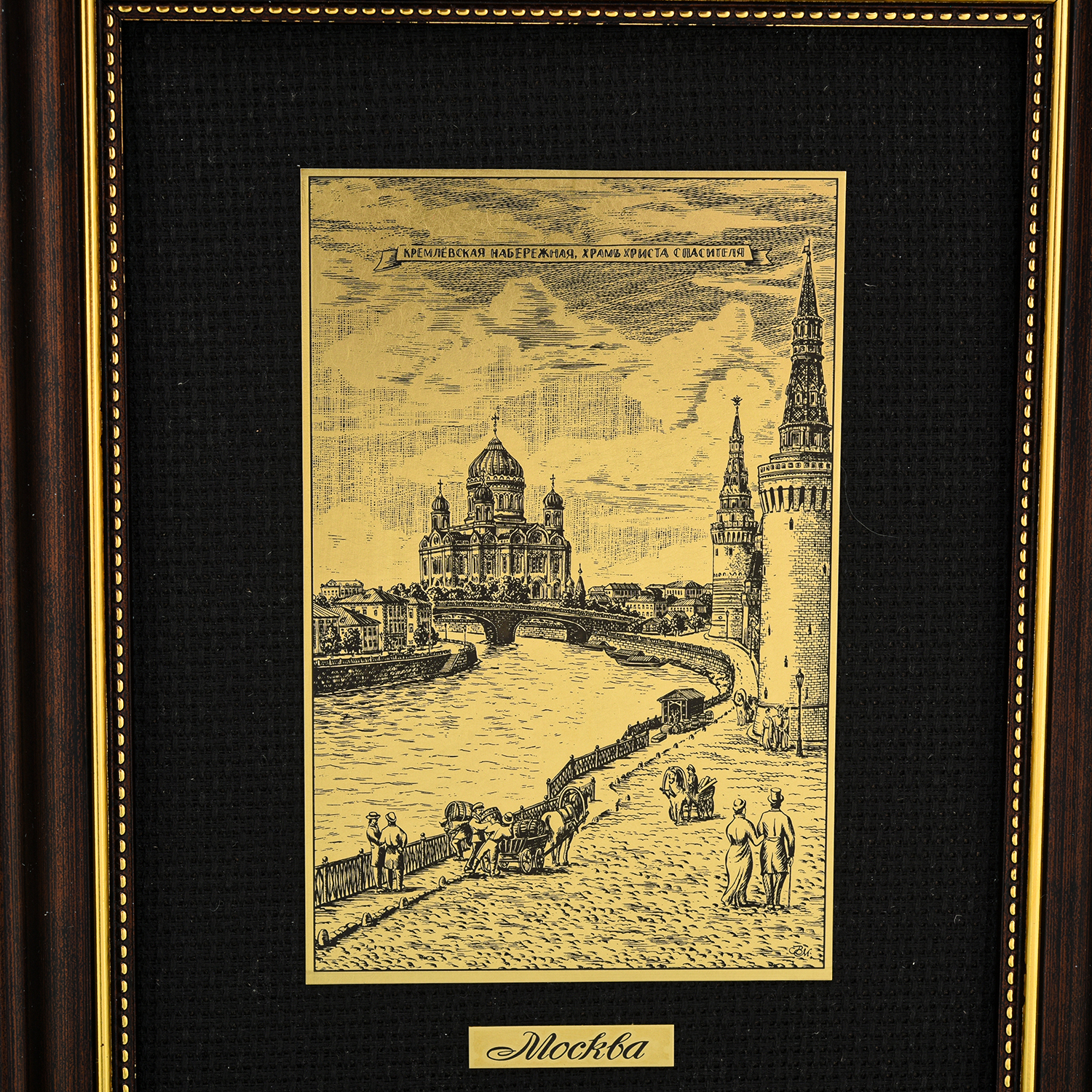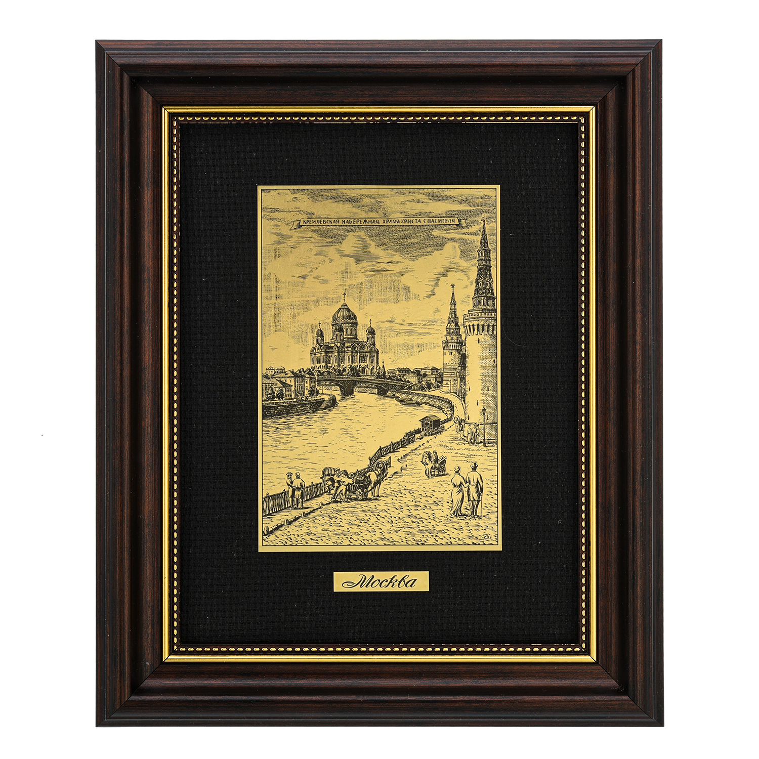 Офорт черно-белый "Москва. Вид на Храм Христа Спасителя".Материалы: латунь, паспарту, деревянная рама.