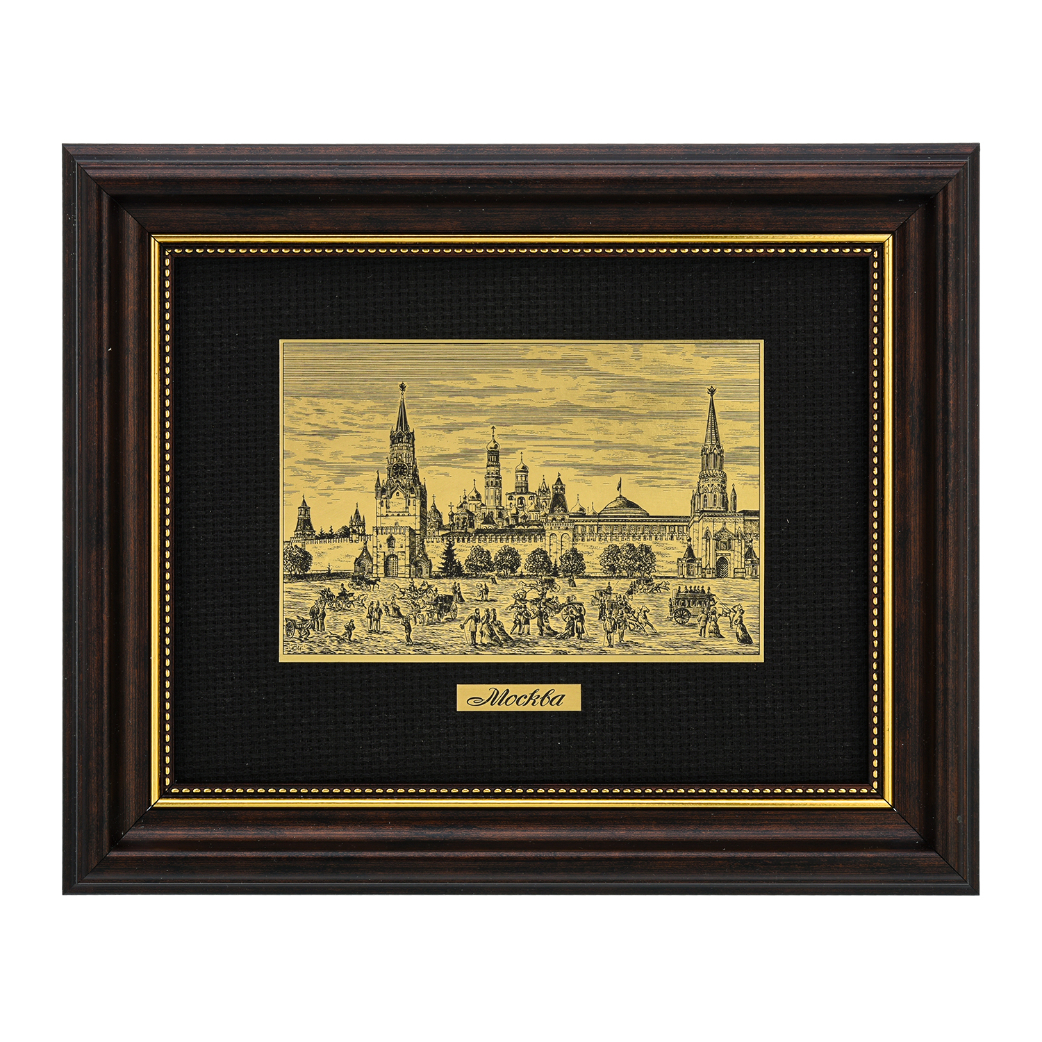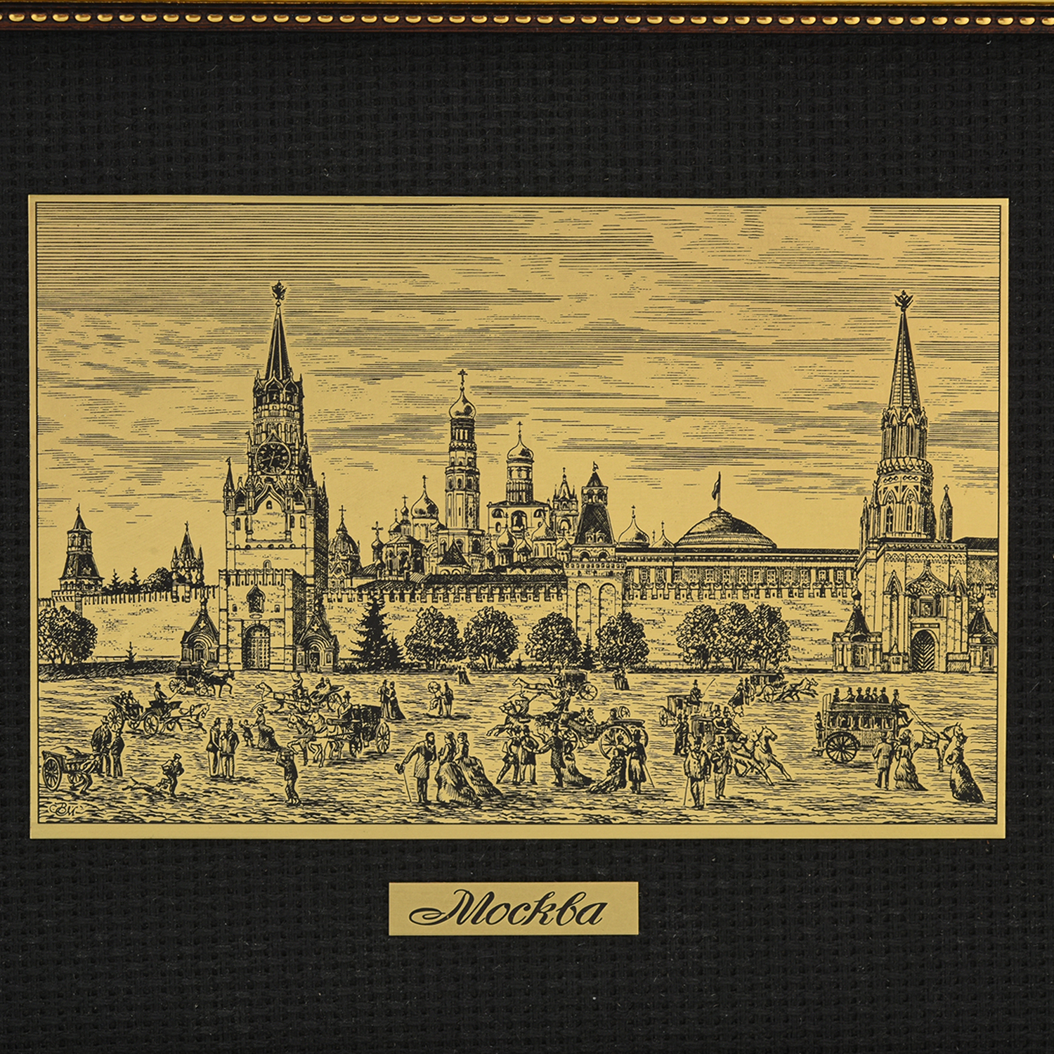 Офорт черно-белый "Старая Москва. Красная площадь".Материалы: латунь, паспарту, деревянная рама.