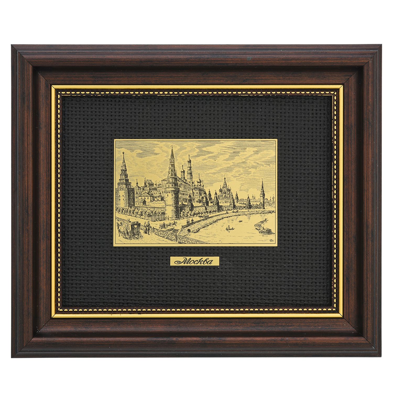 Офорт черно-белый "Вид на Кремль. Старая Москва".Материалы: латунь, паспарту, деревянная рама.