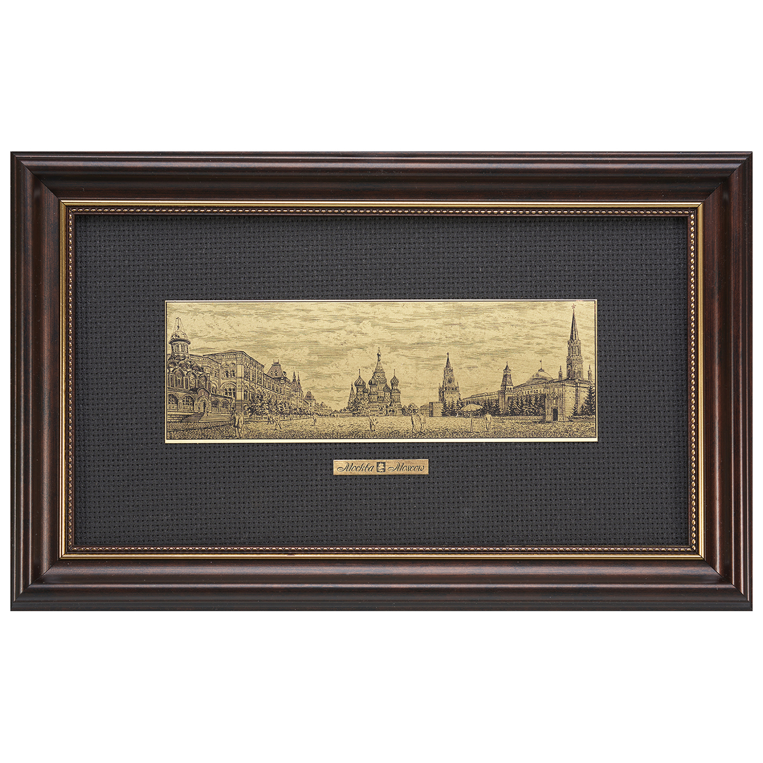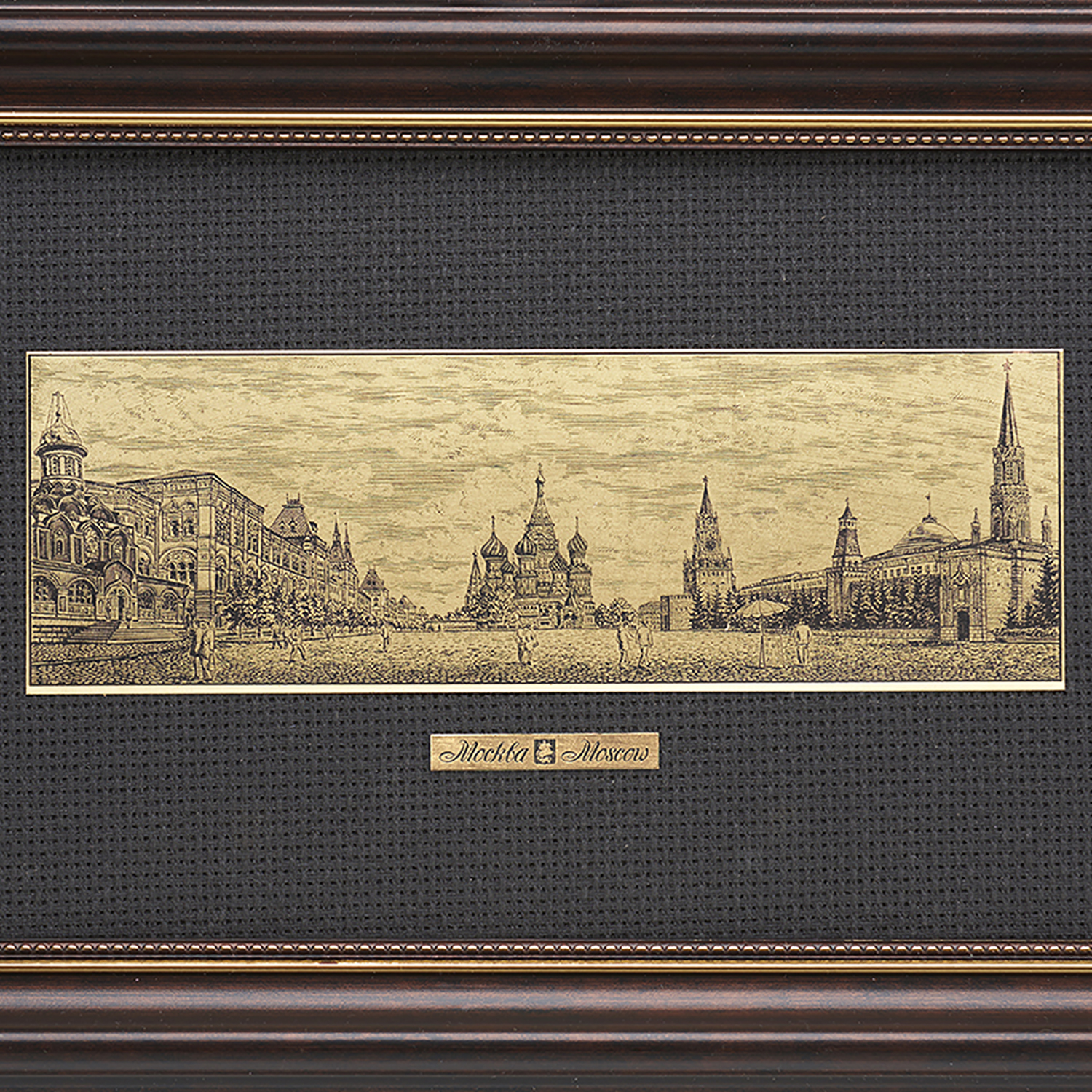 Офорт черно-белый "Красная площадь".Материалы: латунь, паспарту, деревянная рама.