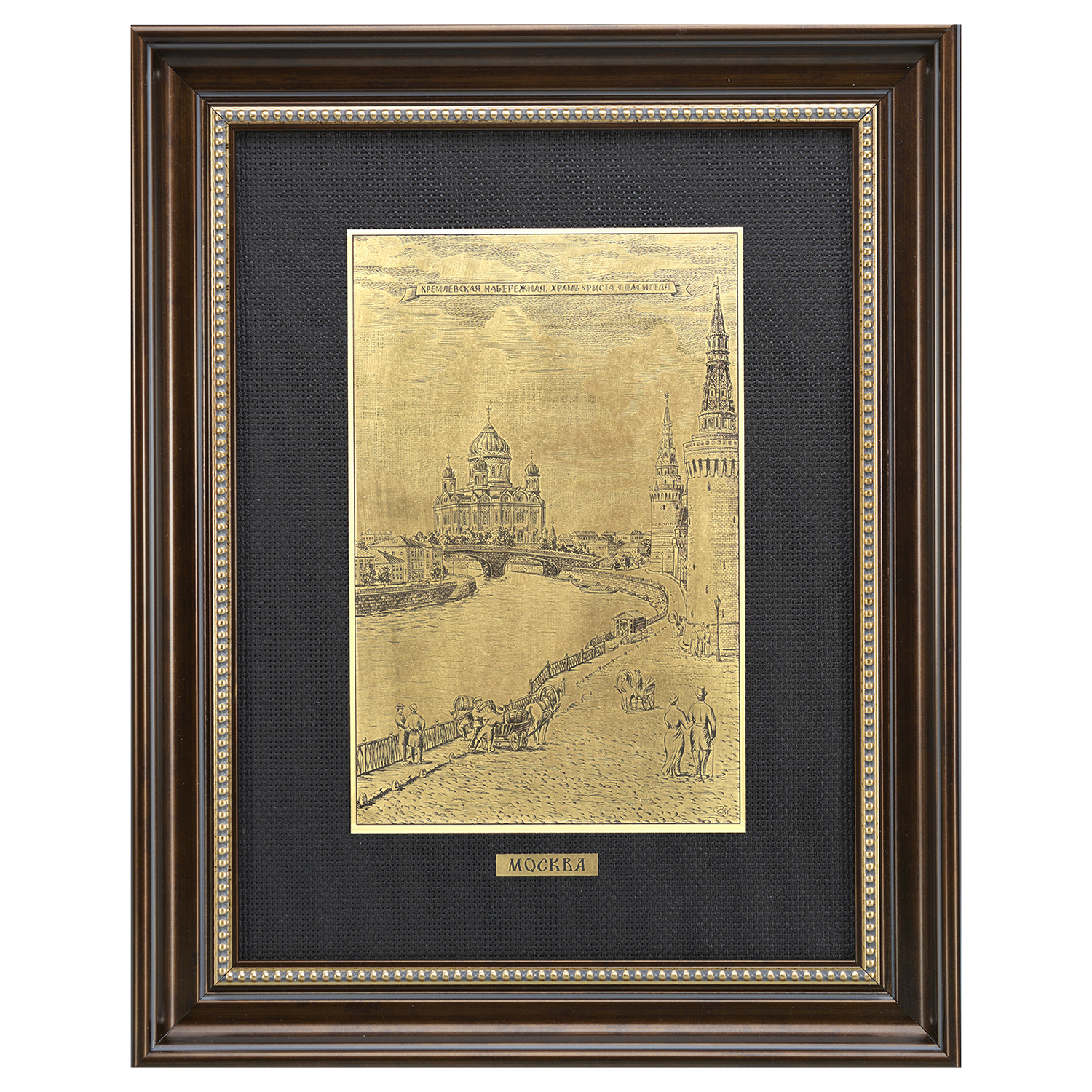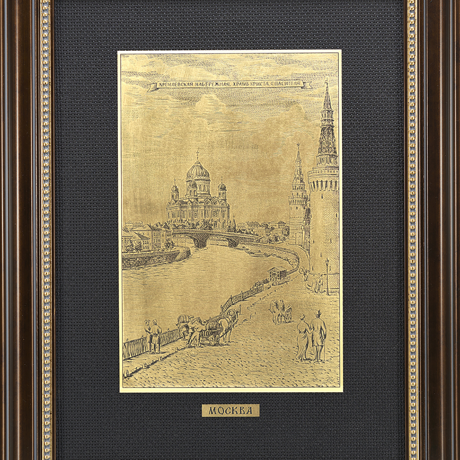 Офорт черно-белый "Москва. Вид на Храм Христа Спасителя".Материалы: латунь, паспарту, деревянная рама.