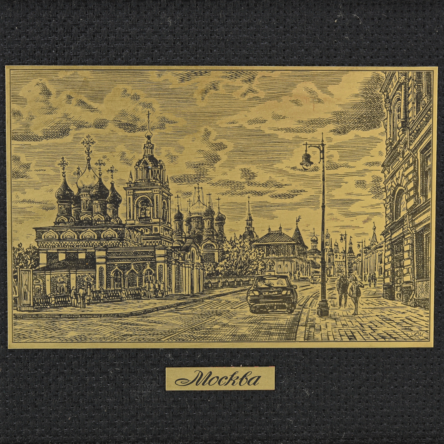 Русские подарки и сувениры → Интерьерные изделия → Офорты → Офорт черно-белый "Москва. Улица Варварка" 17х22 см