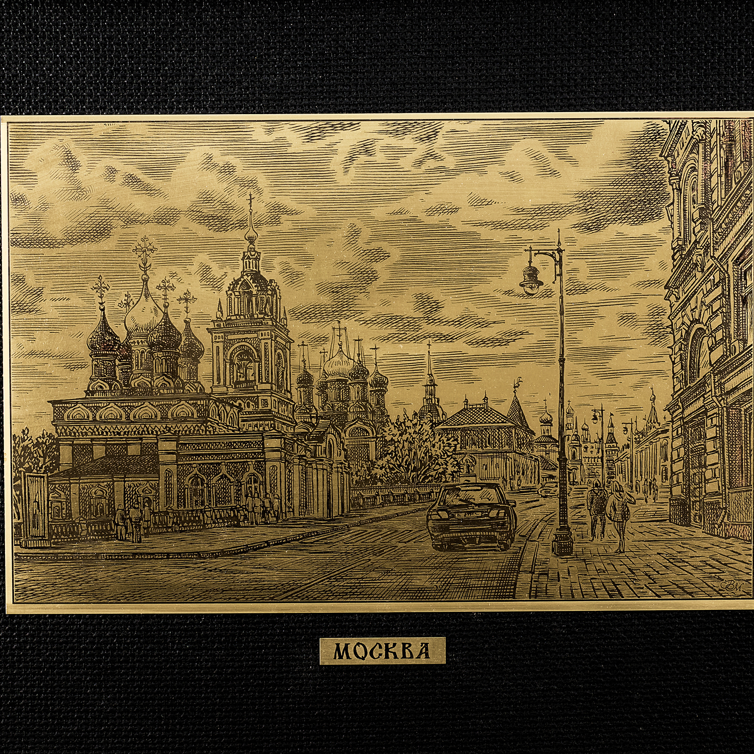 Офорт черно-белый "Москва. Улица Варварка".Материал: латунь.