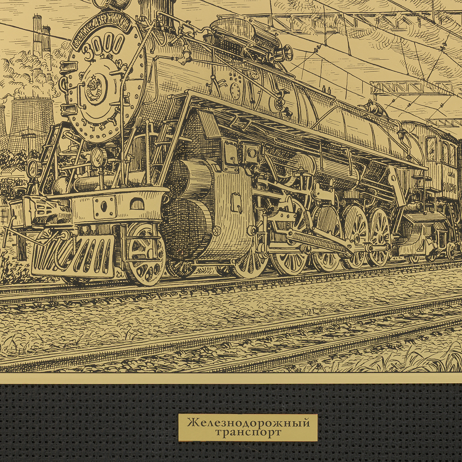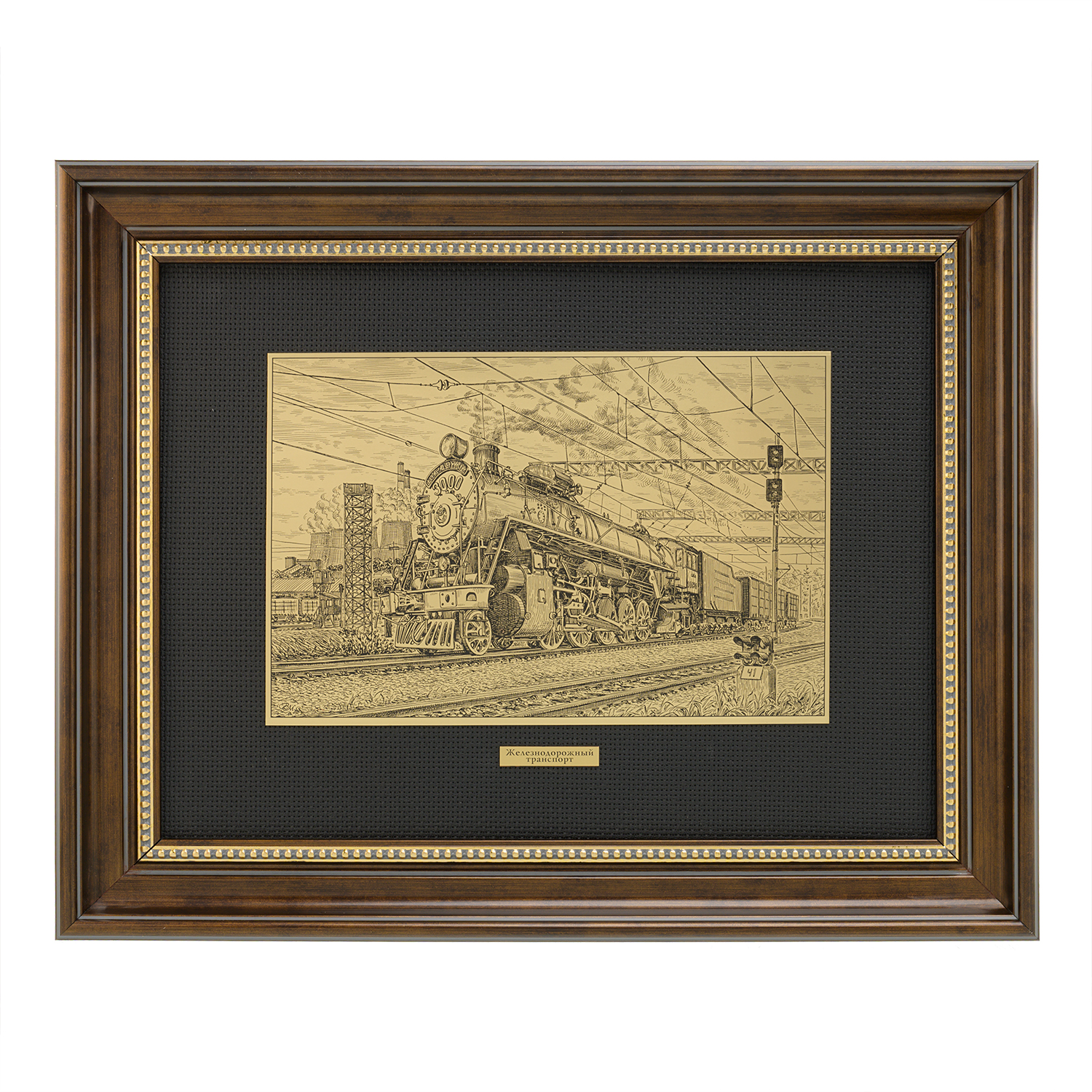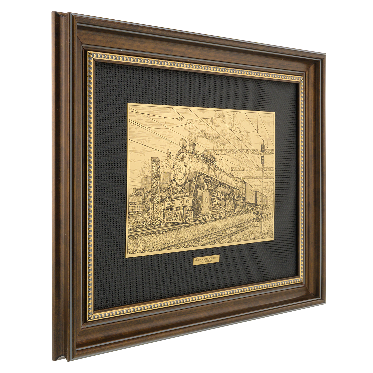 Офорт черно-белый "Паровоз".Материал: латунь.