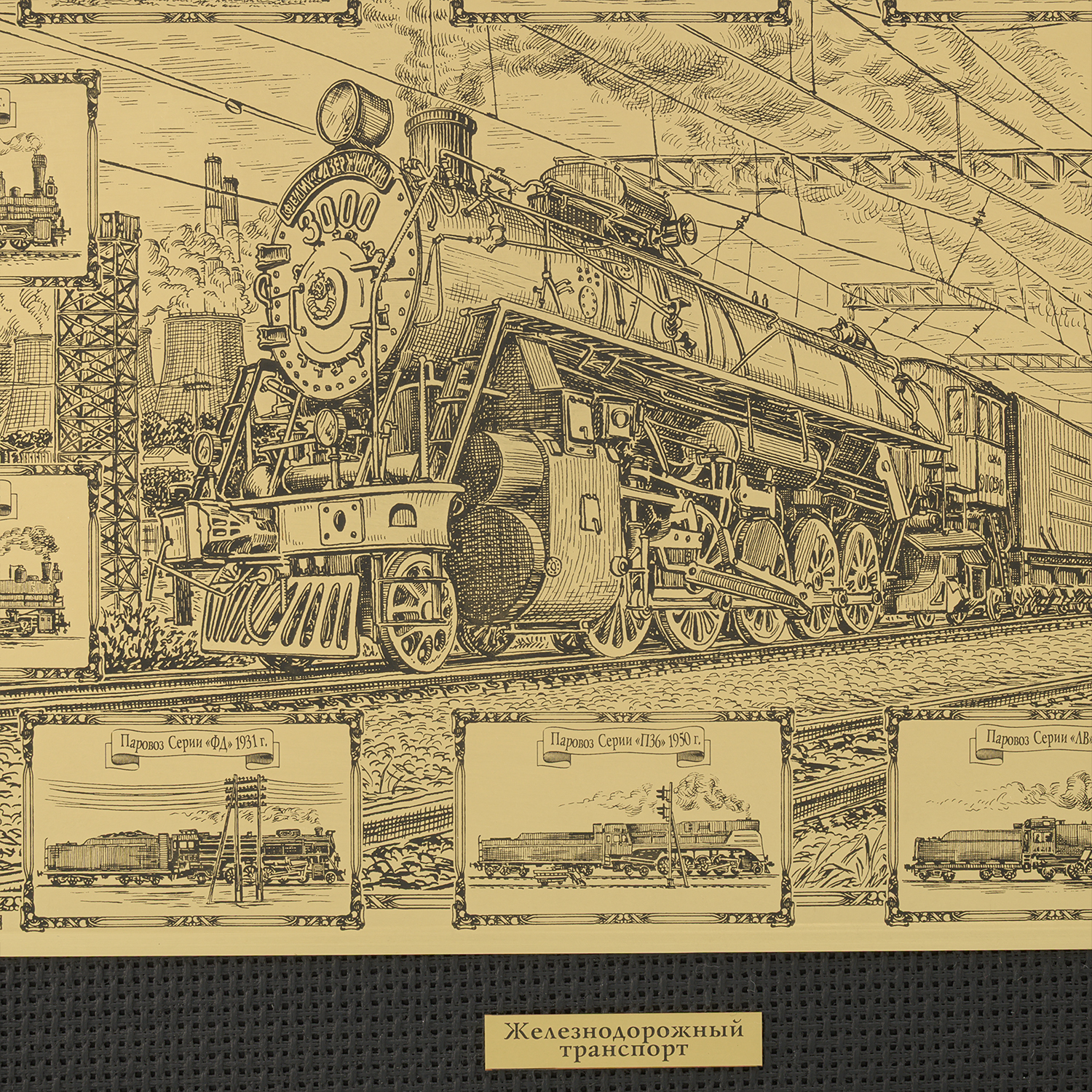 Офорт черно-белый "Паровоз".Материал: латунь.