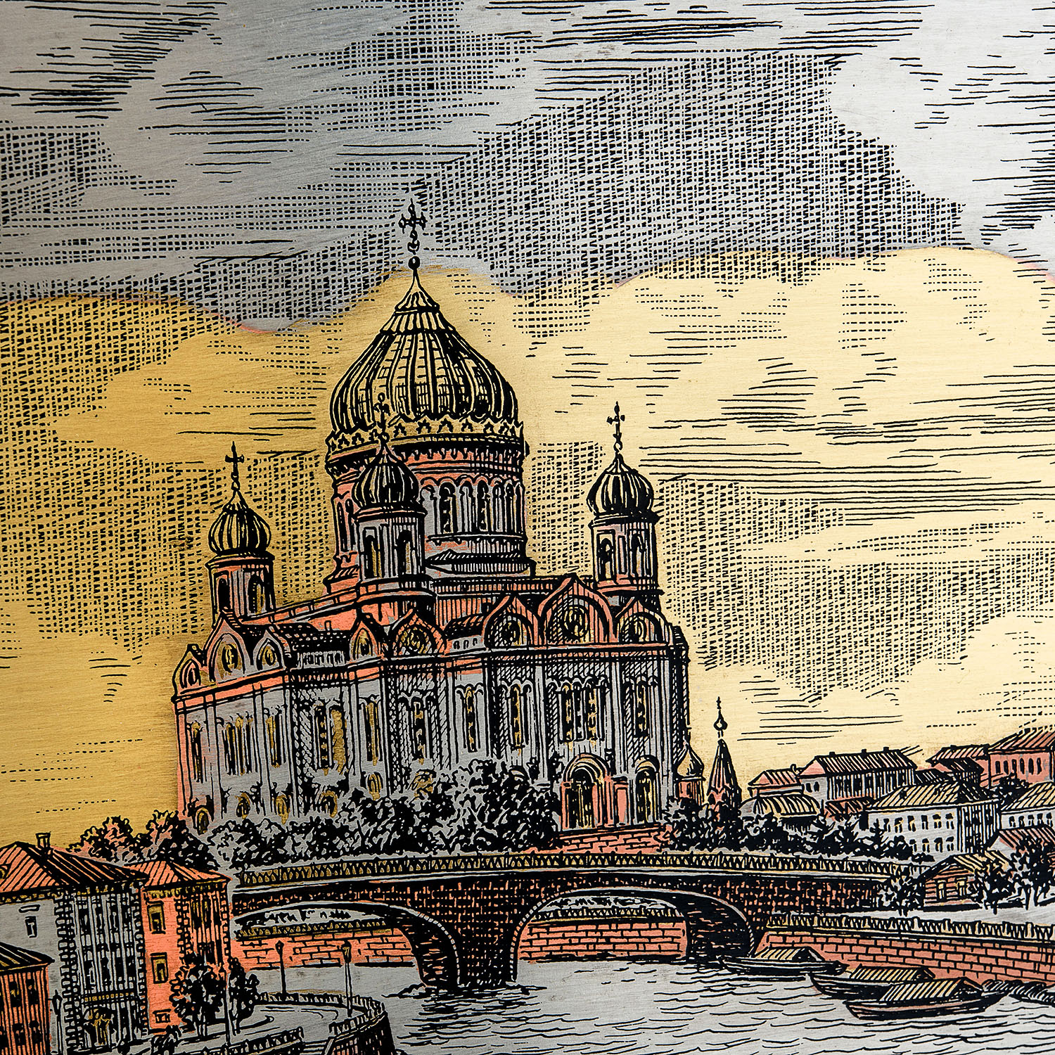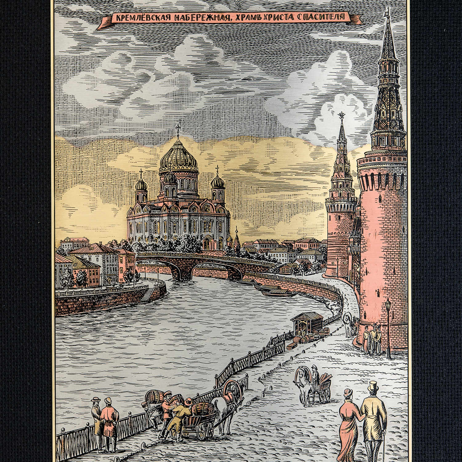 Офорт цветной "Москва. Вид на Храм Христа Спасителя" 42 х 55 см
