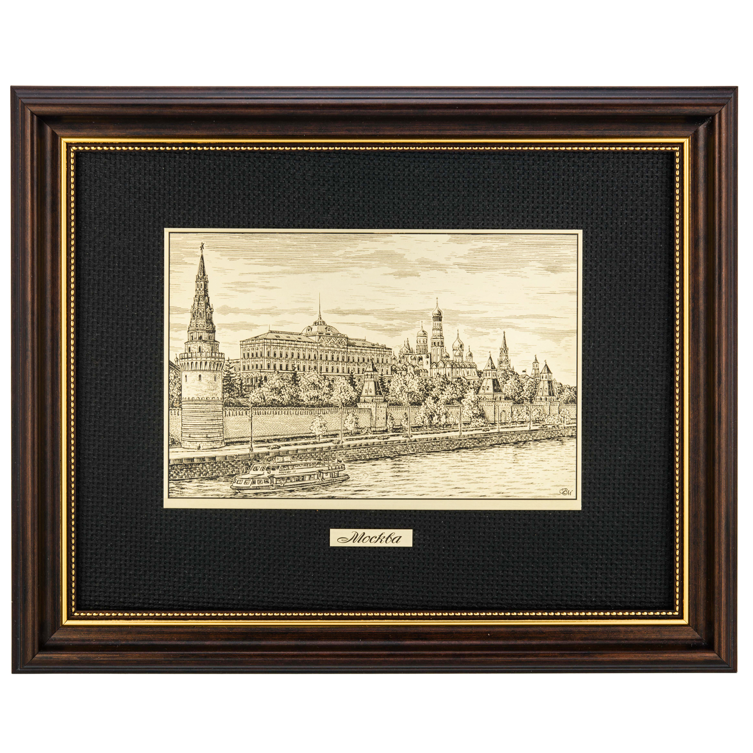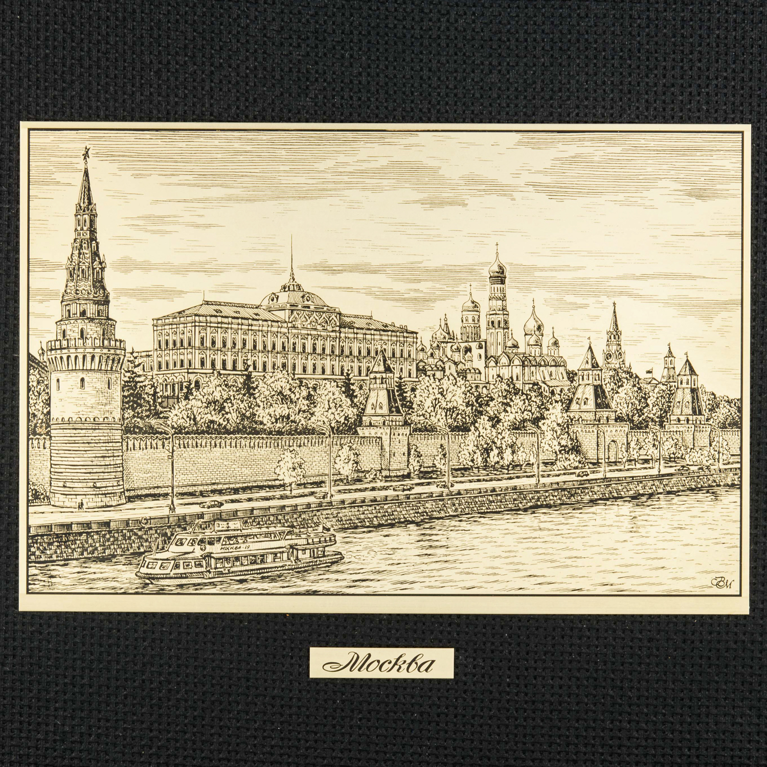 Русские подарки и сувениры → Интерьерные изделия → Офорты → Офорт черно-белый "Москва. Кремлевская набережная" 25х32 см