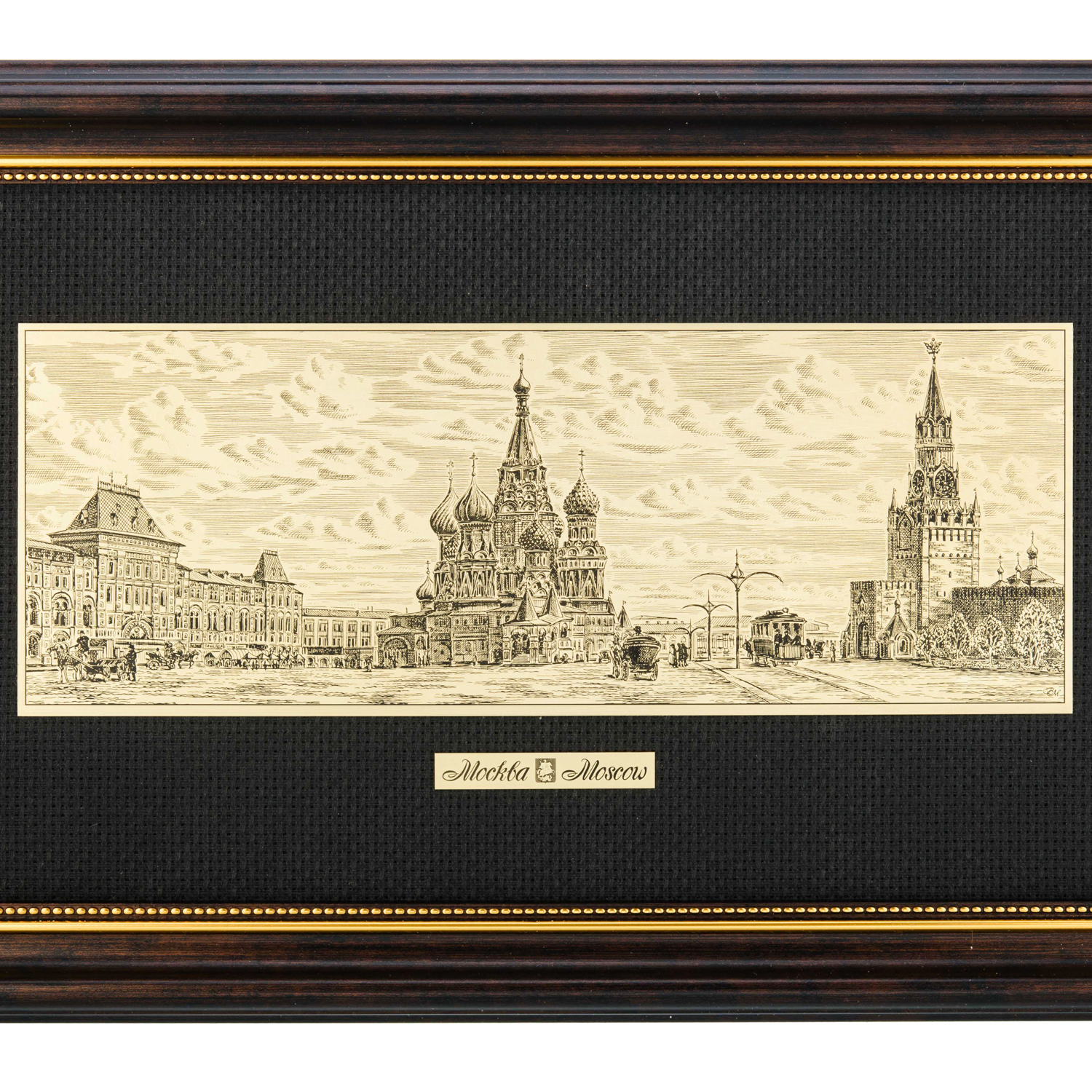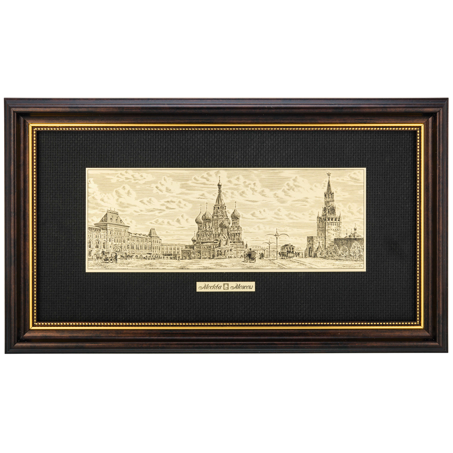 Офорт черно-белый "Старая Москва. Красная площадь" 21х40 см