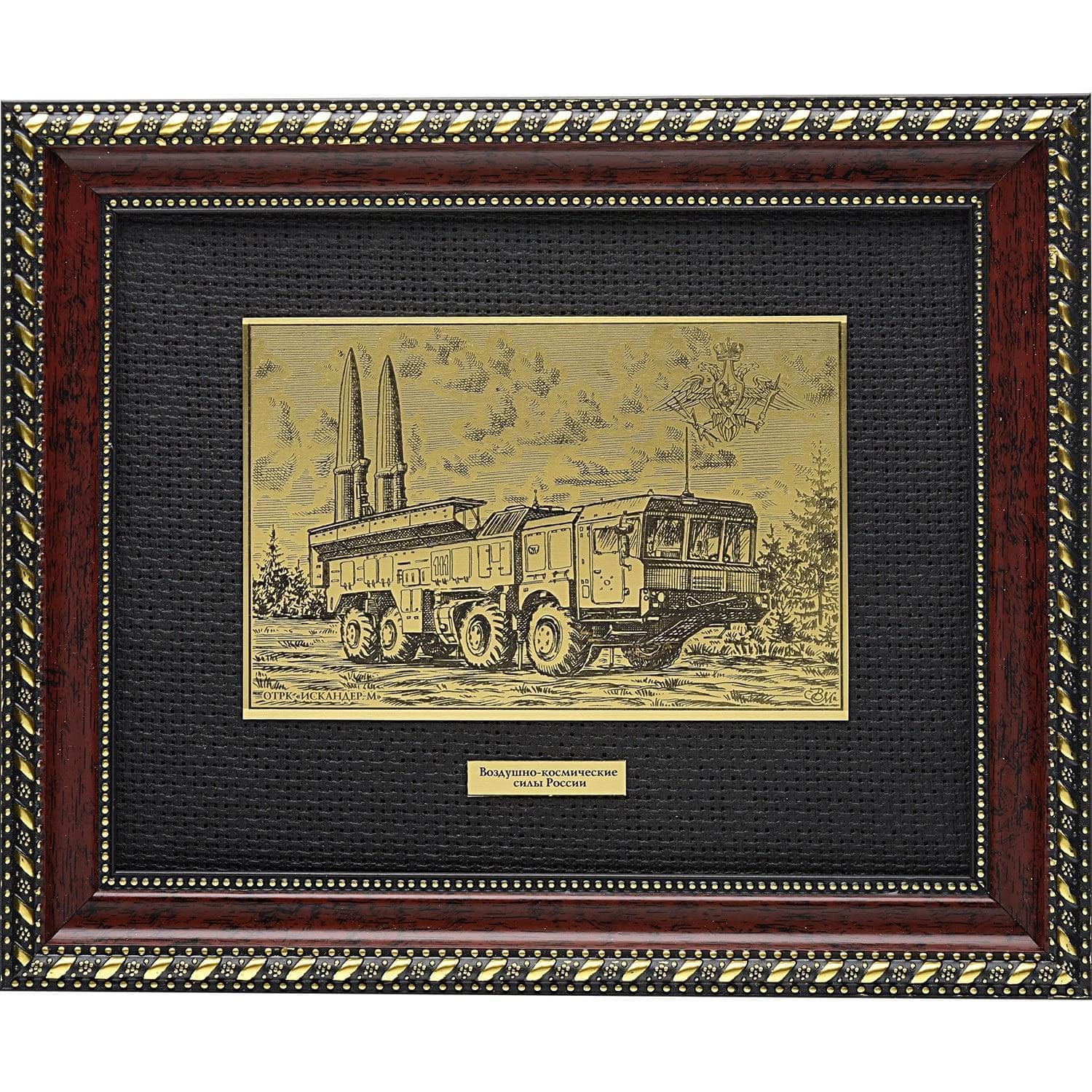 Вашему вниманию - вариант адресного подарка для военного, классический интерьерный аксессуар, настенный офорт ручной работы. Изображение выполнено в старинной художественной технике гравировки на стали с применением современных технологий. Офорт создает стильный и символичный акцент на стене в классическом интерьере, на рабочем месте.Гравированная композиция с изображением ракетного комплекса выполнена на латунной пластине методом ручного травления, размещена на паспарту черного цвета, оформленном тканью. Пасрпарту обрамлено в минималистичный багет кофейного оттенка.