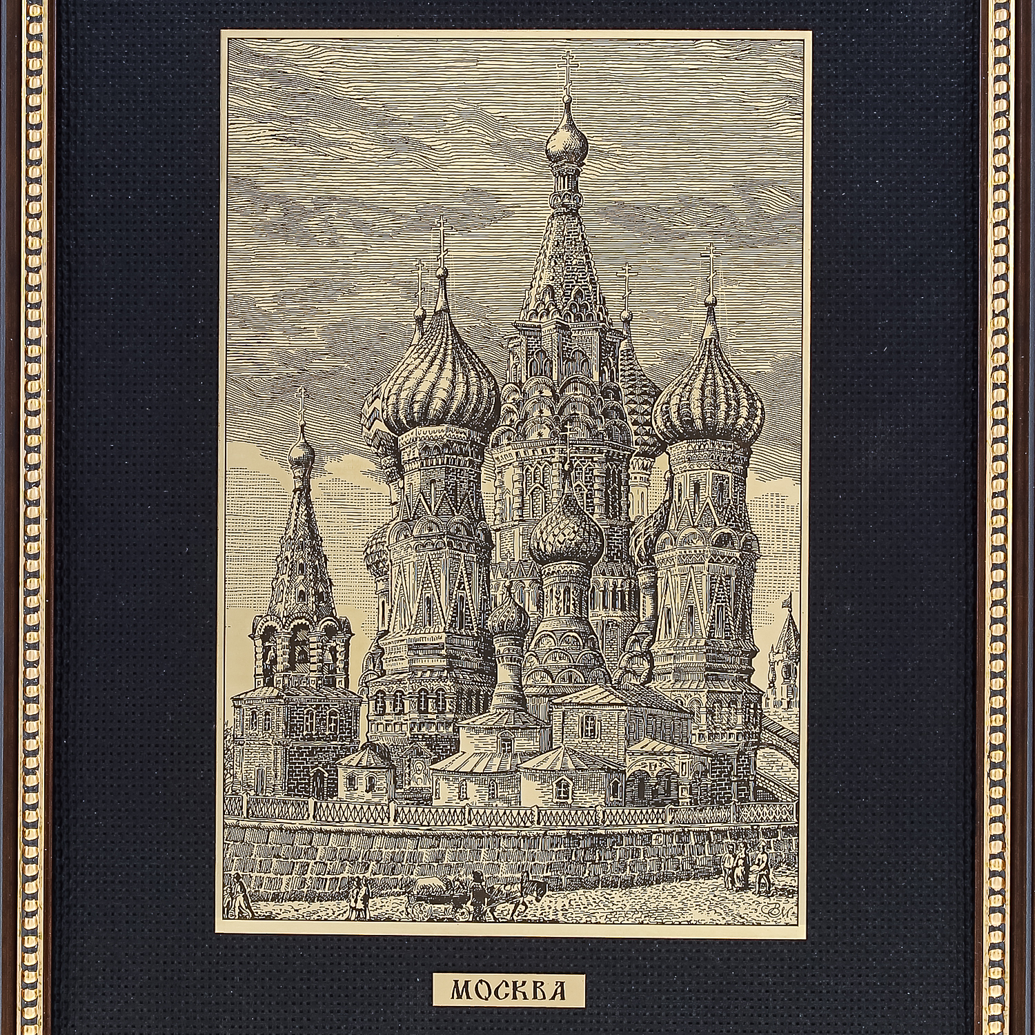 Офорт черно-белый "Храм Василия Блаженного" 30х40 см