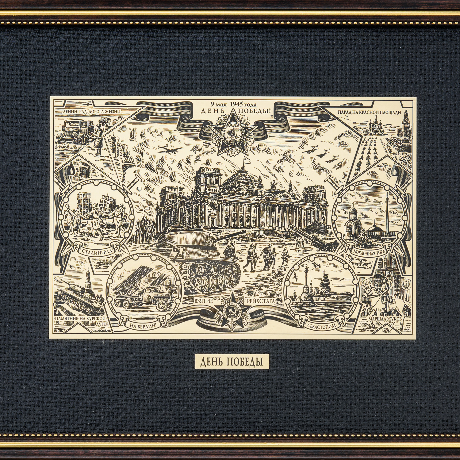 Русские подарки и сувениры → Интерьерные изделия → Офорты → Офорт черно-белый "День Победы" 25 х 32 см