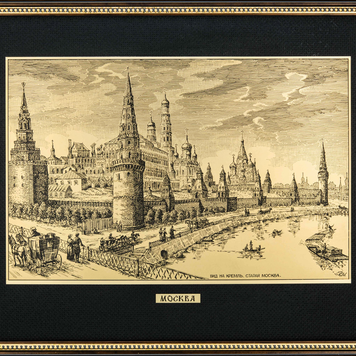Офорт черно-белый "Старая Москва. Вид на Кремль" 42х55 см