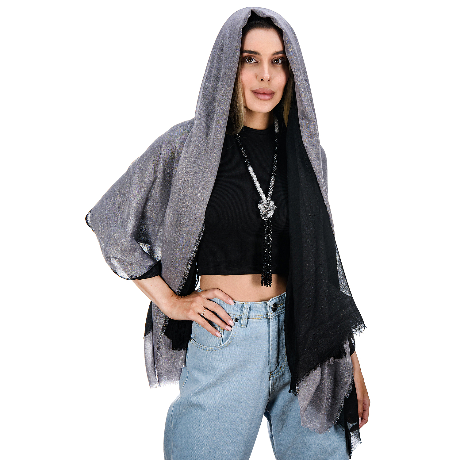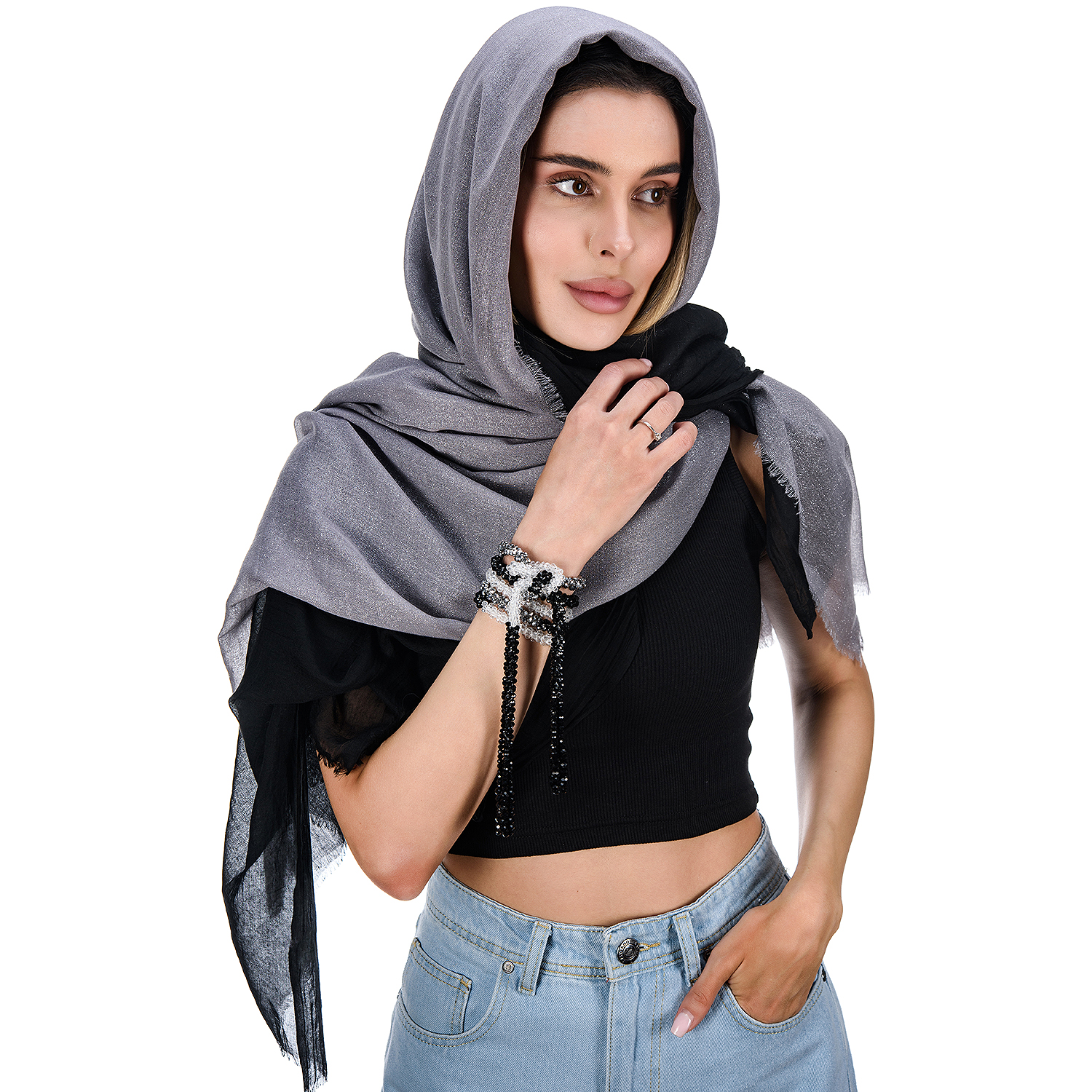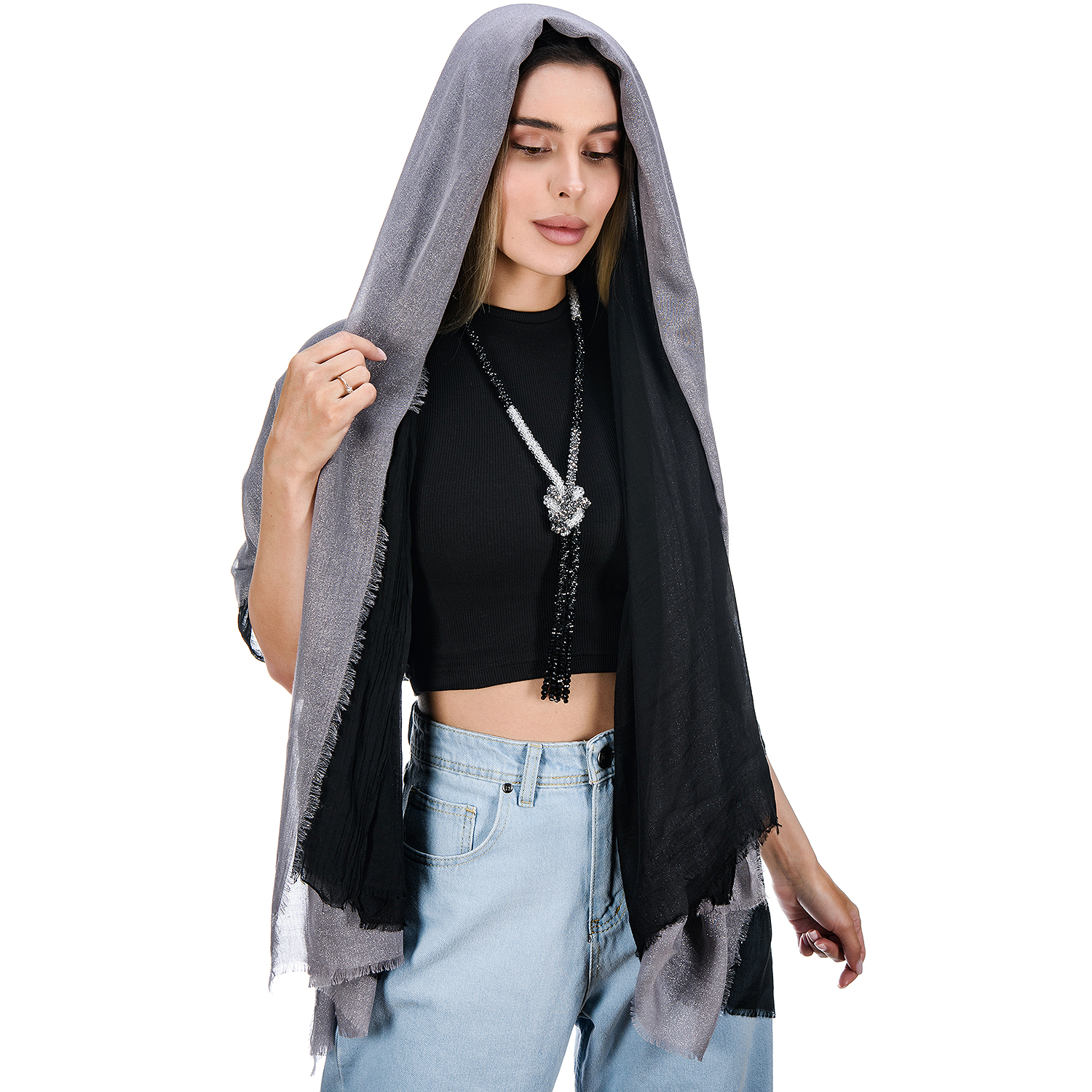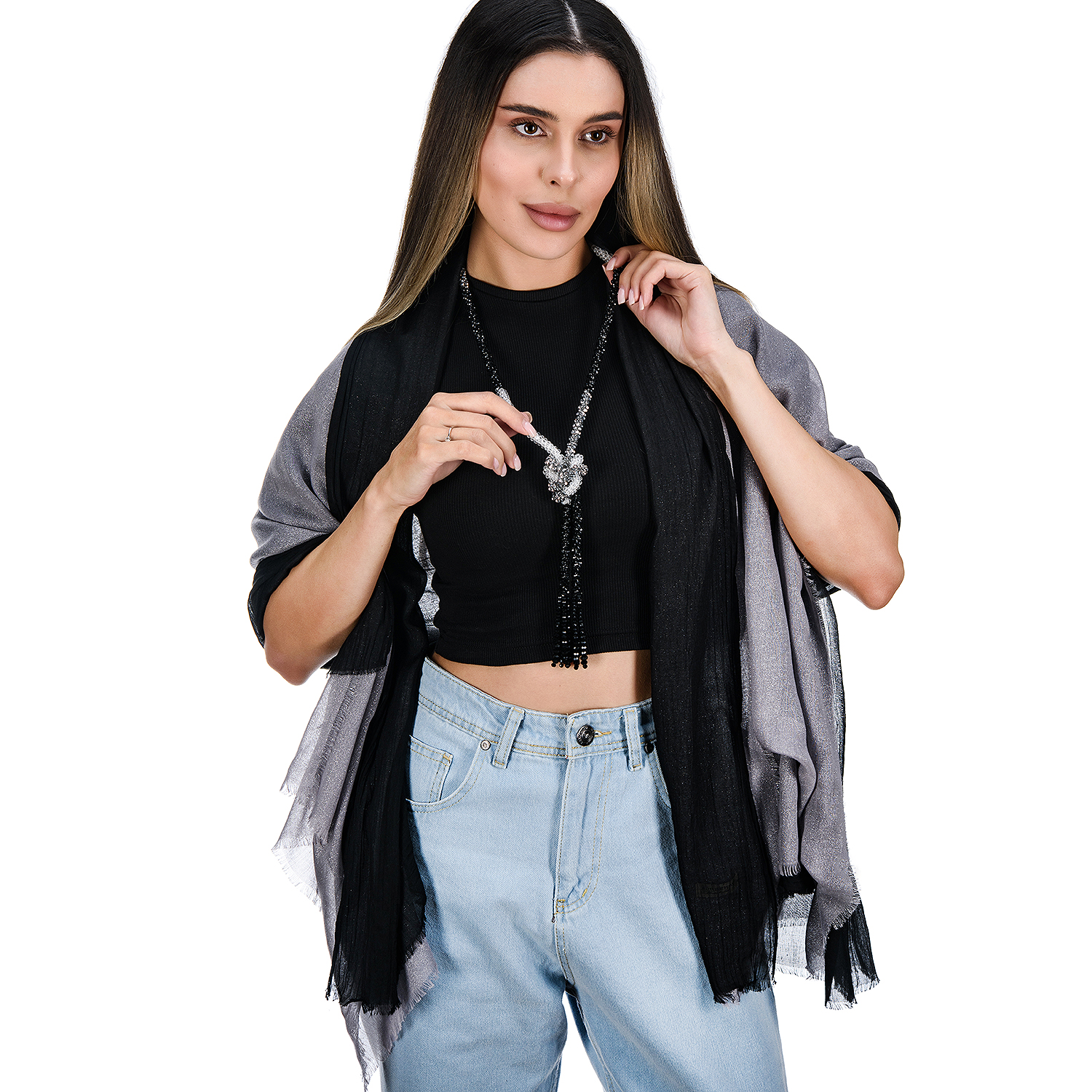 Набор парных палантинов с бусами-жгутом "Дуэт". Серебристо-черный
