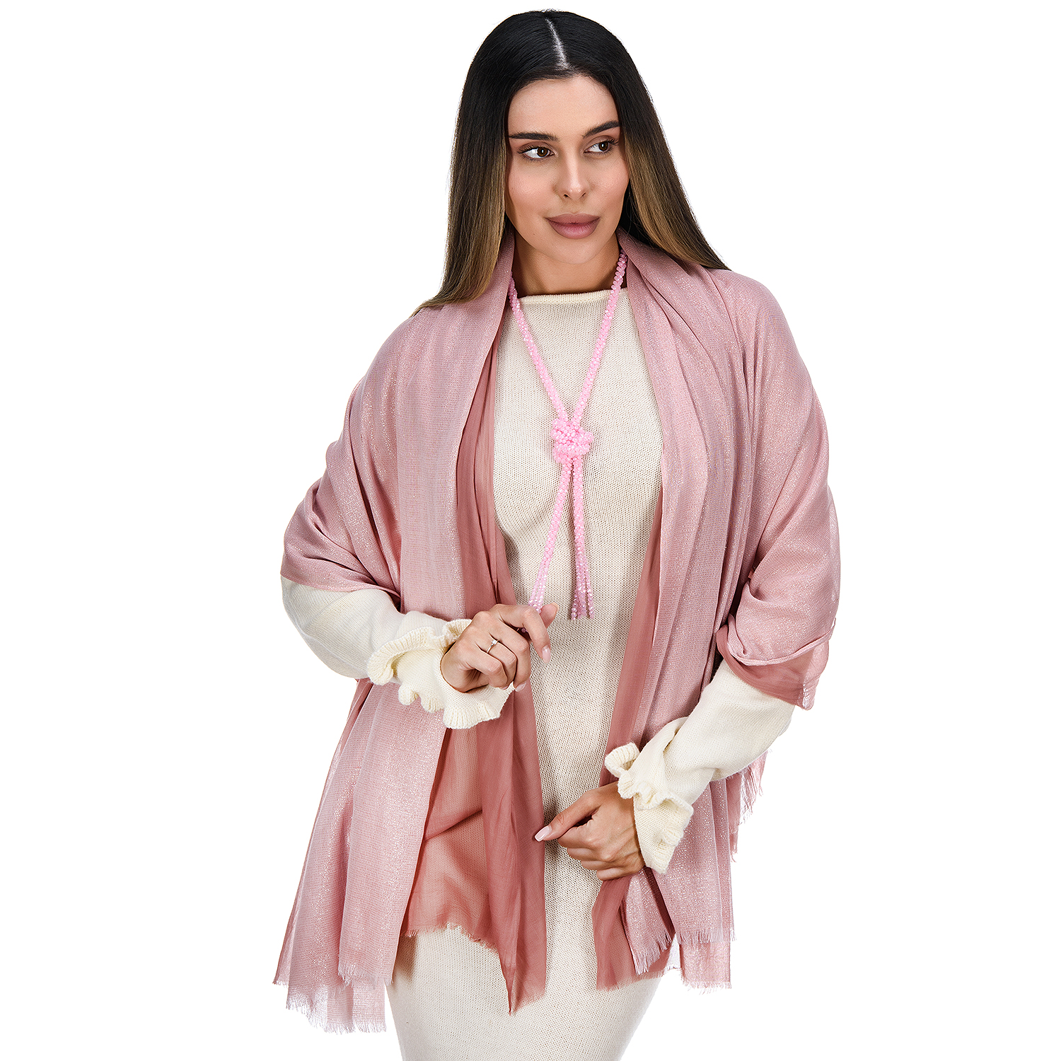 Русские подарки и сувениры → Платки → Палантины → Набор парных палантинов с бусами-жгутом "Дуэт". Розовый