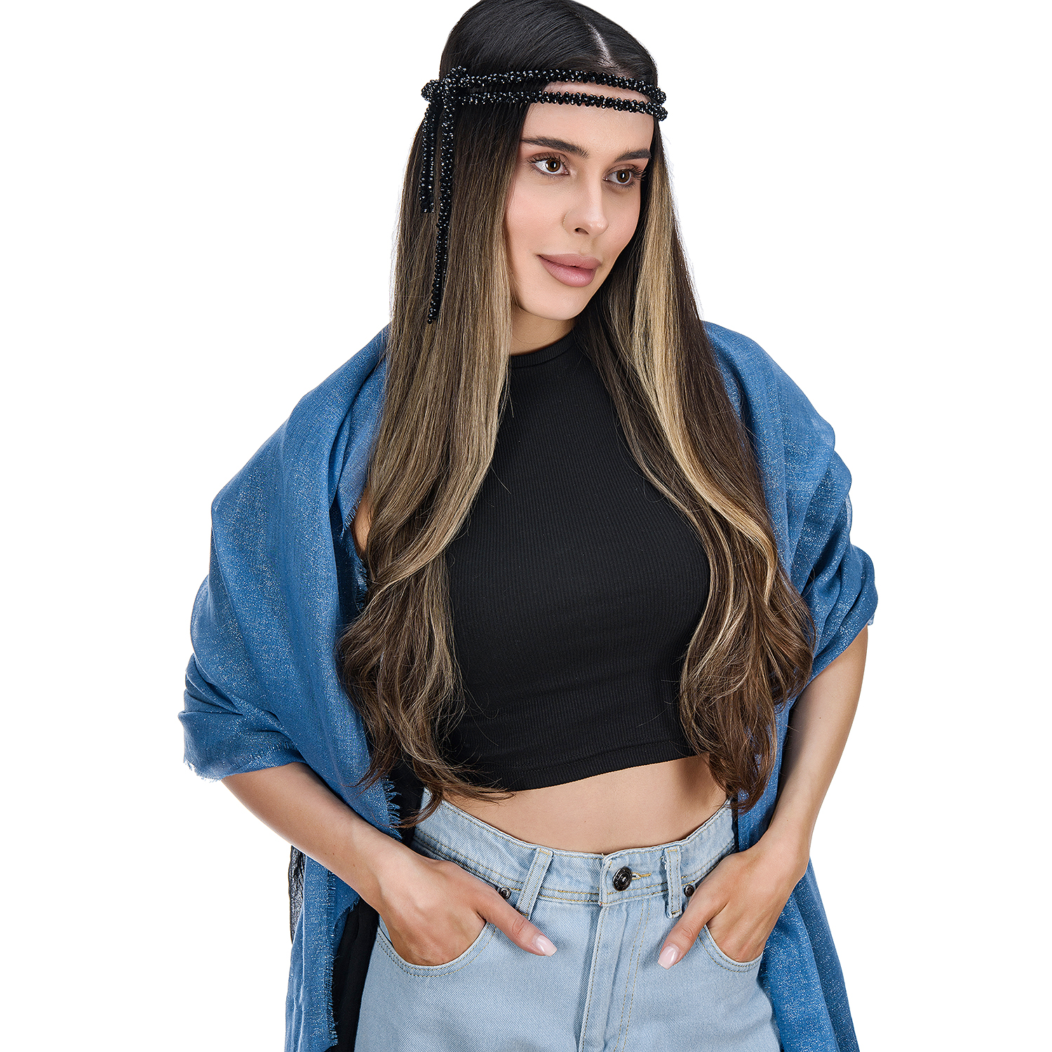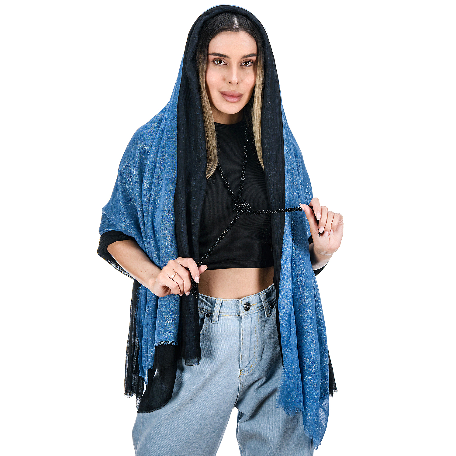 Набор парных палантинов с бусами-жгутом "Дуэт". Черно-синий