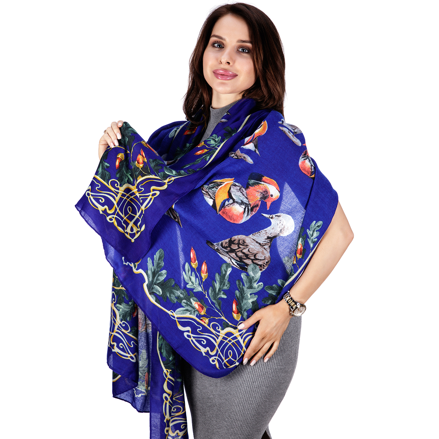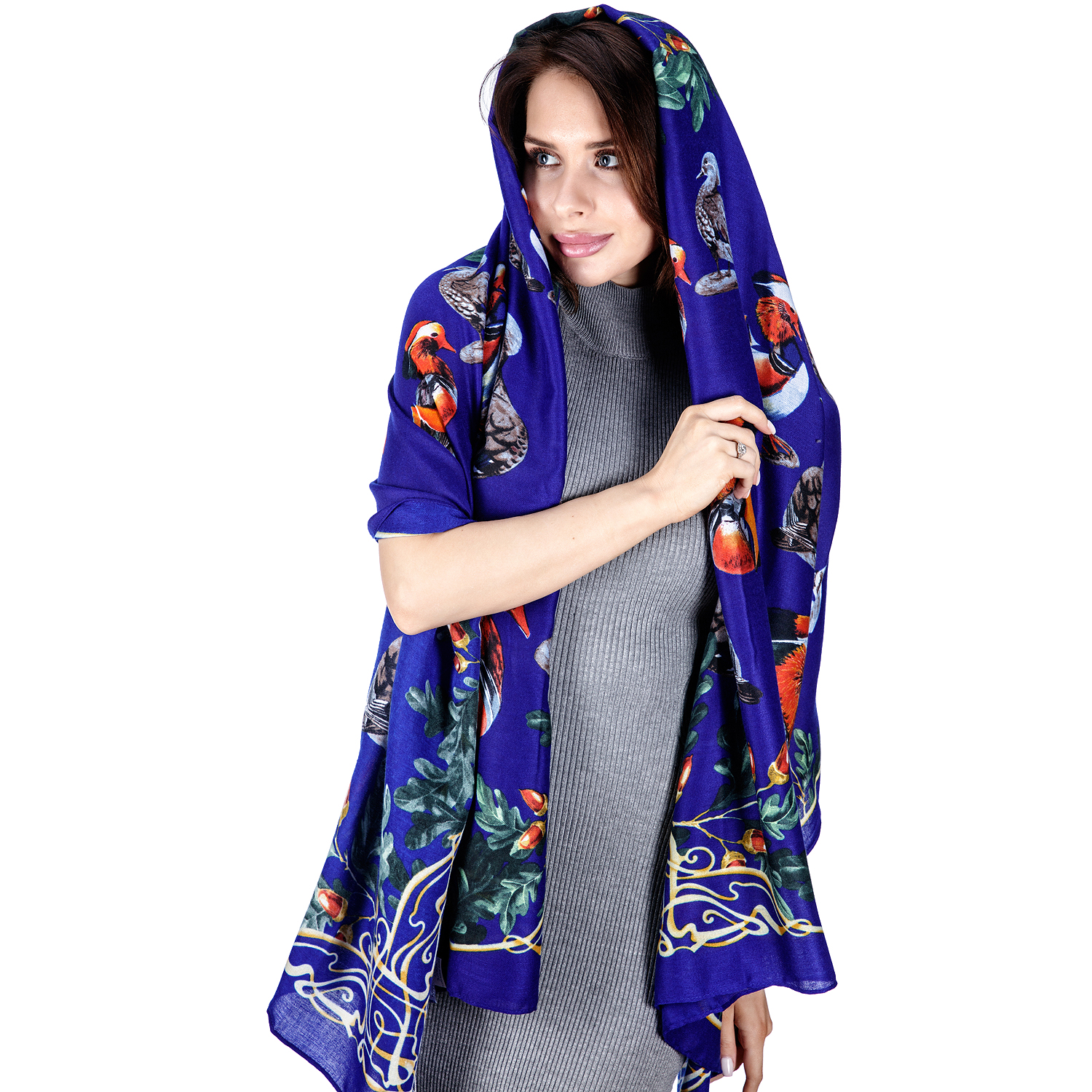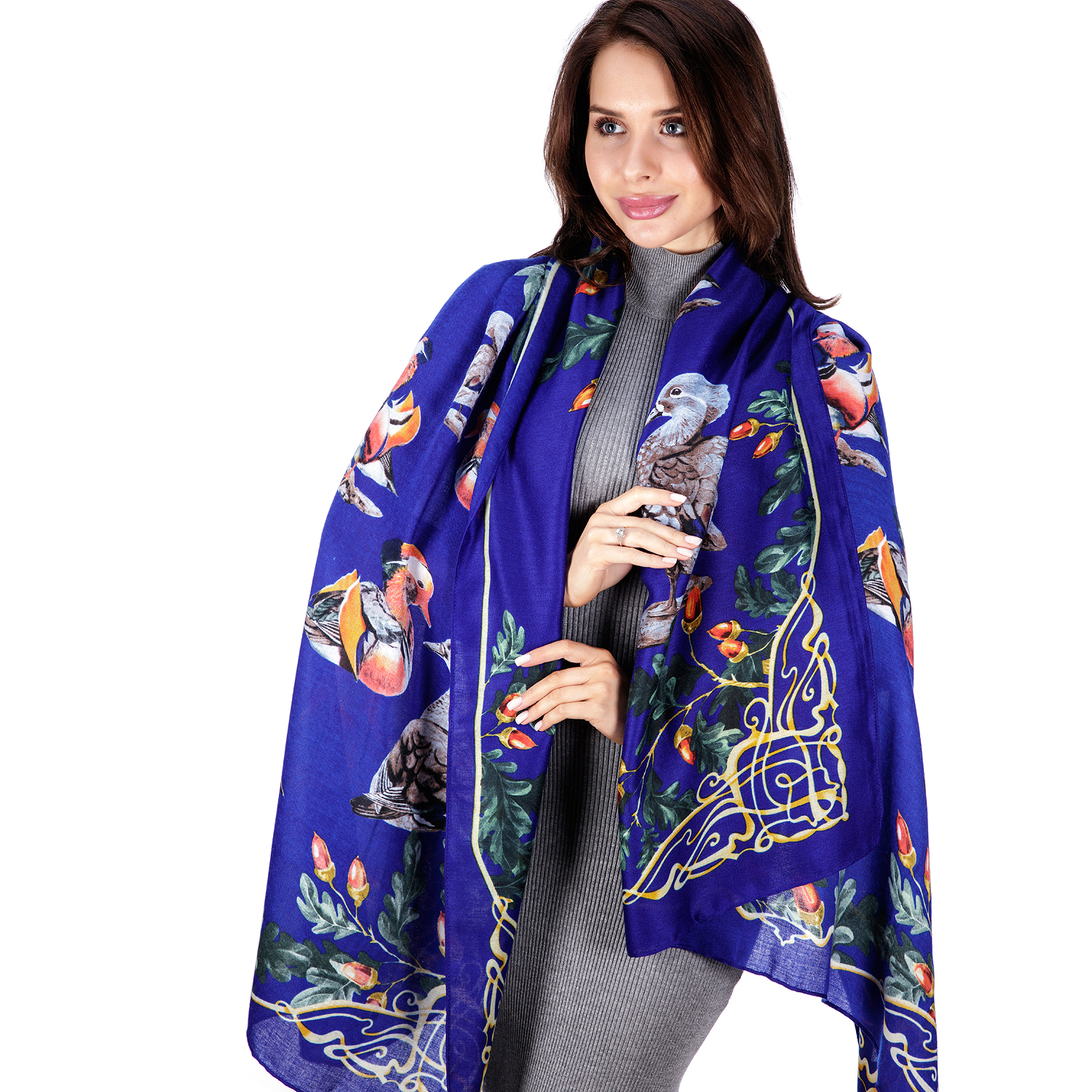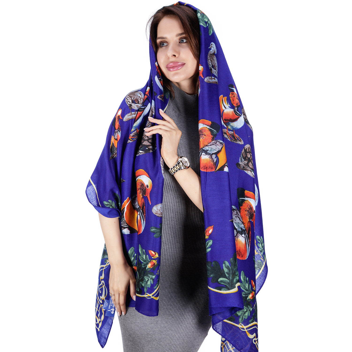 Палантин акриловый "Утки-мандаринки"