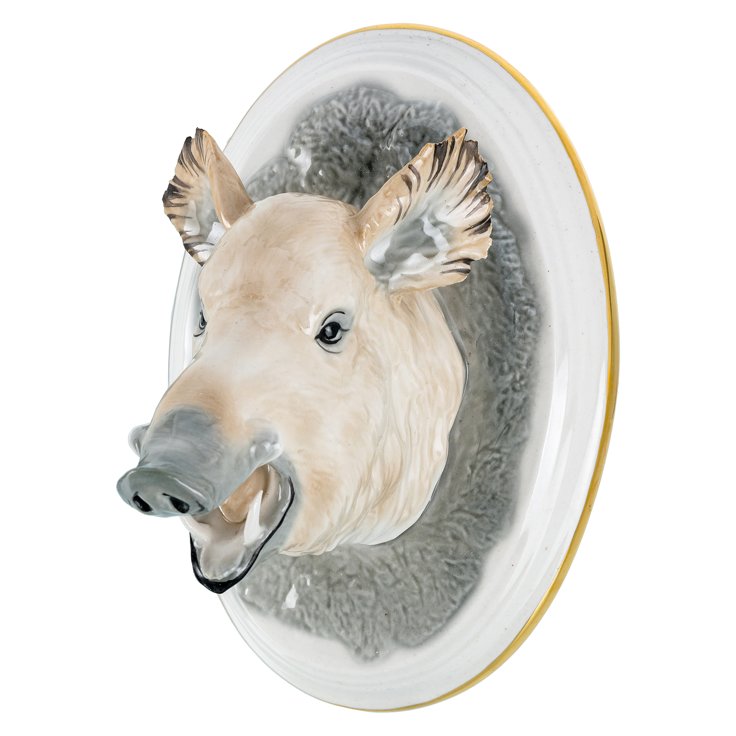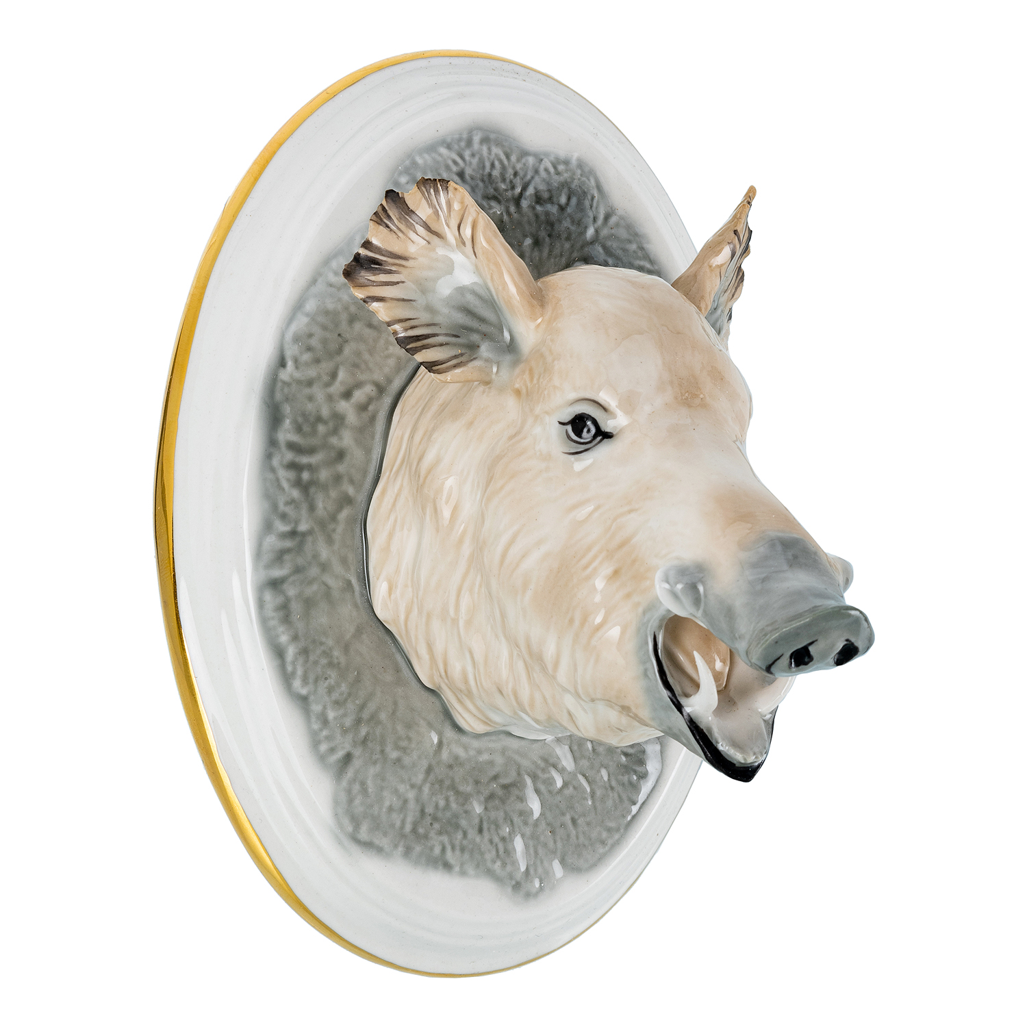 Панно настенное с головой кабана представлено в  Галерее подарков как авторский образец предметного дизайна и декоративного фарфора с художественной, коллекционной ценностью. Красивое панно!
