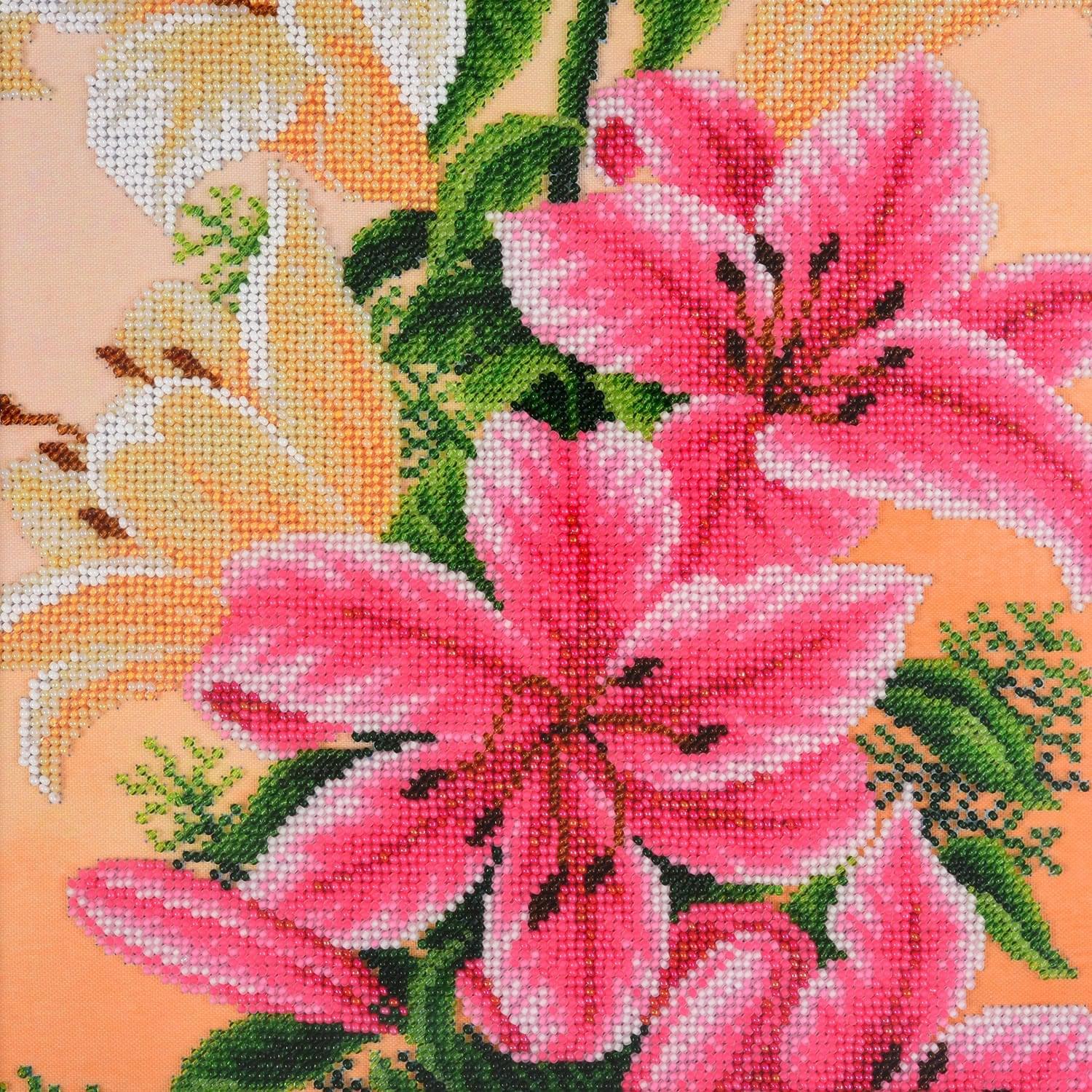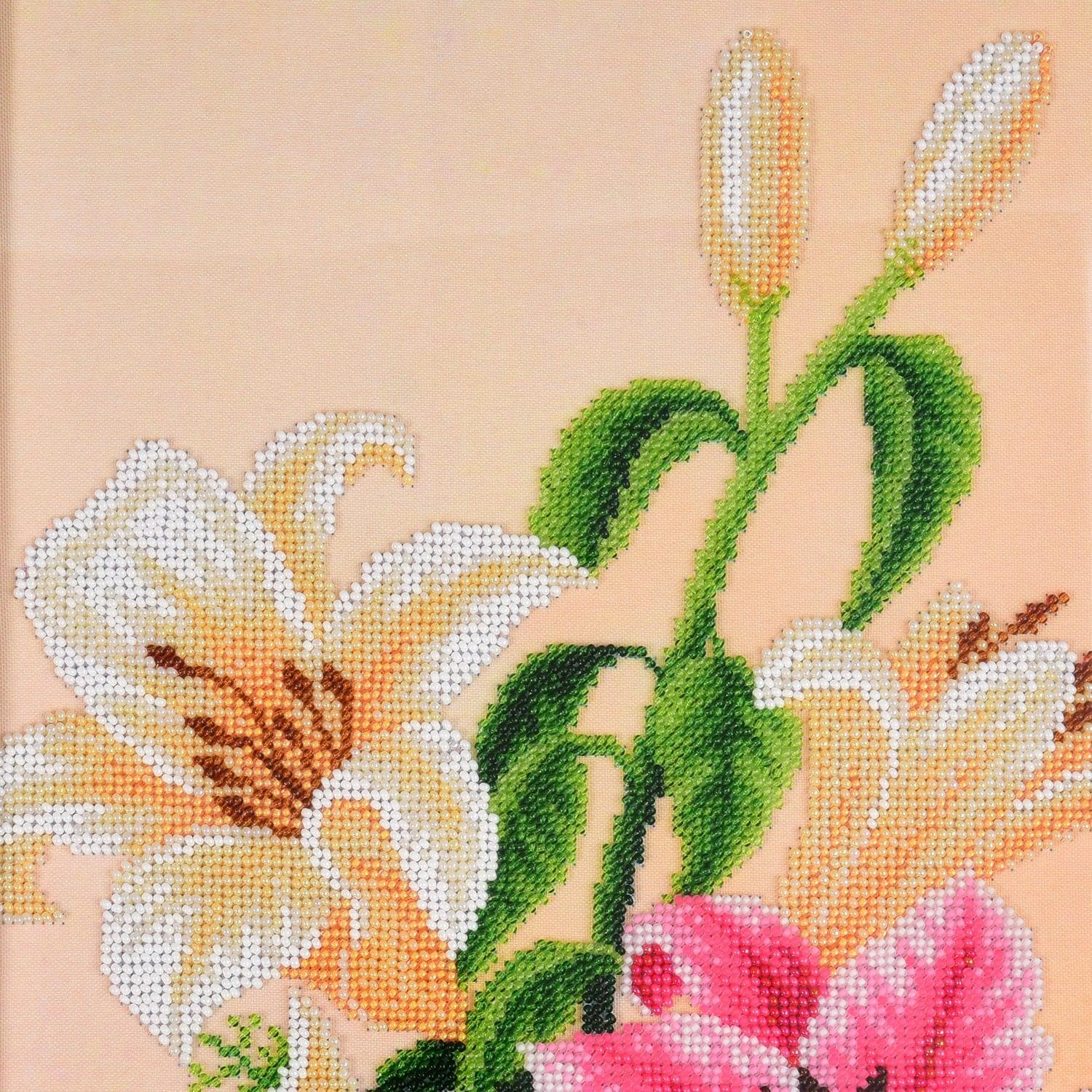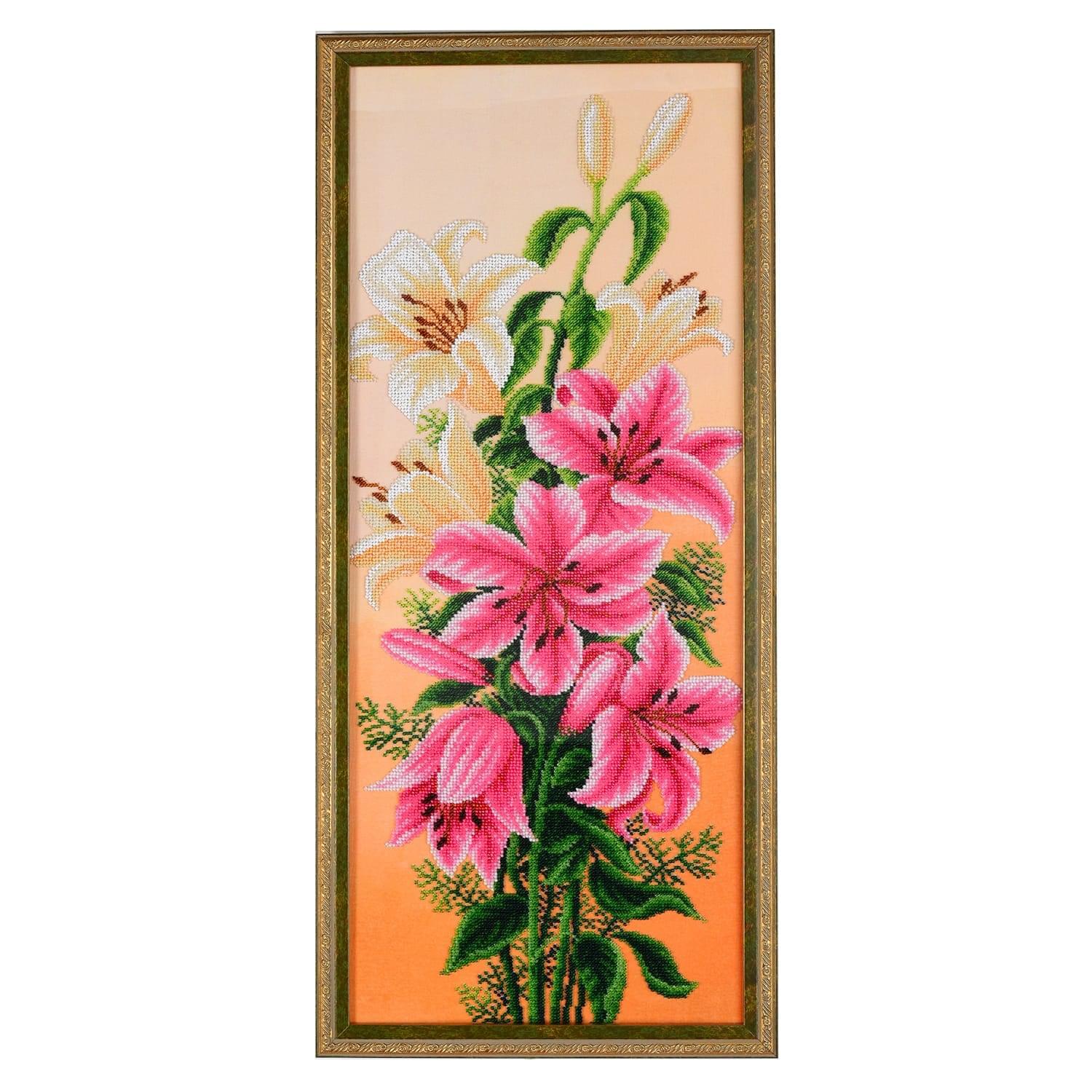 Панно с вышивкой бисером "Лилии" 28 х 64 см