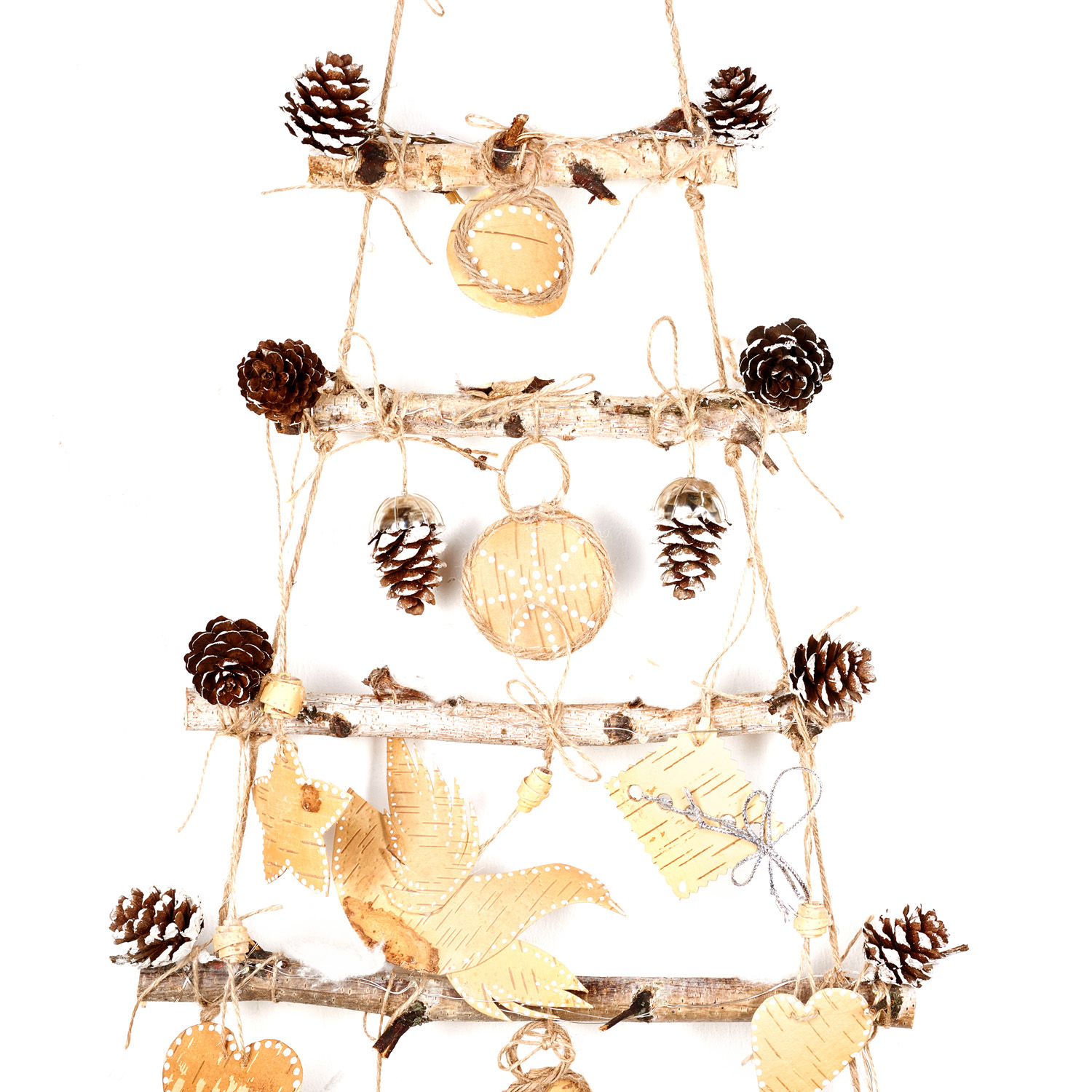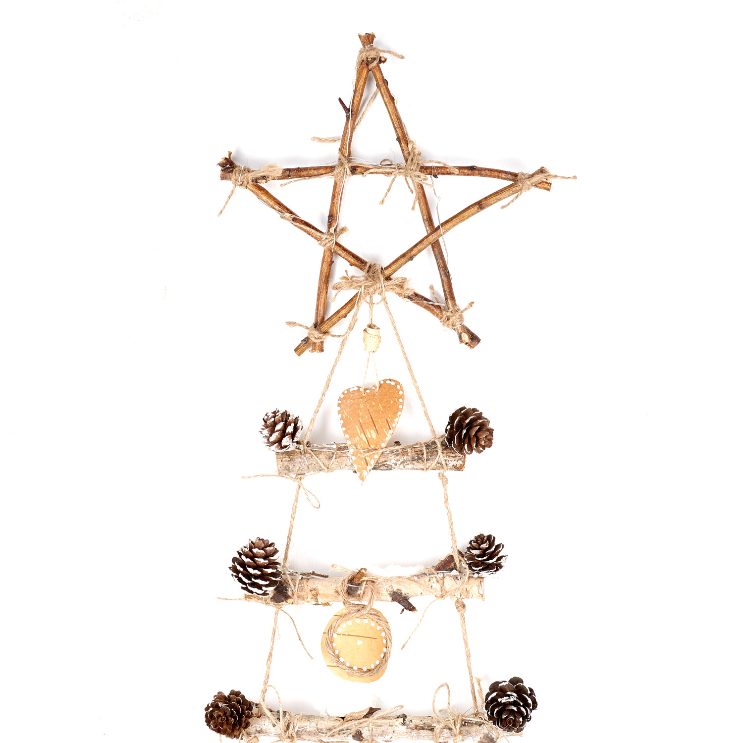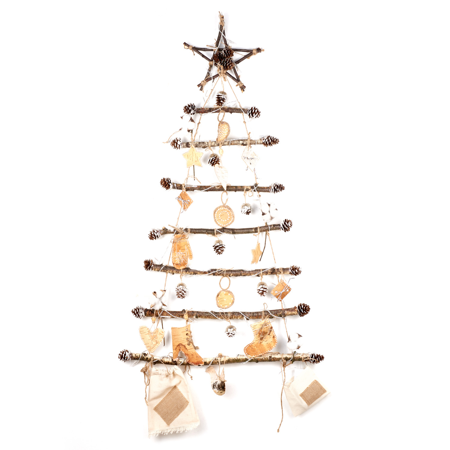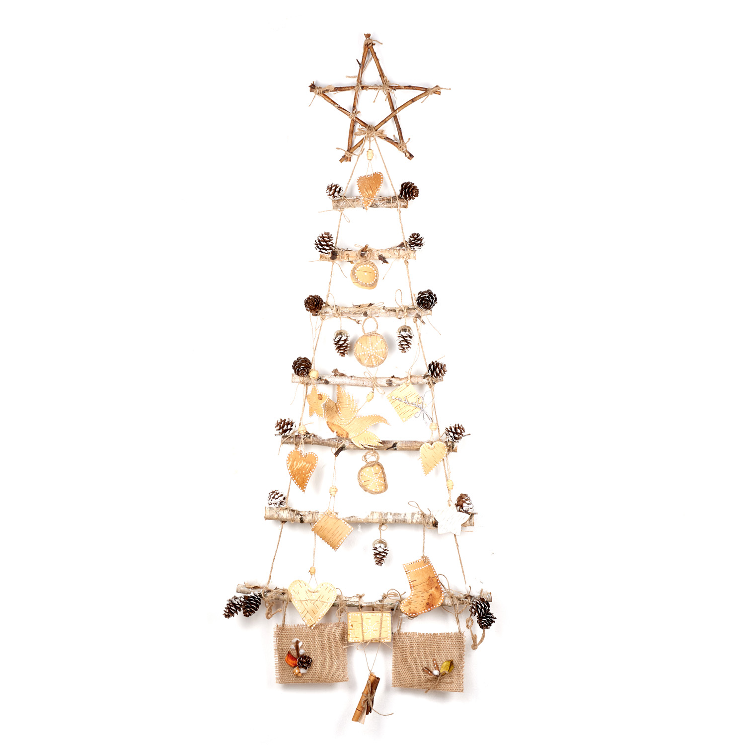 Панно настенное с гирляндой "Елка" из бересты