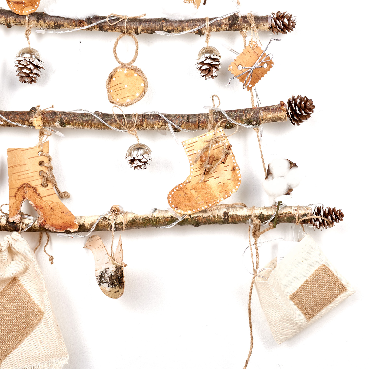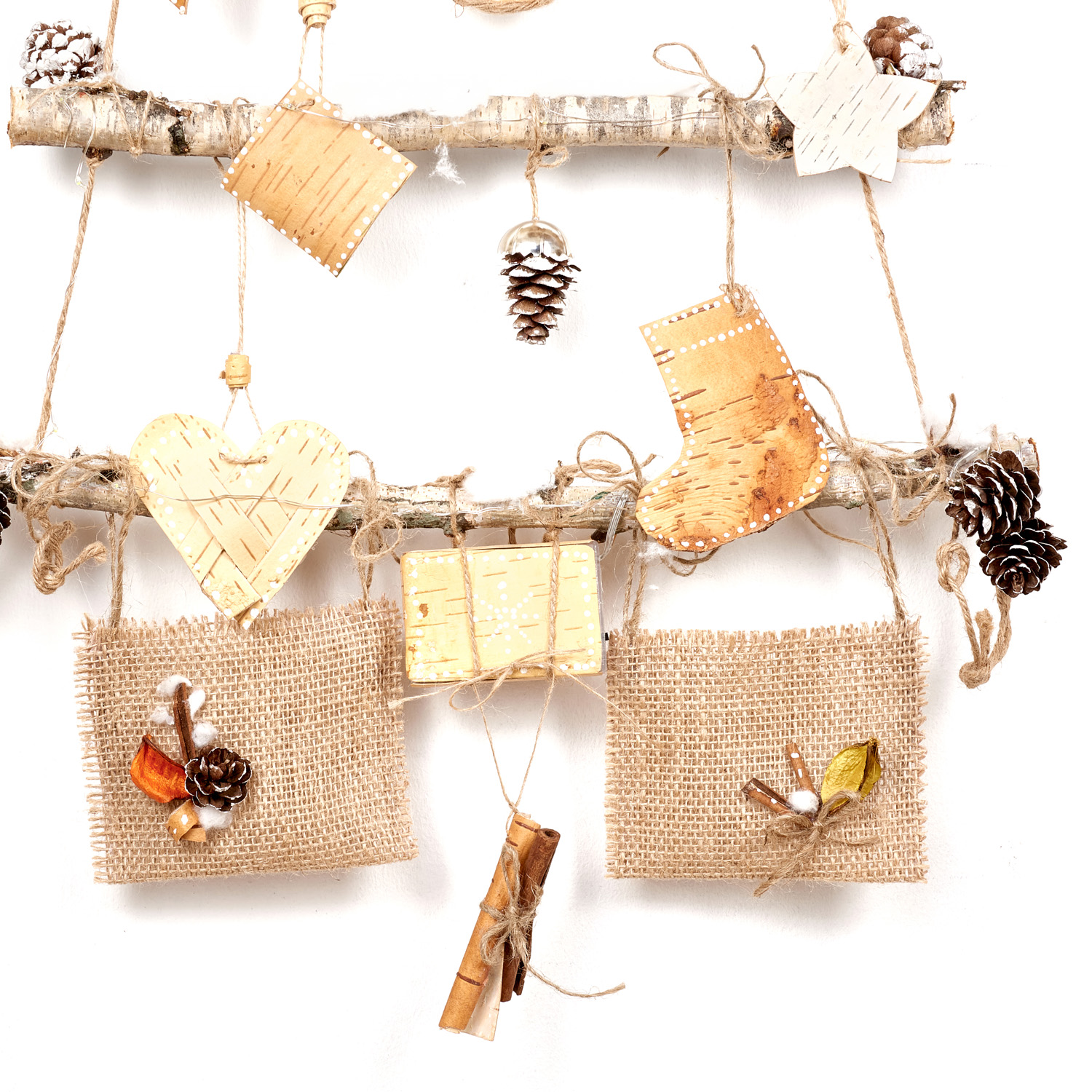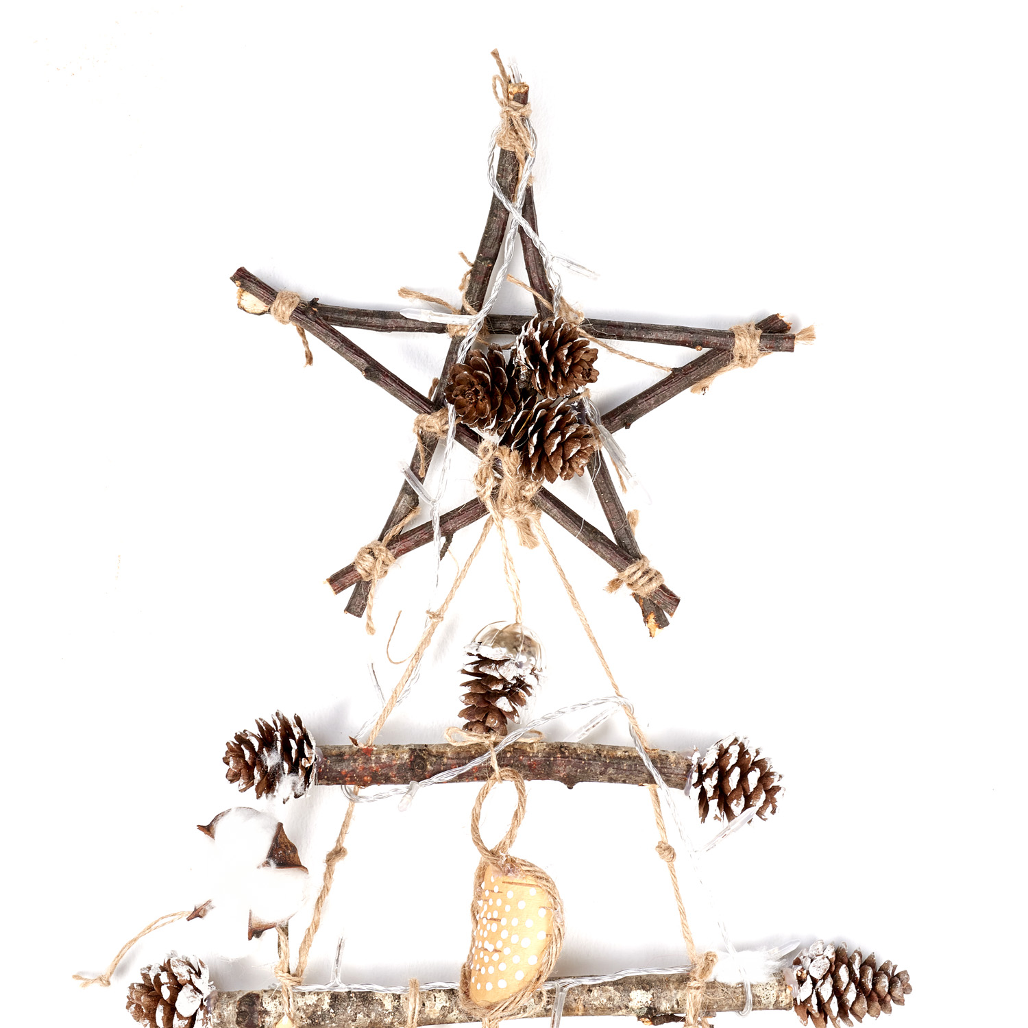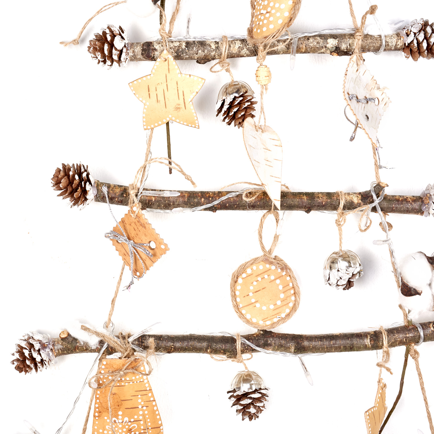 Панно настенное с гирляндой "Елка" из бересты