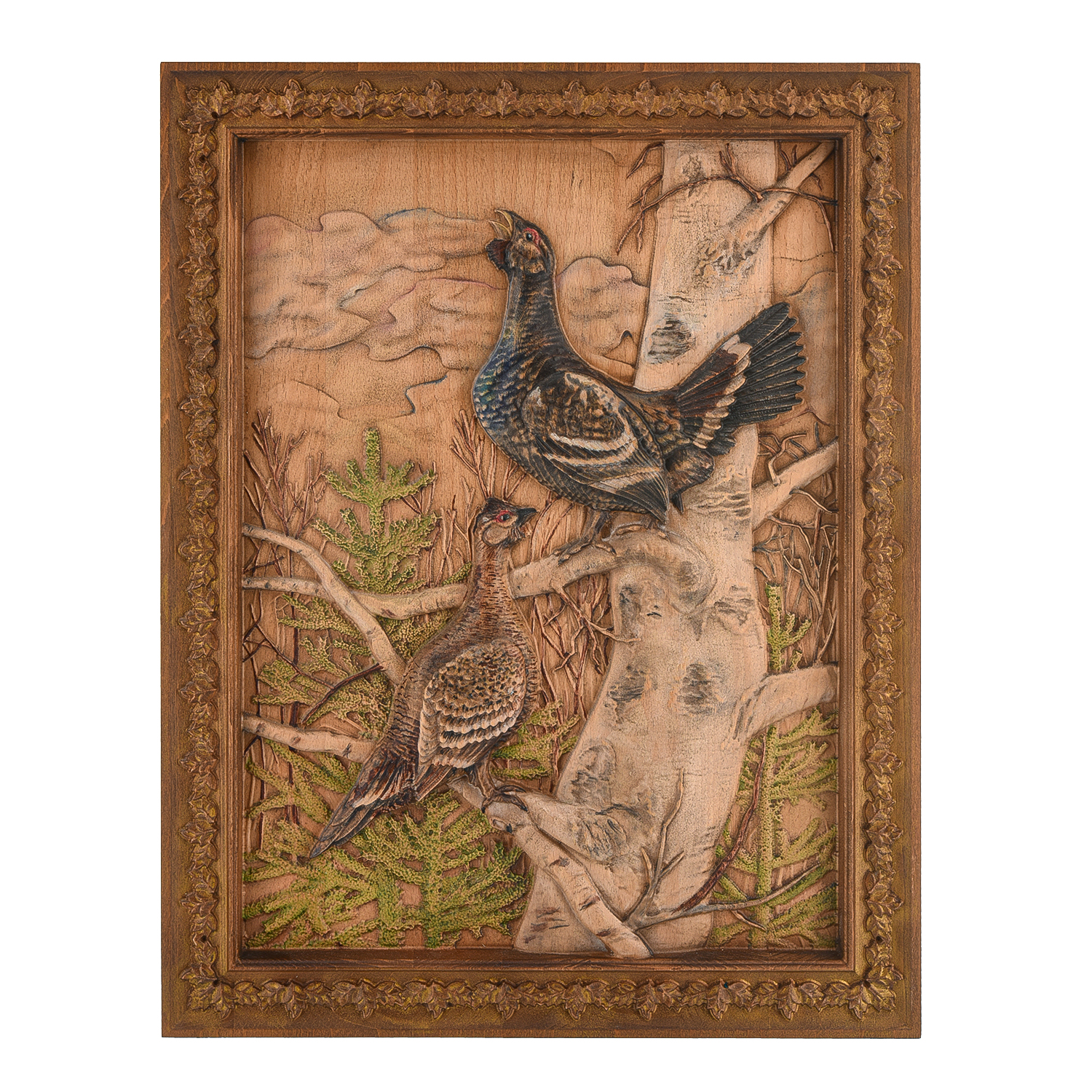 Панно из натурального дерева "Глухари" 46х35 см