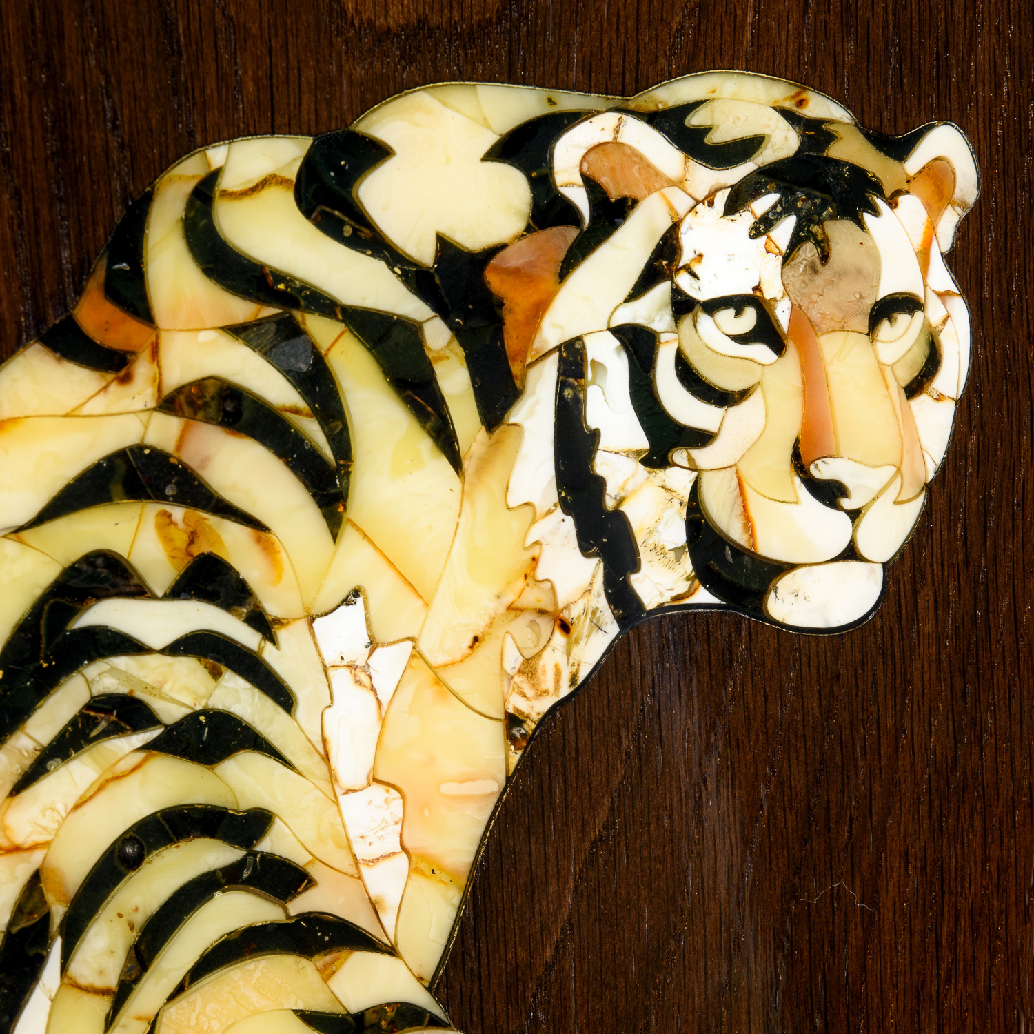Панно янтарное "Крадущийся тигр" 45х65 см