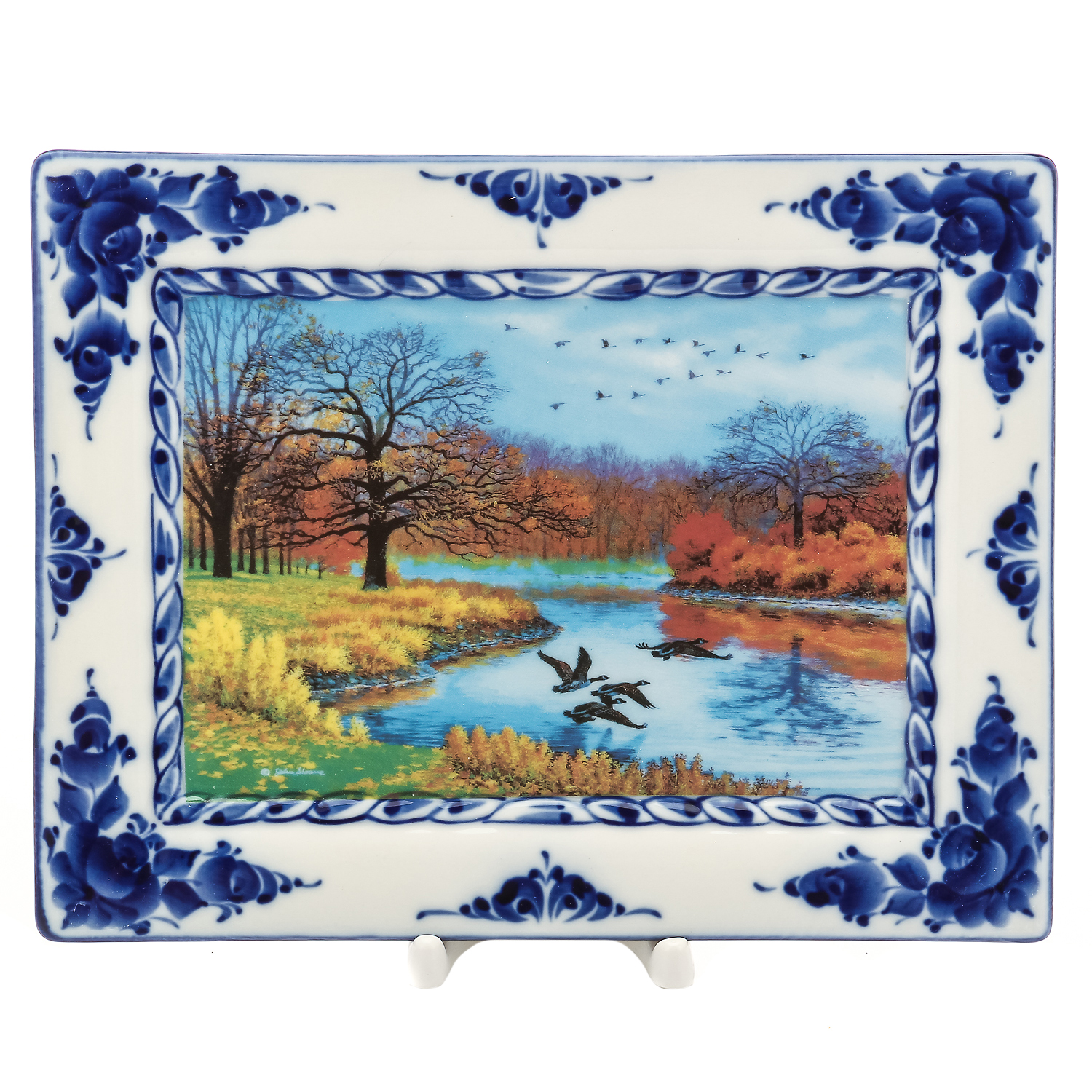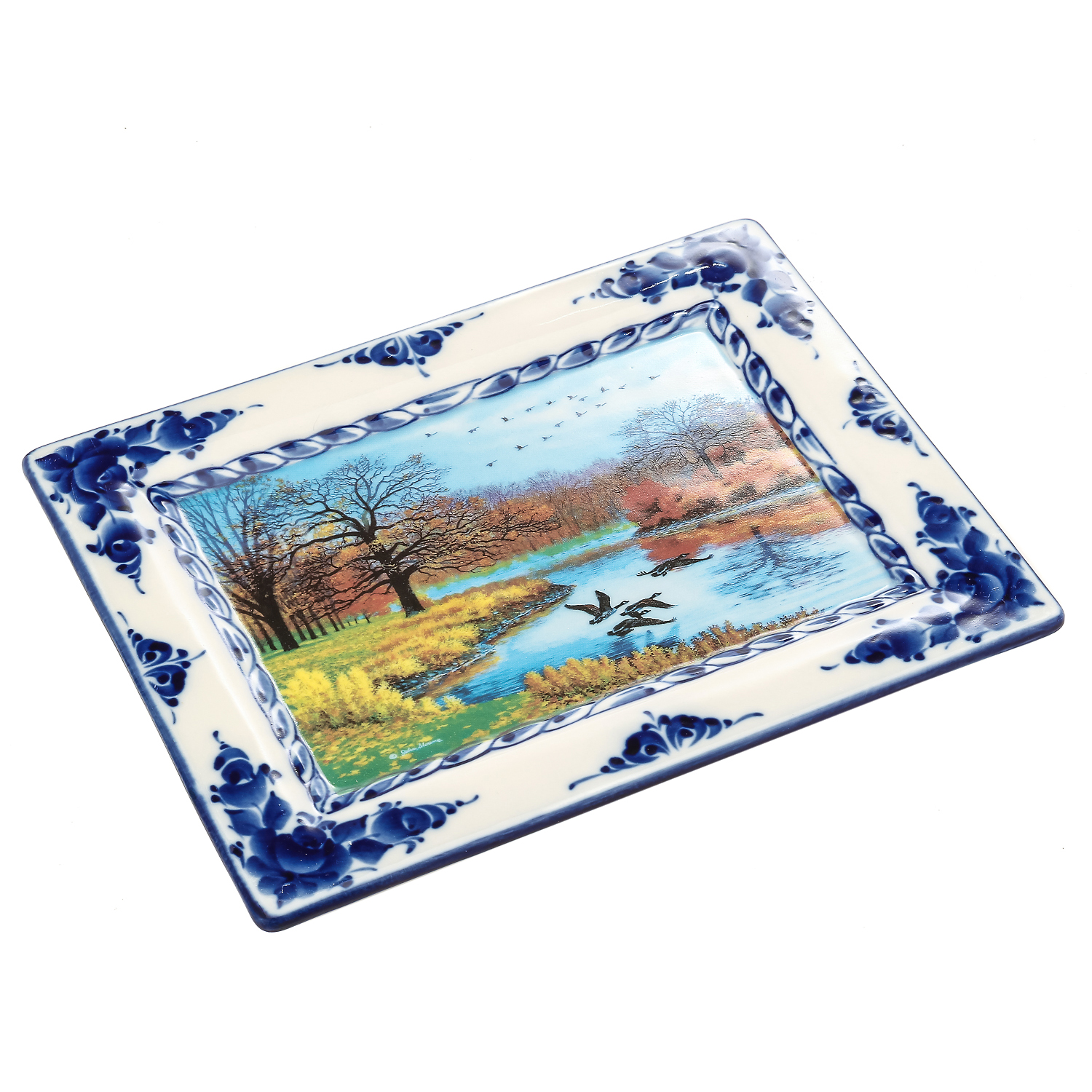 006488 Гжель Плакетка "ПЕЙЗАЖ В РАМКЕ", деколь №22