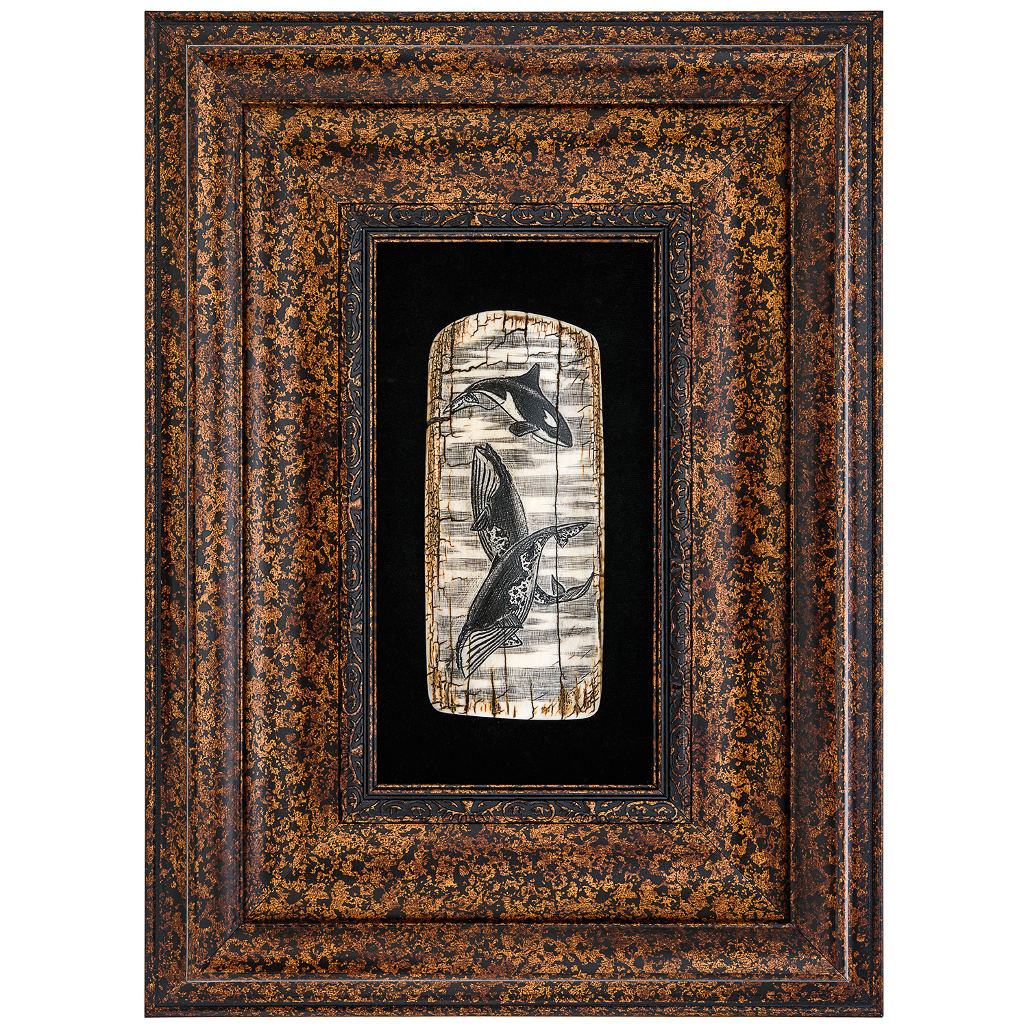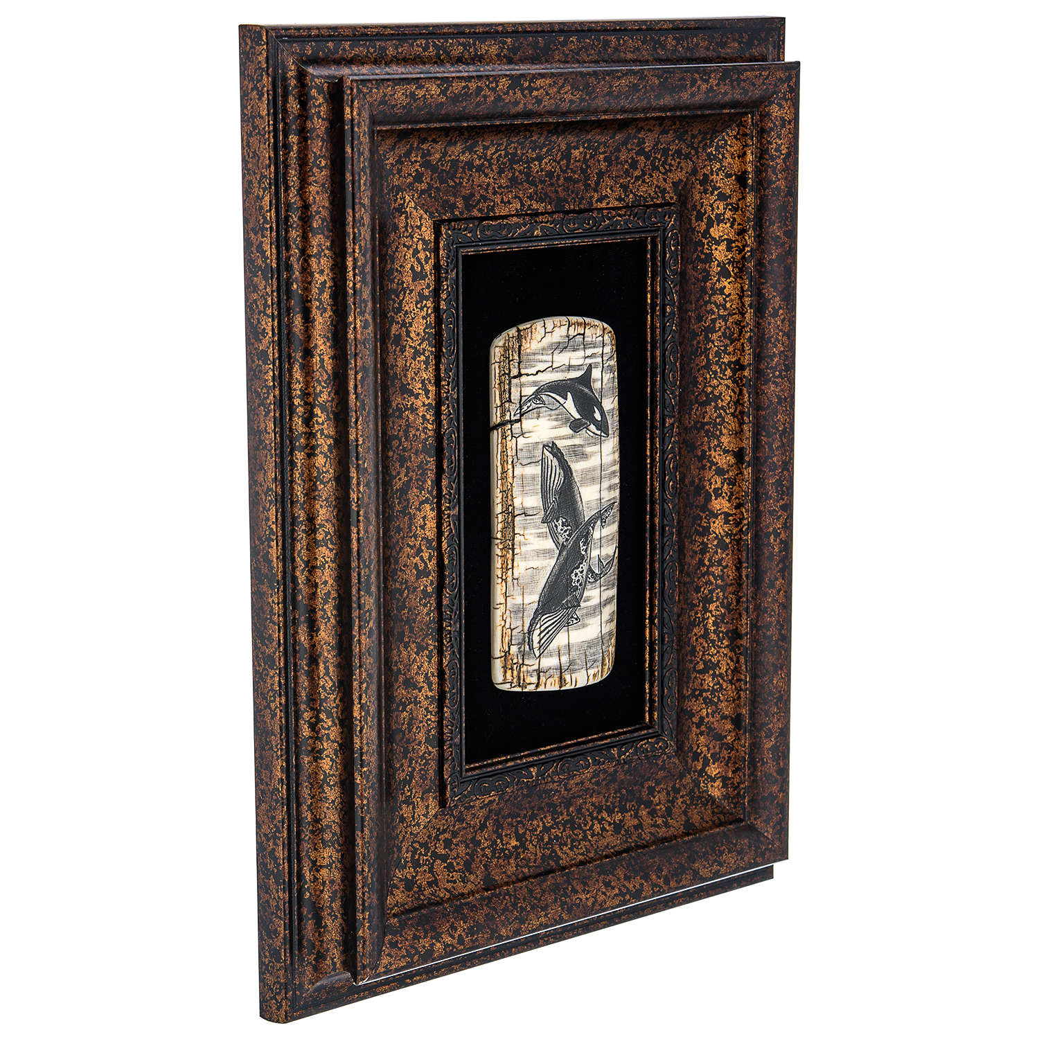 Панно из кости "Подводный мир".Материалы: кость, паспарту, деревянный багет.