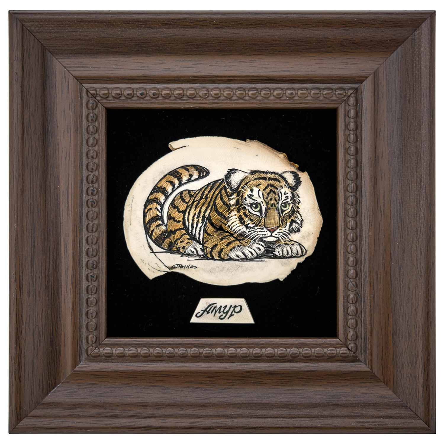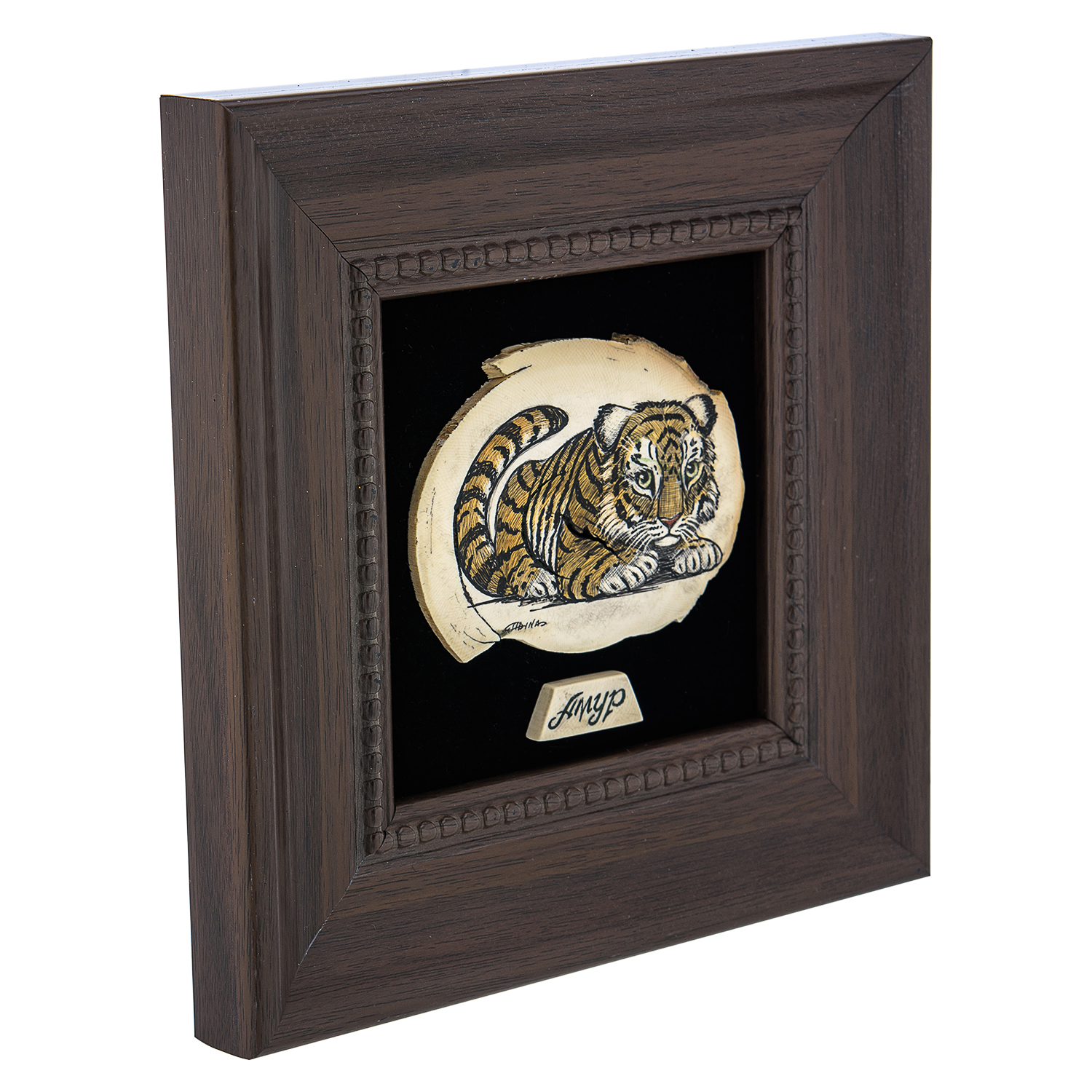Панно из кости "Тигренок" 17 х 17 см