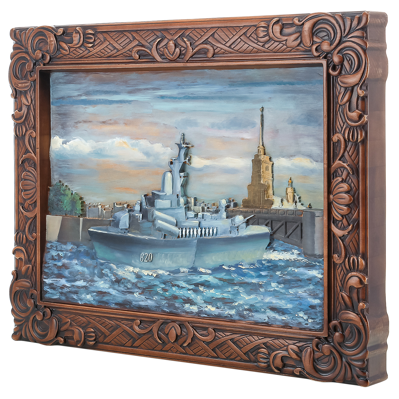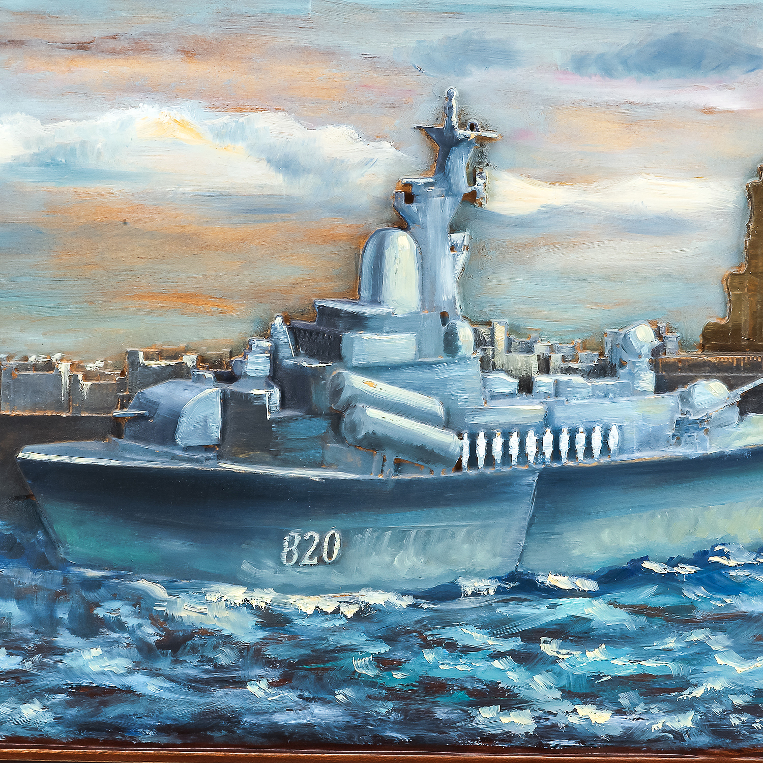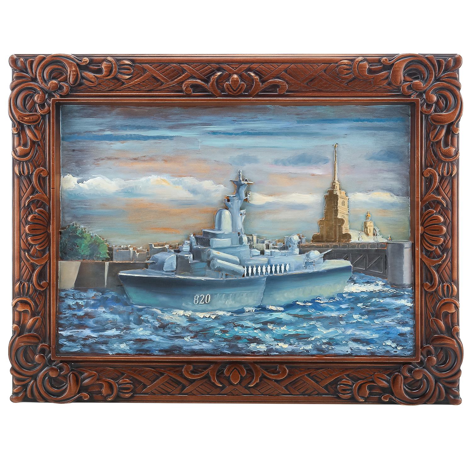 Панно из дерева "Военный корабль" 69,5 х 53 см