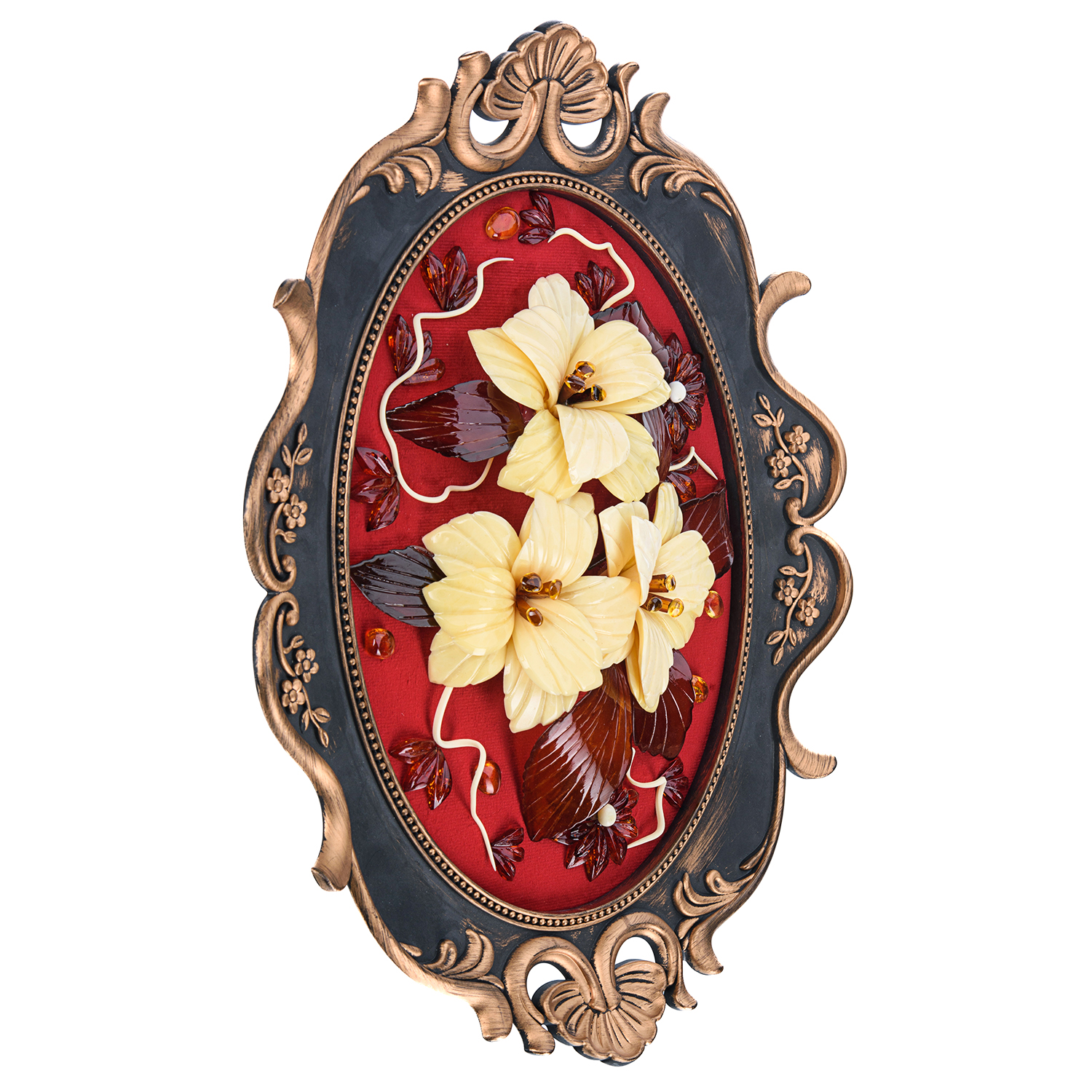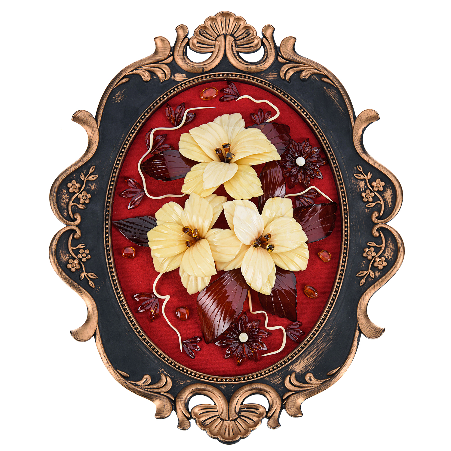 Настенное янтарное панно "Цветы" 38х31 см